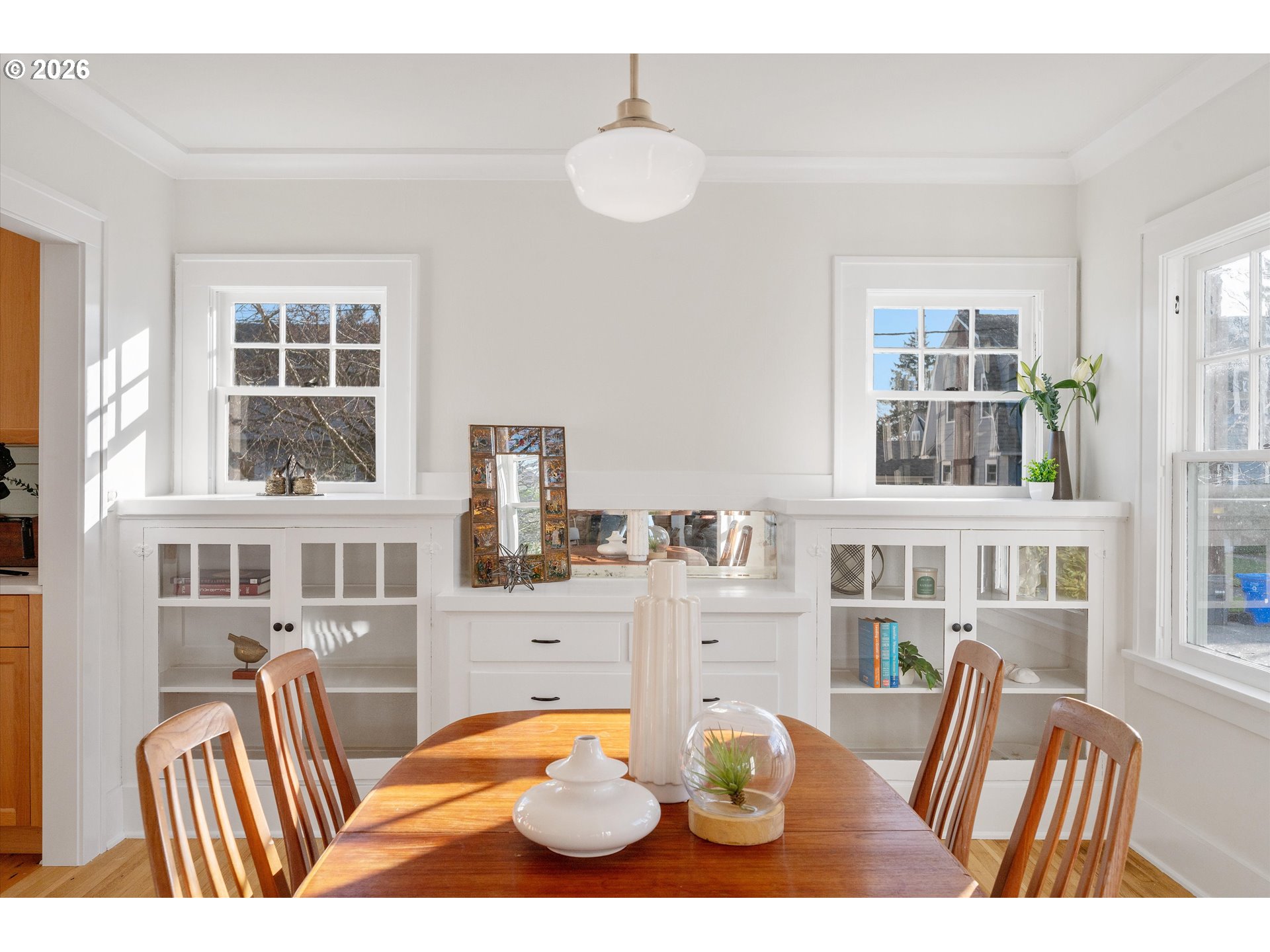 - Sitting on a sunny corner lot, this vintage bungalow has been reimagined with meticulous attention to detail. Every update honors the home’s historic character: from the leaded glass windows, and warm wood floors to the original built-ins and cozy brick fireplace, this is true Portland charm.The kitchen was designed for both style and function! You'll find sleek quartz counters, custom cabinetry, a designer tile backsplash and stainless steel appliances. The sunny breakfast nook is the perfect spot to sip your morning coffee The partially finished basement offers 700ft of flexible space, perfect for movie nights or dance parities. With 8 ft ceilings and a separate exterior entrance, the space is primed for an ADU or in law suite, creating flexible living and income possibilities.Step outside to your west-facing yard, which features a private patio ideal for al fresco dinners and gatherings with friends. There is also plenty of space for the urban garden of your dreams.Just blocks from Wilshire Park, Beaumont Village, and the Alberta Arts District, where you will find cafés, restaurants, and shops. This is the type of neighborhood where everyone knows your dog’s name.