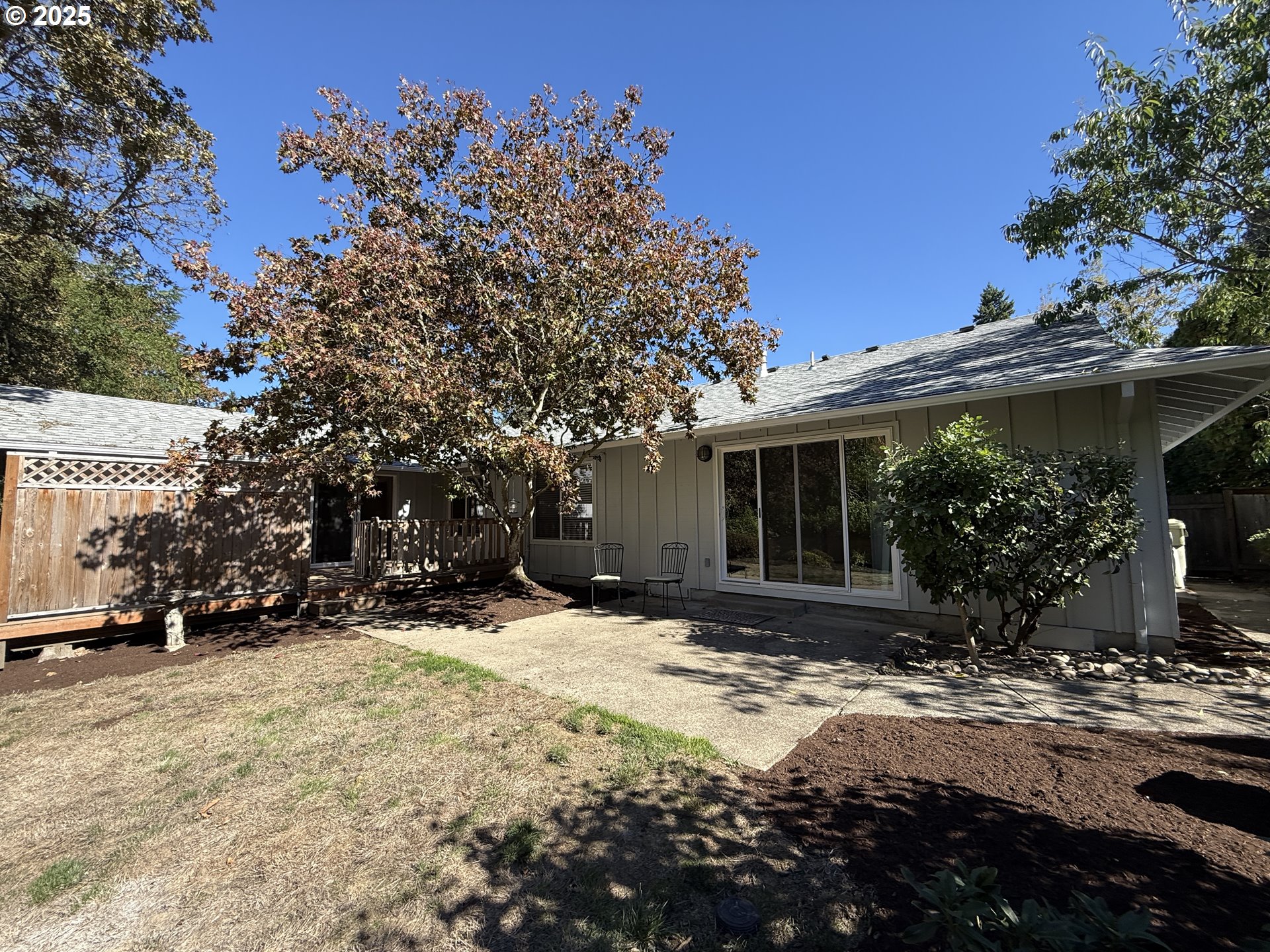 - A retreat setting in so many ways - large private yard with mature landscaping that backs to a green space. This beautiful home is a must see! Inviting front porch. Long driveway provides extra parking. Large lot with tool shed, and a fully fenced backyard. Just steps from the tennis courts of Rosa Park.Newer composition roof. Fresh interior and exterior paint. New Sliding Patio Doors with Transferrable Warranty. Some new blinds and flooring.Primary bedroom is a retreat. Offering vaulted ceilings, ample storage, ceiling fan, en-suite with walk-in shower and dual vanities, plus new slider patio door to custom built deck (built with a hot tub in mind - including added supports and electrical service).Family room has built-ins and gas fireplace plus an additional slider to the back patio for entertaining and enjoying the peaceful lush backyard. Flows smoothly from family, to dining area to large kitchen where all appliances are included. Skylights for Added Natural Light. Formal living room has high ceilings. Hard surface flooring throughout.Located on a quiet street just 4 minutes to Aloha Intel. Nearby shopping, library, schools and several parks.