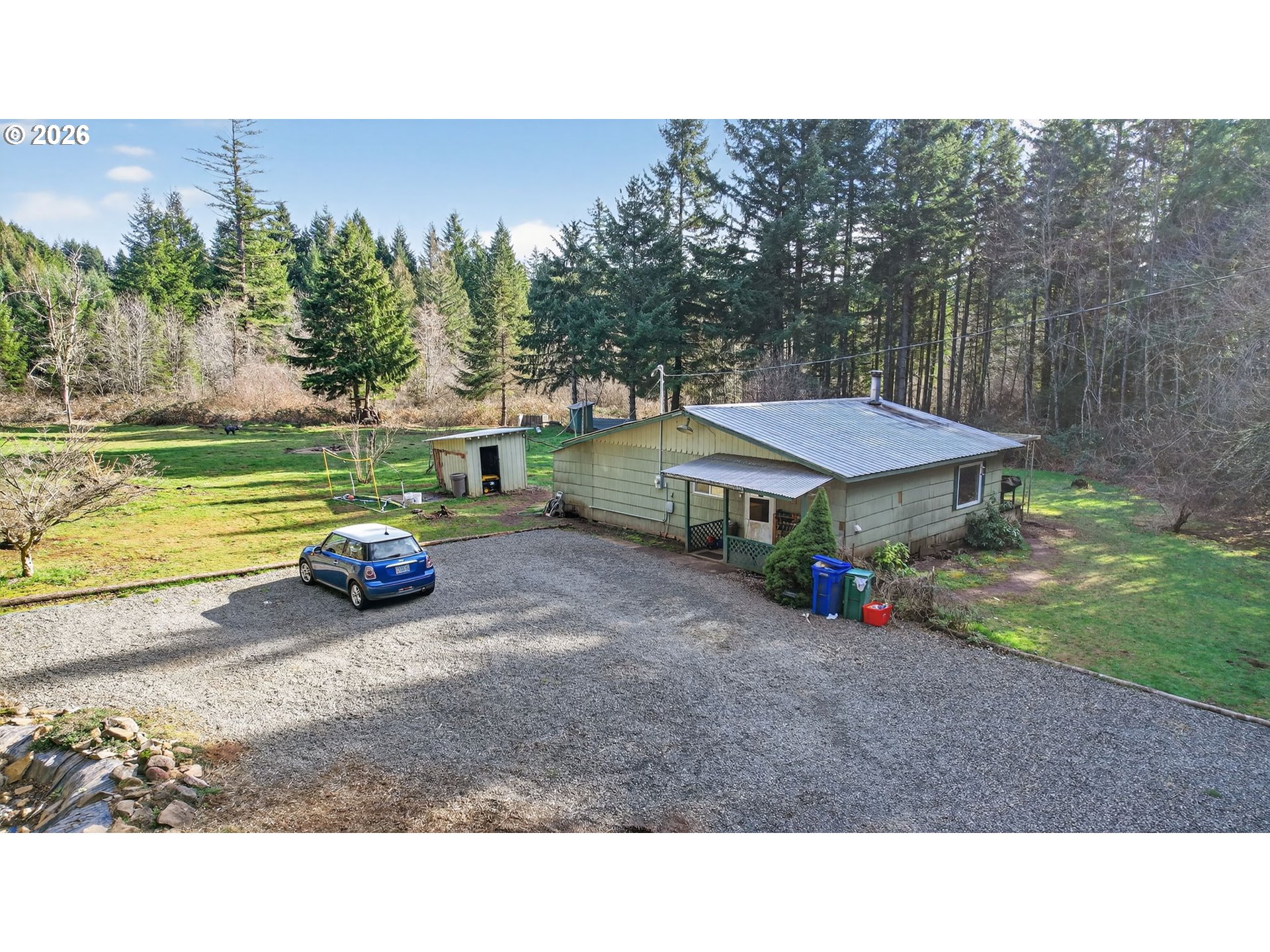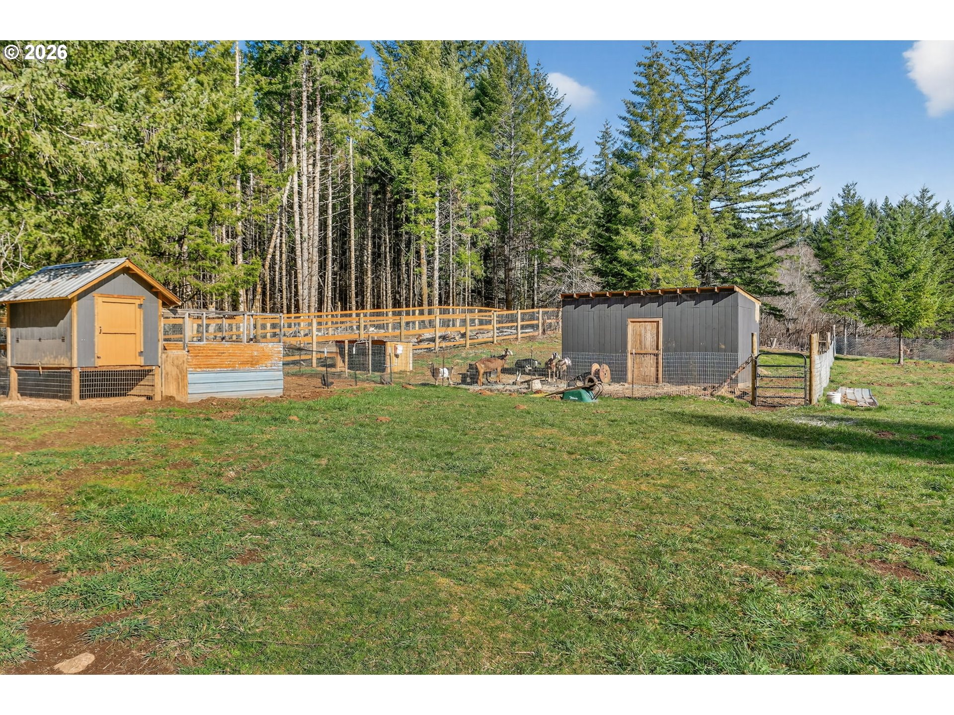 - 4.69 Usable Acres - 2 Bed - 1 Bath - Hobby Farm Ready. Perfect for those who love to explore and need space to care for livestock. Situated on 4.69 usable acres, this quaint one-story home offers 2 bedrooms and 1 bath with a cozy, open kitchen and living area.Unwind on the covered deck while listening to nature at the end of a long day or enjoy the splendor of the morning light. A enchanting treehouse provides elevated views of the surroundings and open spaces.The outdoors offers a beautiful blend of hobby farm functionality and wooded trails for exploring. The property is fenced on three sides with cross-fencing for livestock. A newer outbuilding includes goat pens, a chicken coop and yard, with room to expand.Plenty of space for parking, a future shop, or additional outbuildings, ideal for building long-term value. The home is comfortable and cozy as-is, with potential to enlarge, rebuild, or replace if desired.Wired for generator hookup included for added peace of mind and support for a more self-sufficient lifestyle.If you're looking to homestead, raise animals, garden or simply slow things down? This cozy one-level home on 4.69 acres with room to roam, grow, and create the life you’ve been dreaming about is the ONE!