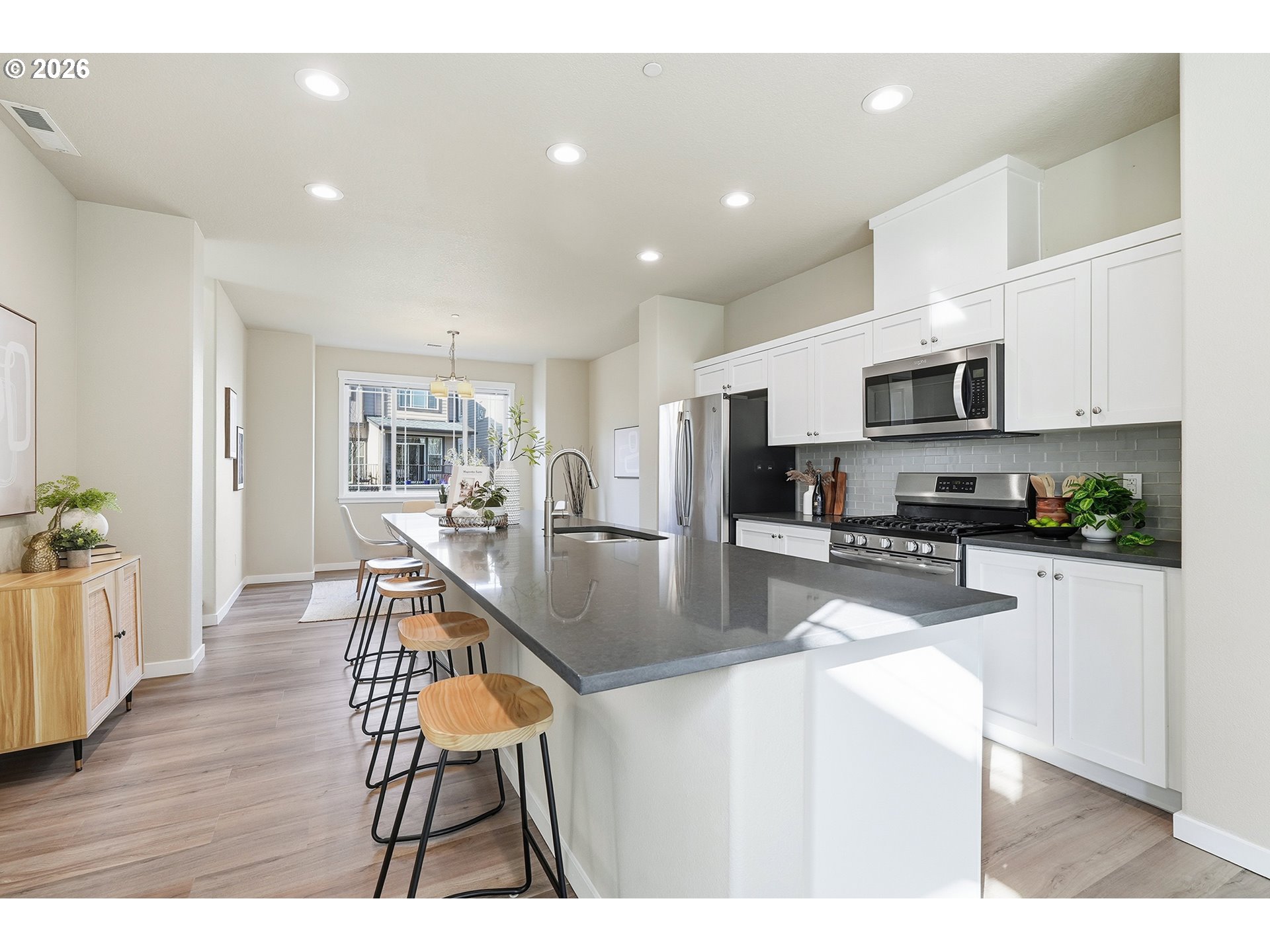 - Phenomenal end unit townhome centrally located within Villebois. The interior has received a fresh coat of paint, new LVT floors and carpet. A foodie's kitchen featuring quartz counters, stainless steel appliances and oversized island. This home boasts high ceilings, gas fireplace and recessed ceiling in the primary bedroom. The spacious and bright nook on the upper level makes for a perfect work from home or workout space. The oversized single car garage with rear parking pad driveway offers plenty of space for multiple cars, workbench or hobby projects. Centrally located in Villebois between Edelweiss and Sofia Park, enjoy pickle ball, beach volleyball and many kids' playgrounds. Just steps to the central Piazza for coffee and convenience store.