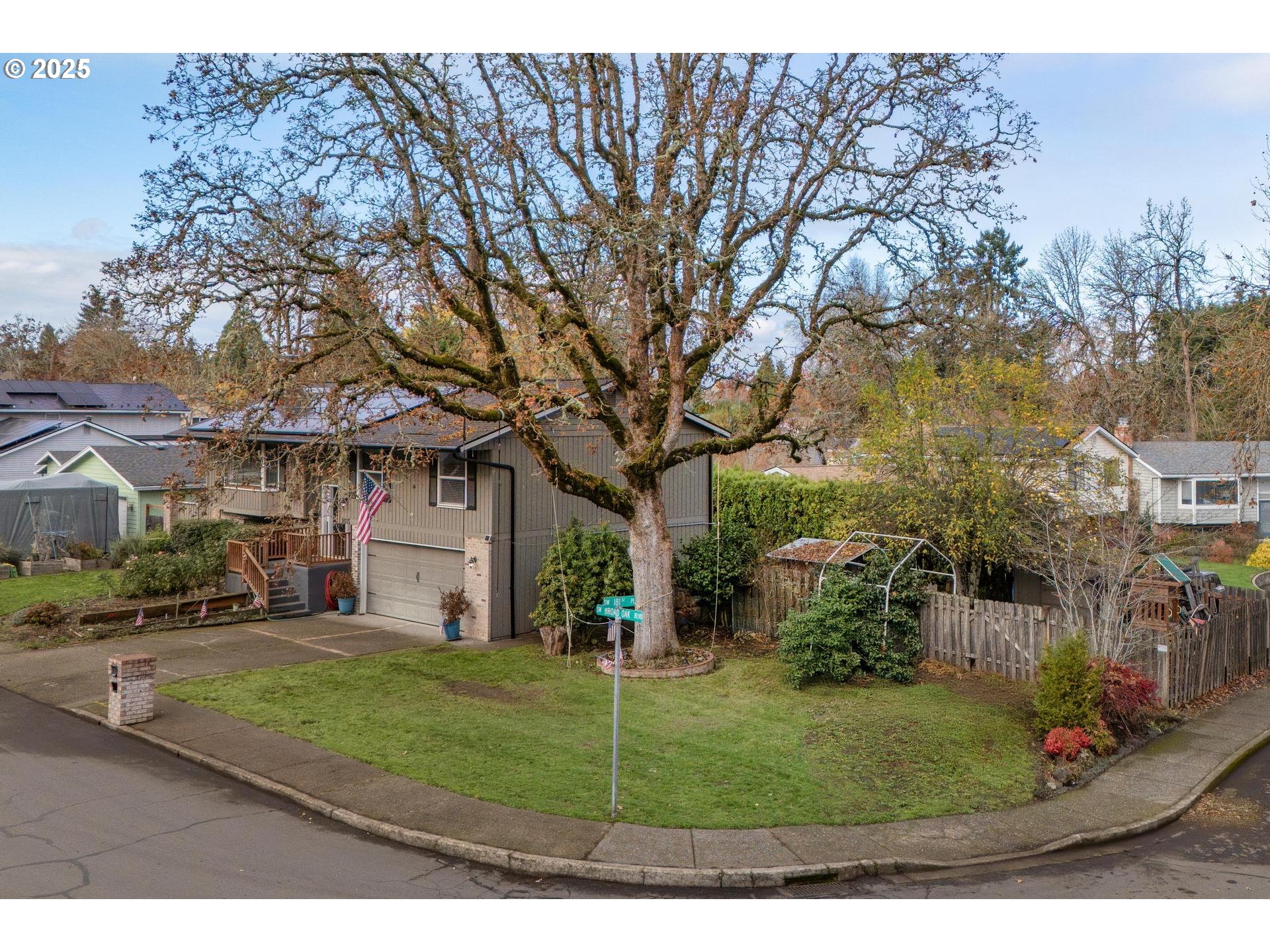 - Located in a great neighborhood close to shopping, parks, and schools, this cheery corner lot three bedroom, 2.1 bathroom home has gleaming Brazilian Cherry hardwoods in the living room, dining room, kitchen, and informal eating area. The kitchen is equipped with stainless steel appliances, a free standing refrigerator, granite counters, and an eating area for informal dining. Adjacent is a formal dining room with a slider to a back deck, and a living room with a cozy gas fireplace and bay window. Three spacious bedrooms upstairs, including a large primary suite with a private bathroom. Downstairs has a huge family room with a slider to a back patio, utility room / half bathroom, and additional storage under the stairs. Central AC and a gas furnace bring all season comfort. Fully fenced backyard is complete with a toasty sauna for relaxation, shed, patio, chicken coop, and RV plug in. Check out the newer solar panels that reduce monthly electricity bills and are on a transferable lease. New tear off roof in 2022 and electrical panel recently updated. All this with an attached two car garage, close to Nike and Intel, and no HOA! Welcome home!