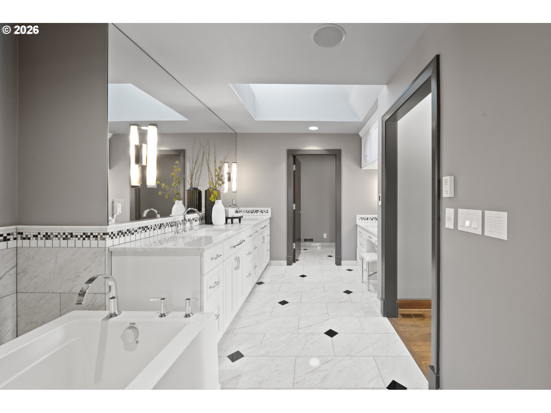 - Tucked towards the end of a private cul-de-sac in Lake Oswego's desirable Village on the Lake neighborhood, this home captures the essence of sophisticated design with panoramic views of Oswego Lake. Thoughtfully crafted, it features multiple decks, including a wraparound main-level terrace and lower-level entertaining patios that showcase sweeping vistas. The gourmet kitchen anchors the main level with stainless steel appliances, custom cabinetry, and an expansive island designed for gathering. Just beyond, a fully equipped prep kitchen includes an additional grill, high-powered two-burner range, second dishwasher, freezer, and wine fridge—ideal for seamless hosting and culinary versatility. The primary suite offers a true retreat with views of Mt. Hood and Oswego Lake. Its spa-inspired bath includes a soaking tub, dual sinks, a dedicated vanity, and a walk-in shower, creating an inviting space to prepare for the day ahead or unwind and relax. Living areas transition effortlessly to a covered outdoor patio, where a built-in fireplace, grill, refrigerator, and sink establish a picture-perfect setting for gatherings in every season. A private elevator connects the first two levels, while an EV charger and whole-home generator in the garage add everyday functionality. Village on the Lake offers one of Lake Oswego's most coveted lake easements, known for strong community, waterfront access, and lasting value.