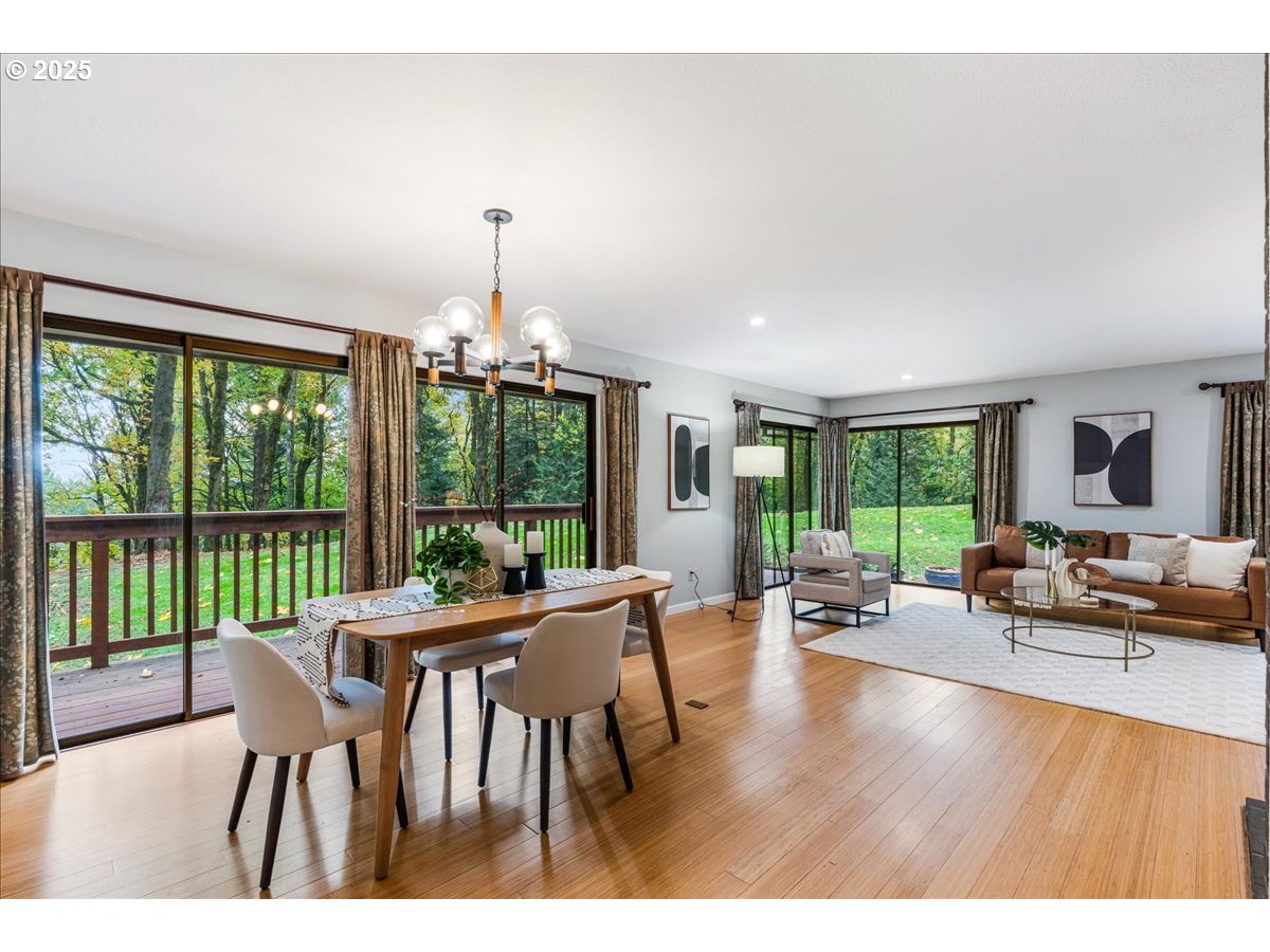 - Incredible over 3 acre property abutting Forest Park! 5 sliding glass doors from living room to gorgeous, private oasis! Wrap around deck! Mid-century charm in brick fireplace. Bamboo hardwoods. Main floor Primary Suite with double closets and private deck access. Lower level perfect for separate living area with secondary primary and beautifully remodeled bathroom with tiled walk in shower, new vanite, tiled floor. Kitchen with gorgeous built-ins, corian counters, and nook. Great storage! Over 3 acres of beauty surrounding you with walking trails and also just minutes to downtown shopping and restaurants! Open House Sunday, 11/2 from 2pm to 4pm.