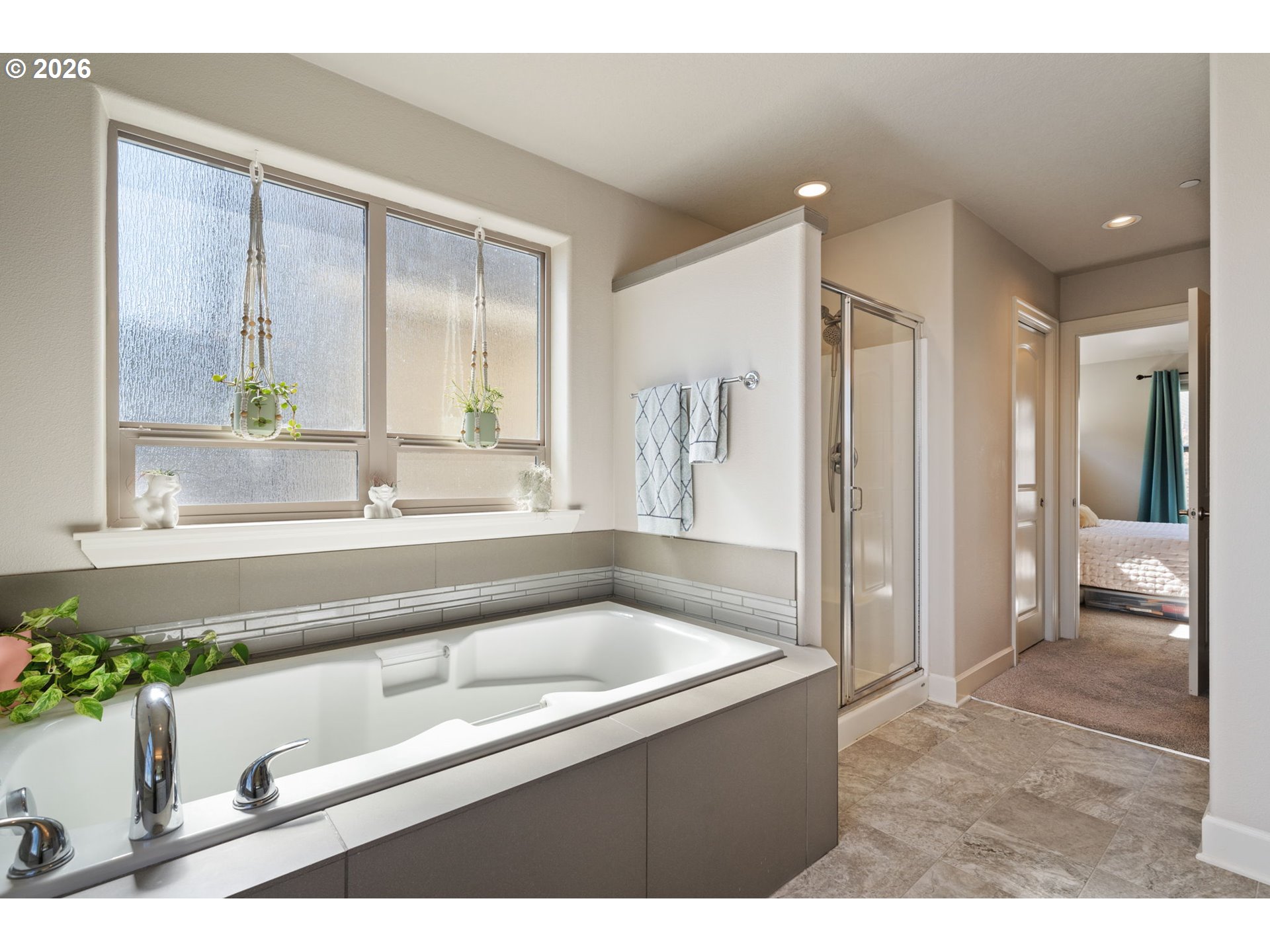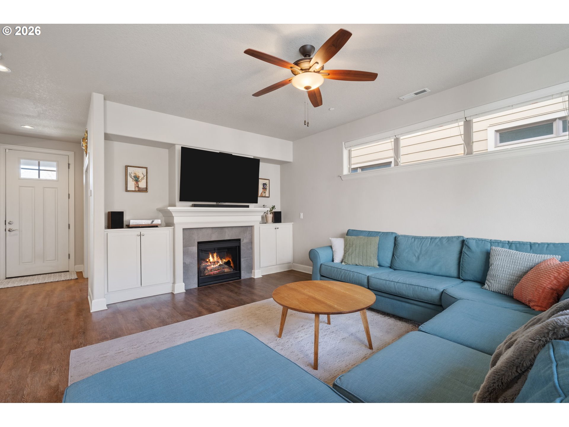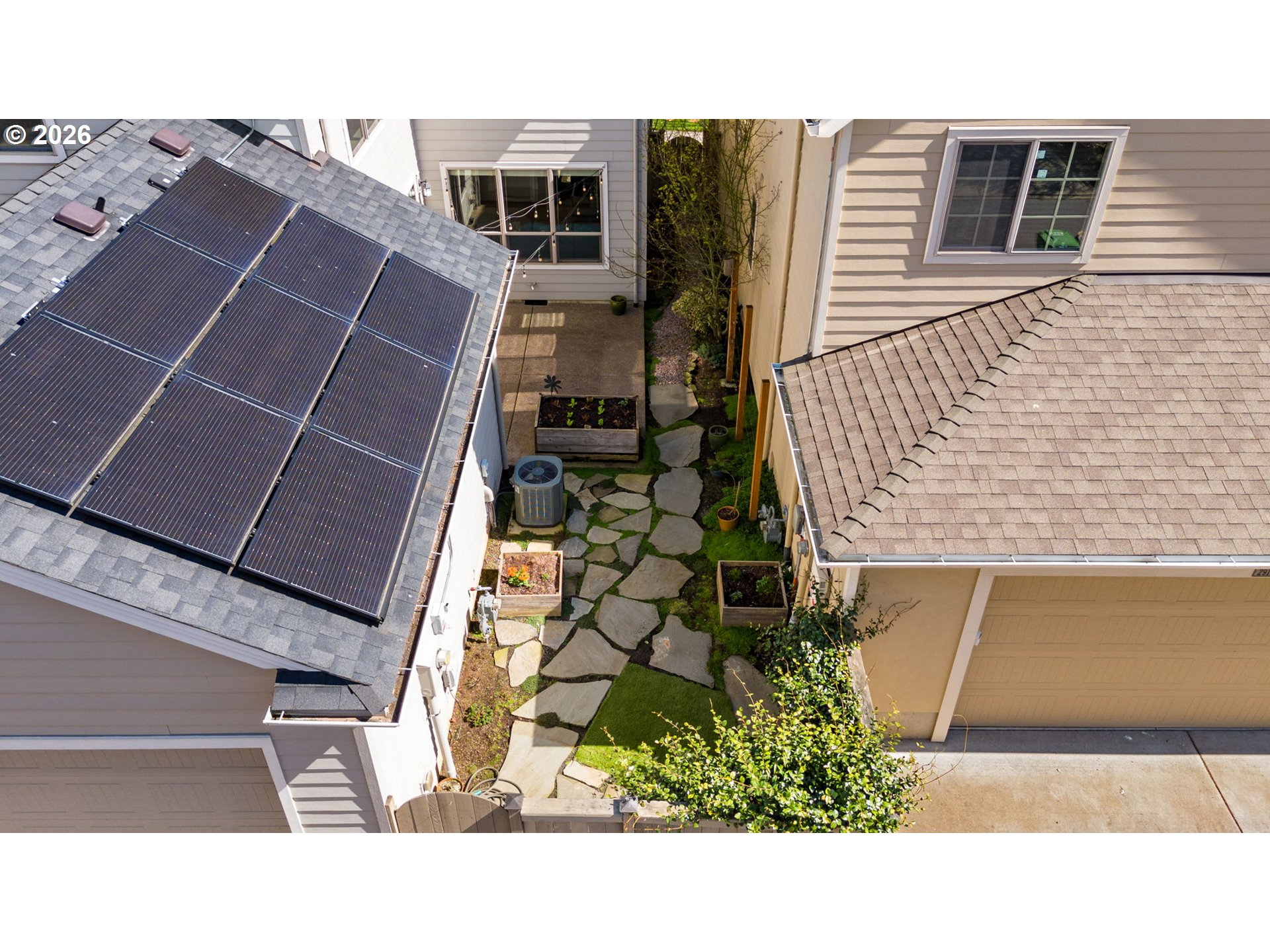 - No more sky-high electric bills—-this stunning EarthSmart home features owned solar panels and a Level 2 EV charger, delivering meaningful monthly savings and future-ready living. Perfectly positioned on a quiet street in the heart of sought-after Villebois, this beautifully maintained Alsace-American home blends timeless architecture with modern efficiency and is just blocks from Lowrie Primary School, parks, and scenic walking trails. Inside, the open and airy layout is filled with natural light from oversized windows and includes three bedrooms plus a spacious main-level office ideal for working from home or hosting guests. Custom built-ins and quality finishes add warmth and functionality. The gourmet kitchen is a standout, featuring granite countertops, premium appliances, a generous pantry, and a large island perfect for entertaining and daily living. Upstairs, the primary suite feels like a retreat with soaring vaulted ceilings, a soaking tub, and a spacious walk-in closet. The thoughtfully designed backyard offers a private, low-maintenance oasis with raised garden beds, gas hookup for the BBQ and room to relax, while the two-car garage provides excellent storage and easy access with no stairs when entering the home through the garage. An adorable front porch adds charm and creates the perfect spot for morning coffee or evening conversations. Energy-efficient, impeccably cared for, and located in one of Wilsonville’s most vibrant communities, this home truly offers comfort, lifestyle, and long-term value all in one.