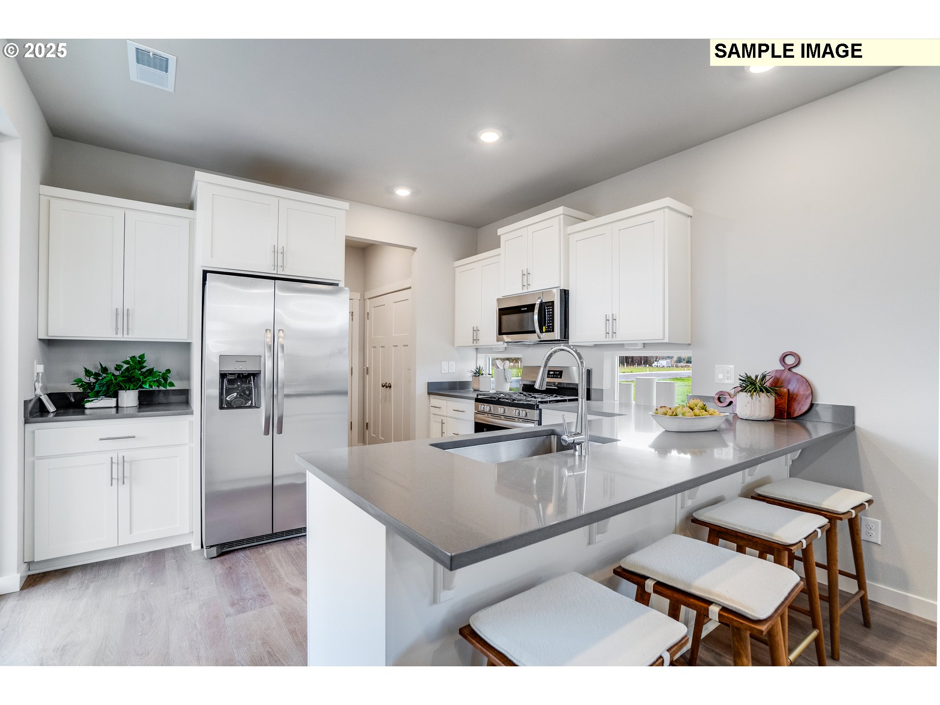 - This new construction Conifer plan is located in Butternut Creek, a community offering a dog park, playground, and basketball court just minutes from the Intel campus and Topgolf. The two-story layout begins with an inviting open-concept first floor that combines the kitchen, dining area, and great room with a fireplace, extending to a covered patio ideal for entertaining. Upstairs, three bedrooms surround a versatile loft, including the spacious primary suite at the front of the home with a spa-inspired bath featuring a soaking tub, separate shower, and walk-in closet. Interior highlights include upgraded white cabinetry, quartz countertops, shaker-style cabinets, LVP flooring, LVT in the baths, two-tone interior paint, landscaping, fencing, and a floating mantle at the fireplace. This home also includes central air conditioning, a refrigerator, washer and dryer, and blinds—all at no extra cost! Located on homesite 521, this home is expected to be complete in February 2025. Rendering is artist conception only. Photos are of a similar home, features and finishes will vary. [Home Energy Score = 10. HES Report at https://rpt.greenbuildingregistry.com/hes/OR10236872]