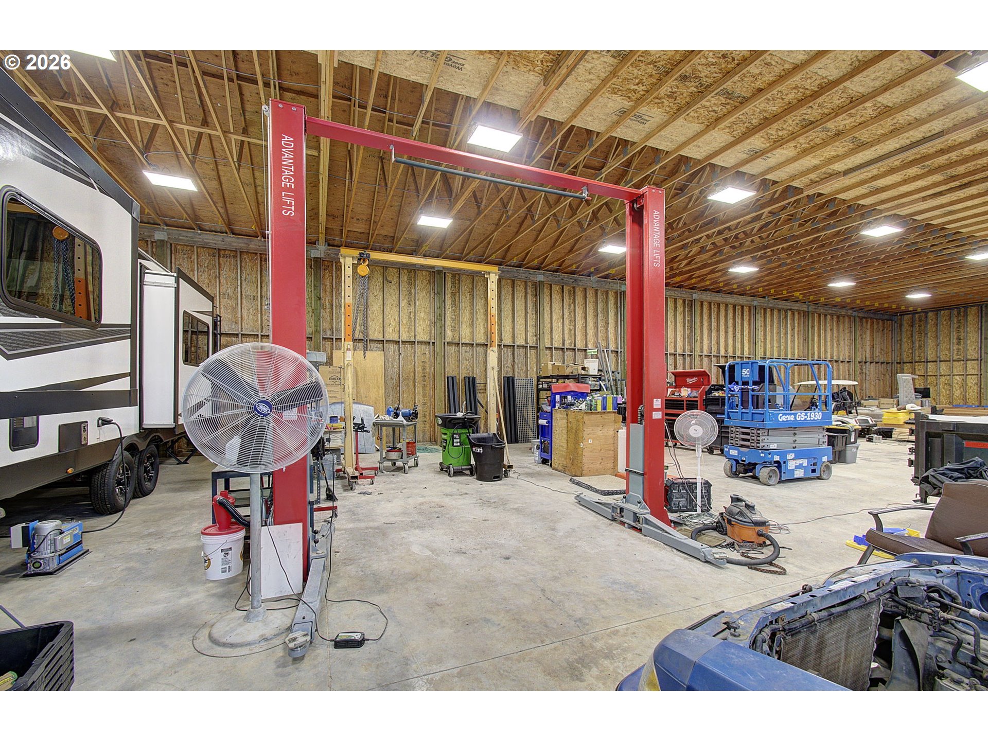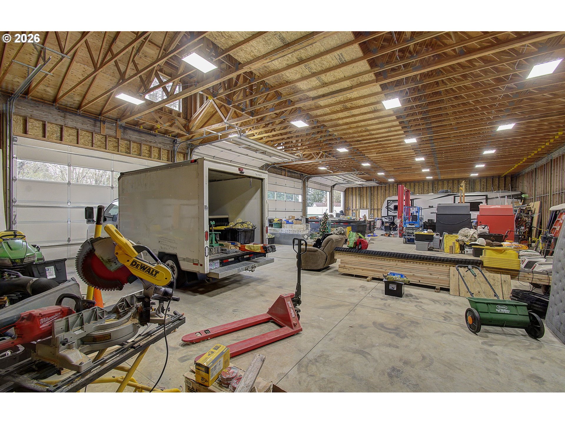 - Looking welcome to the shop of your dreams! Look no further. The impressive 5-bay shop truly distinguishes this property. Built in 2021, it features a spacious 5,000-square-foot area with high-speed internet and 200-AMP power. It’s ready for serious use. There’s a potential ADU with a 1/2-inch water line to the shop, pre-wired for speakers in each corner, and Hi-Bay Smart LED lighting fixtures on a dimmer. Conduits are installed for additional electrical outlets throughout the shop. Whether you have RVs, boats, equipment, or need space to spread out, this property has you covered. The bays include: 1 door measuring 10x14; 2 doors at 16x14; 2 doors at 16x12; and two man doors on each side of the shop. The sturdy 6-inch concrete floor, reinforced with wire mesh, provides durability. The layout offers easy access with multiple entry points and plenty of space in front to turn, park, and store larger rigs or trailers. A dedicated dog run features a well-built structure with a concrete floor, power, heat, a covered outdoor area, and water available in the run. There’s also a separate woodshed with electricity. Located in a beautiful area, nestled back among two streams, a pond, and a fenced garden with 100 blueberries. Relax with your favorite drink after a long day on this stunning property.