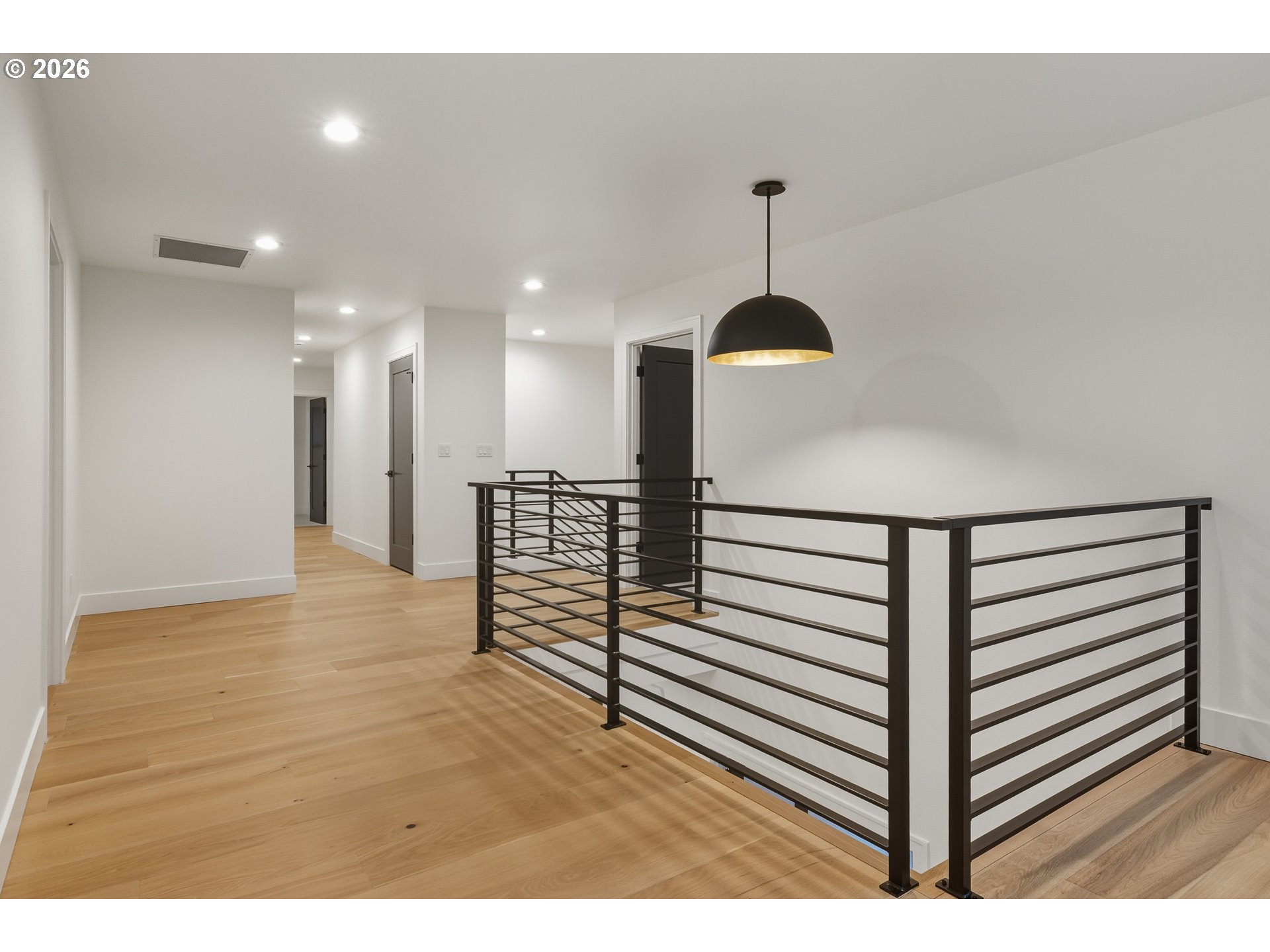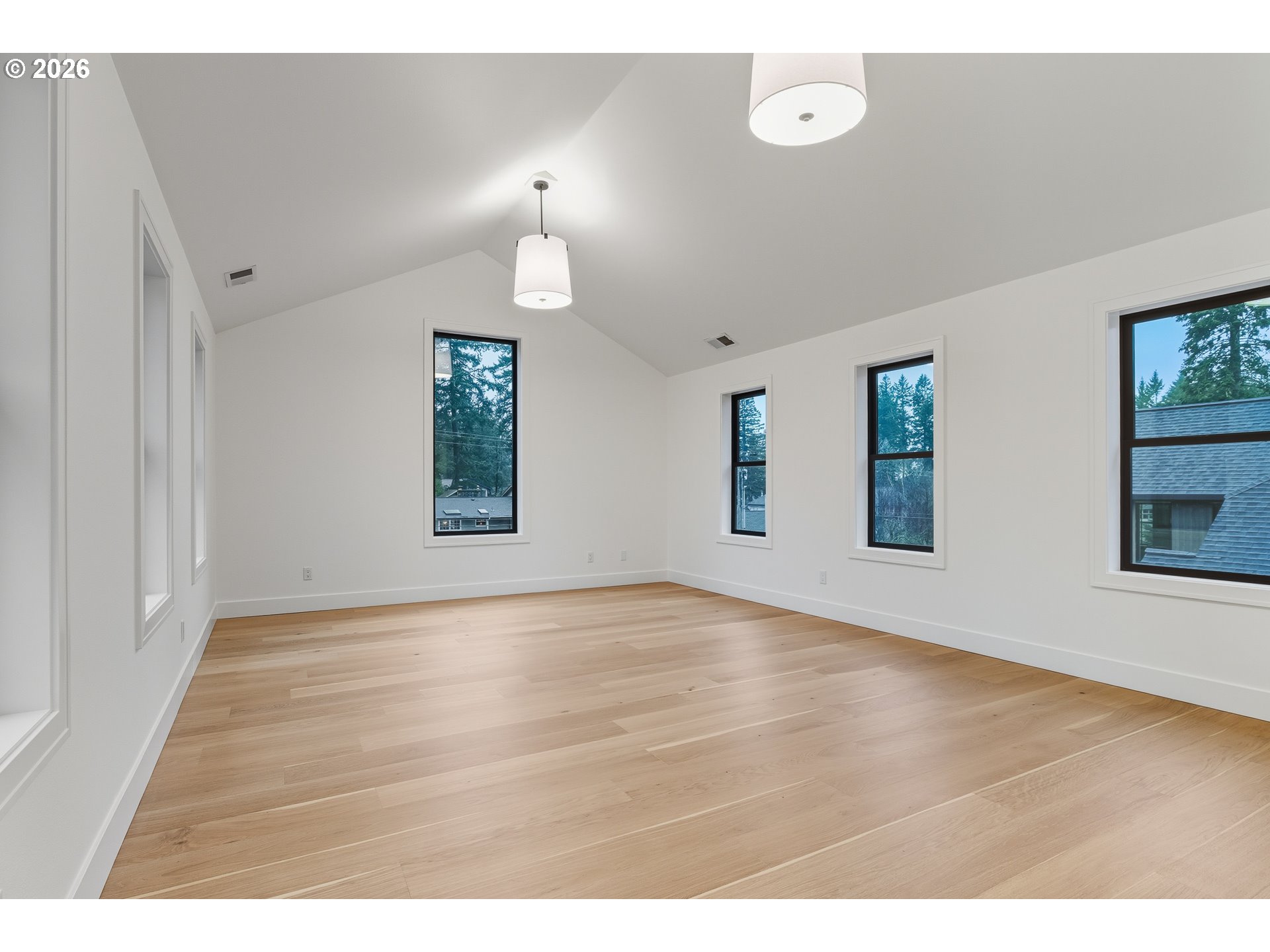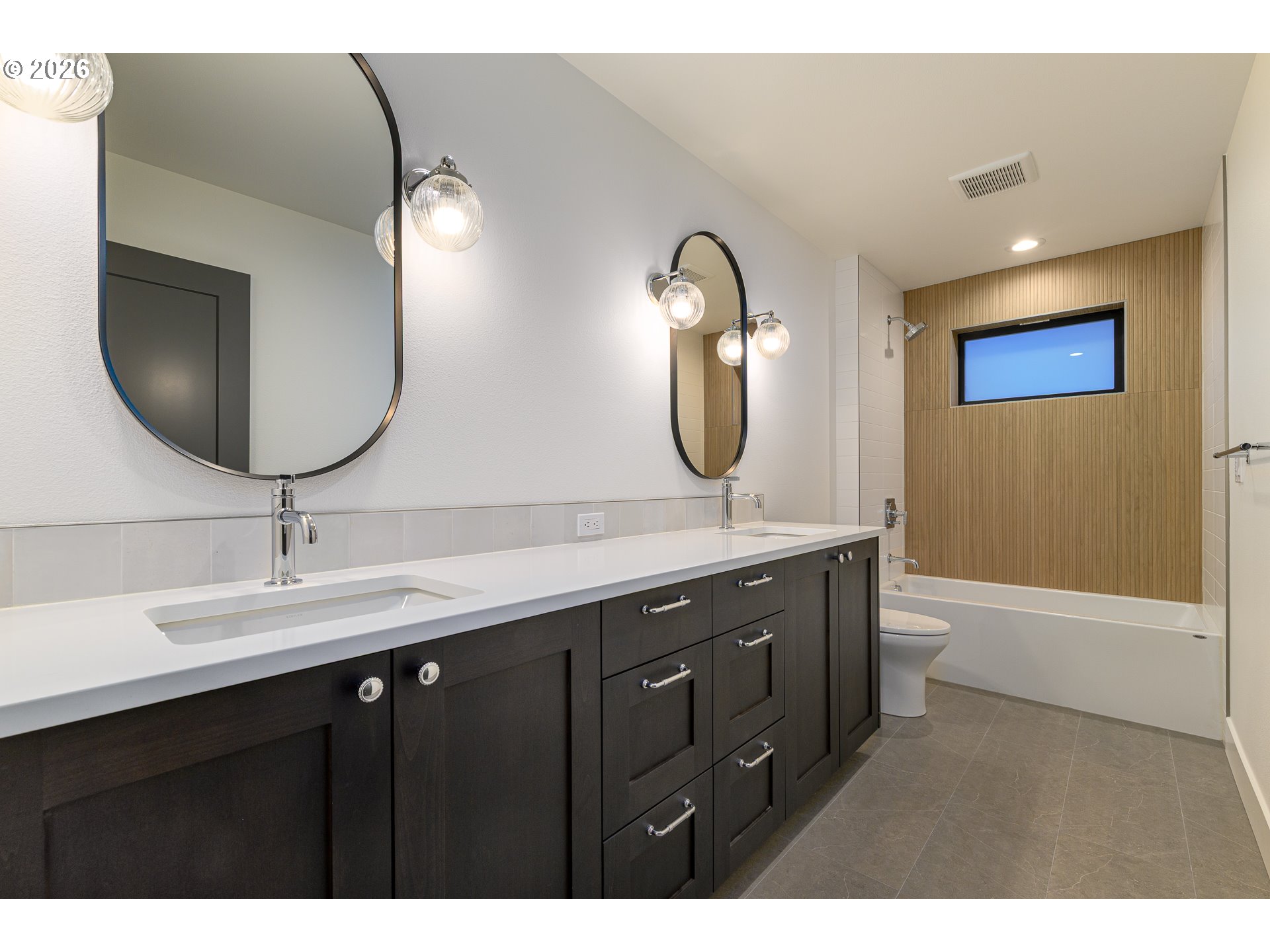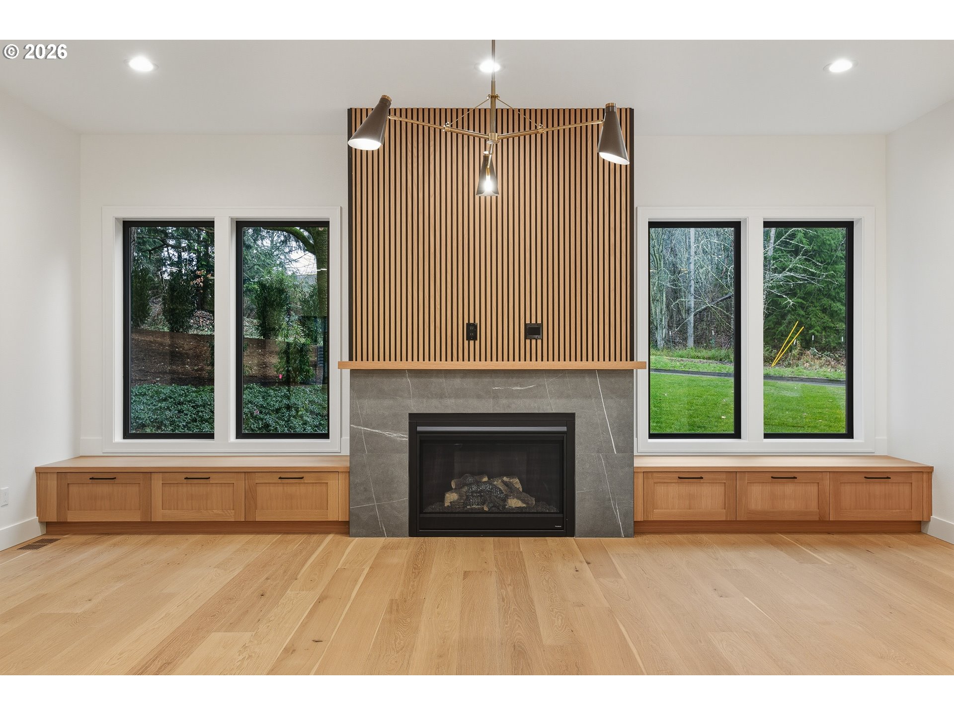 - Another Architectural Masterpiece in Lake Oswego by Renowned Builder BP Properties. This stunning NW Contemporary home in the desirable Palisades neighborhood blends modern design with natural elegance. Featuring 5 bedrooms, 4 baths—including two ensuite bedrooms in addition to the luxurious primary suite—this home offers exceptional space and comfort. Crafted with a mix of cedar and metal-accented composition roofing, the exterior makes a bold, timeless statement. Inside, the gourmet kitchen showcases white cabinetry, a white oak island, quartz countertops, and seamless flow into the open living areas. Engineered hardwood floors run throughout, complemented by dramatic slat wall accents in the foyer and great room. The sun-drenched interior features oversized windows and a multi-panel slider leading to a covered outdoor patio with an open-flame fireplace—perfect for year-round entertaining. The primary suite boasts heated floors, a soaking tub, and custom tile with quartz finishes. Bonus features include an oversized vaulted laundry room with chandelier, glass-panel garage door, and beautifully landscaped yard with hardscaping and in-ground sprinklers. Just minutes to the new Lake Oswego Recreation & Aquatic Center, top-rated schools, and parks.