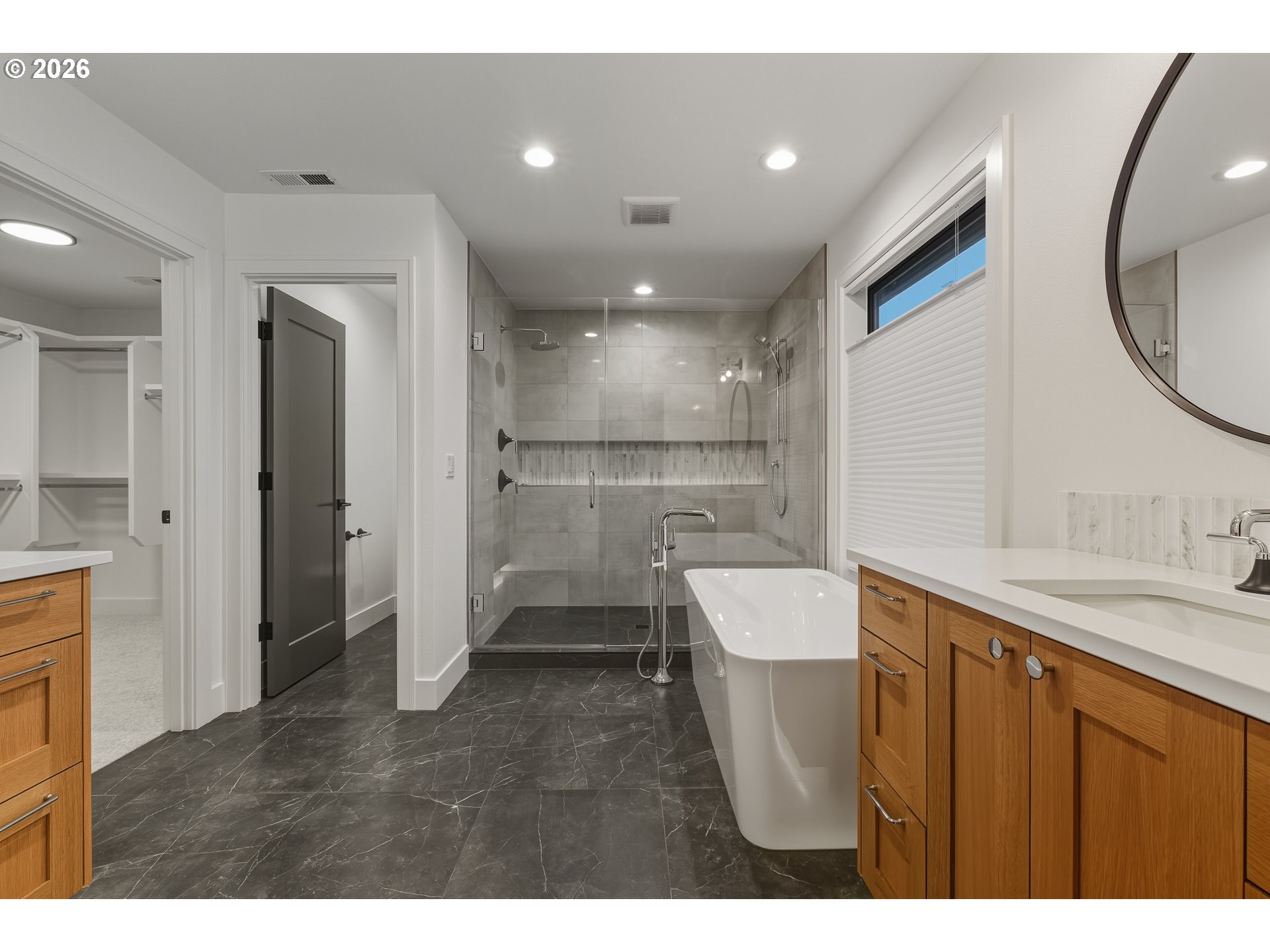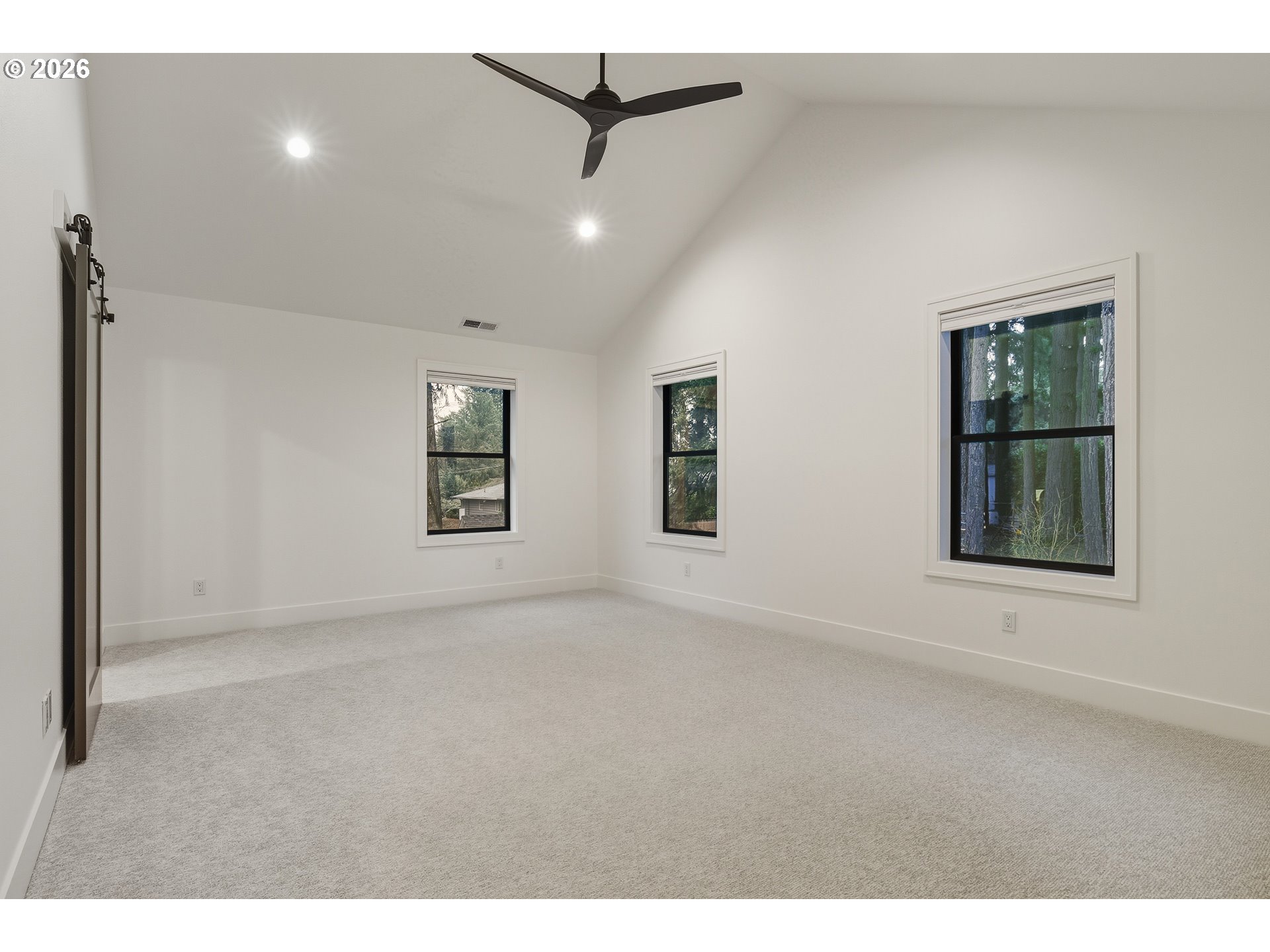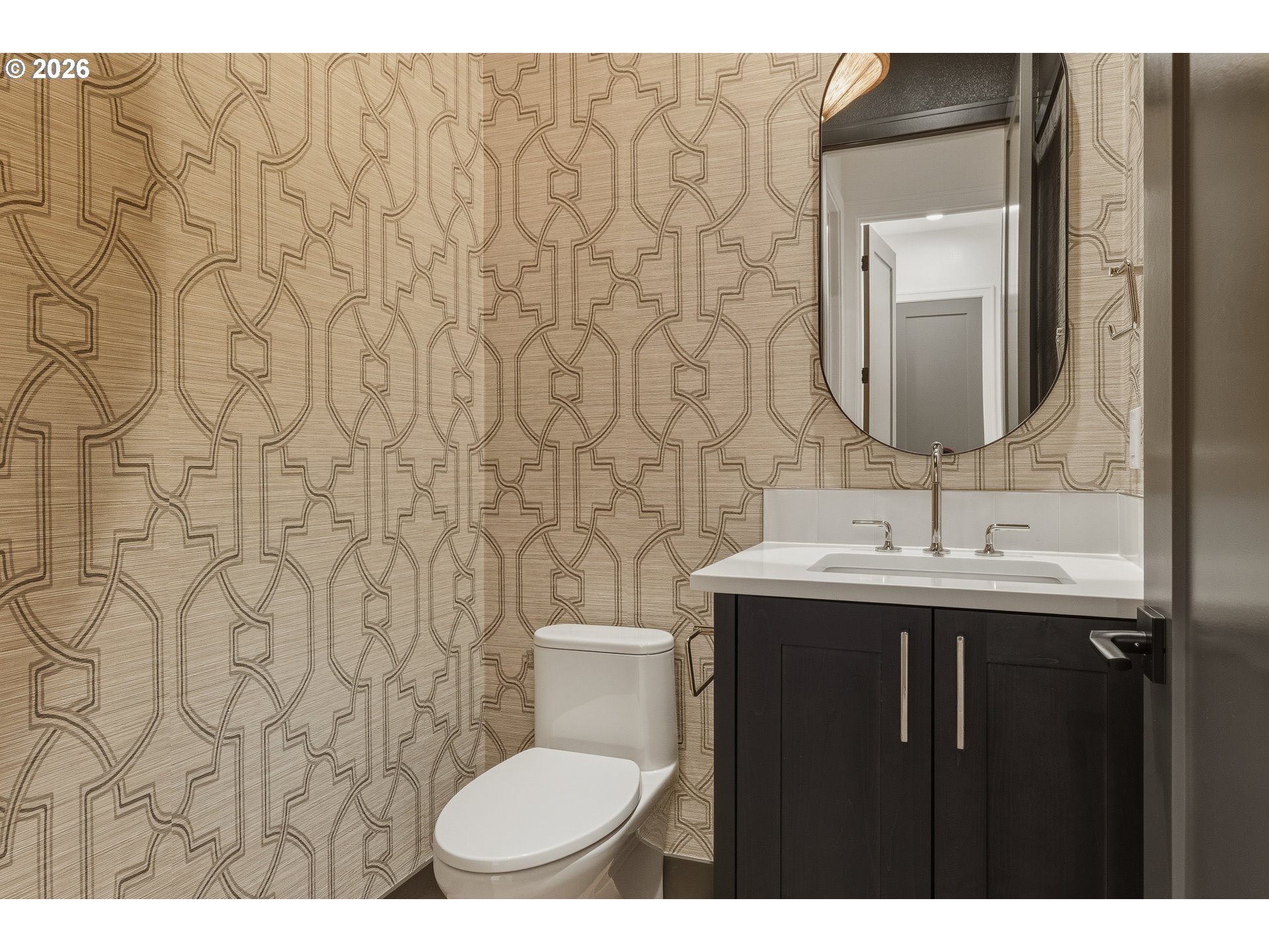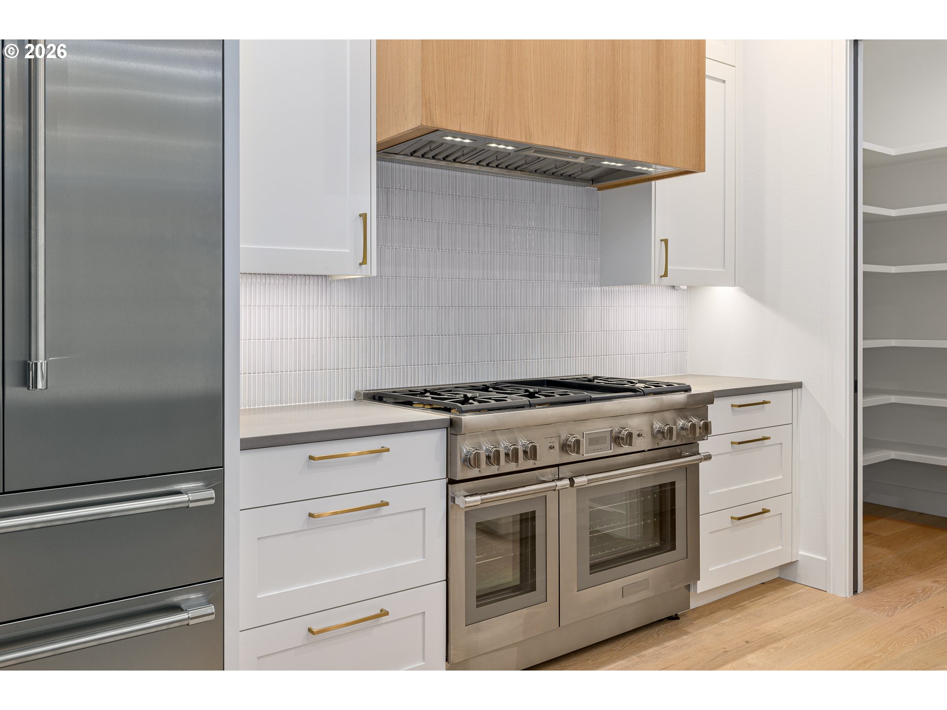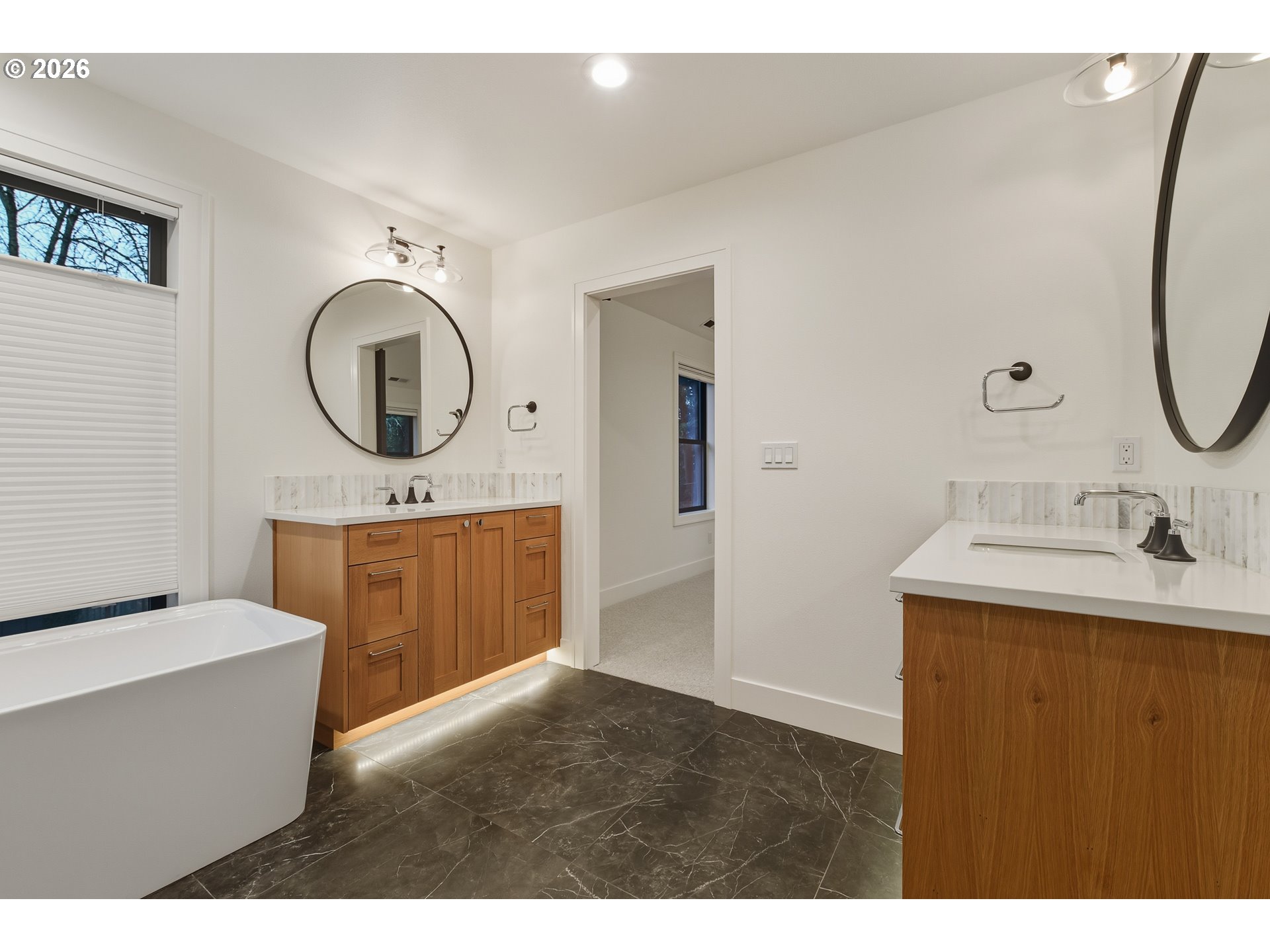 - Another Architectural Masterpiece in Lake Oswego by Renowned Builder BP Properties. This stunning NW Contemporary home in the desirable Palisades neighborhood blends modern design with natural elegance. Featuring 5 bedrooms, 4 baths—including two ensuite bedrooms in addition to the luxurious primary suite—this home offers exceptional space and comfort. Crafted with a mix of cedar and metal-accented composition roofing, the exterior makes a bold, timeless statement. Inside, the gourmet kitchen showcases white cabinetry, a white oak island, quartz countertops, and seamless flow into the open living areas. Engineered hardwood floors run throughout, complemented by dramatic slat wall accents in the foyer and great room. The sun-drenched interior features oversized windows and a multi-panel slider leading to a covered outdoor patio with an open-flame fireplace—perfect for year-round entertaining. The primary suite boasts heated floors, a soaking tub, and custom tile with quartz finishes. Bonus features include an oversized vaulted laundry room with chandelier, glass-panel garage door, and beautifully landscaped yard with hardscaping and in-ground sprinklers. Just minutes to the new Lake Oswego Recreation & Aquatic Center, top-rated schools, and parks.