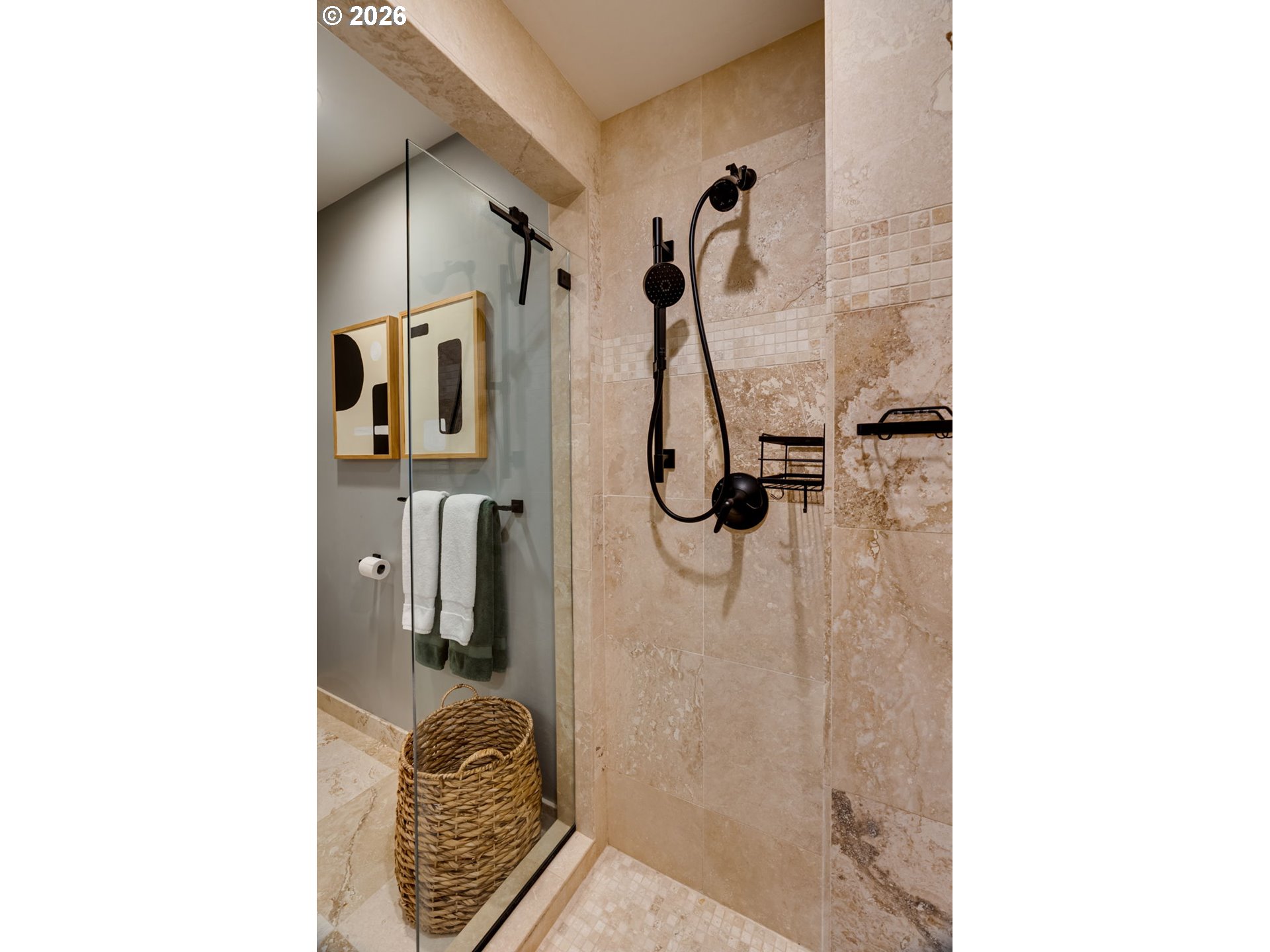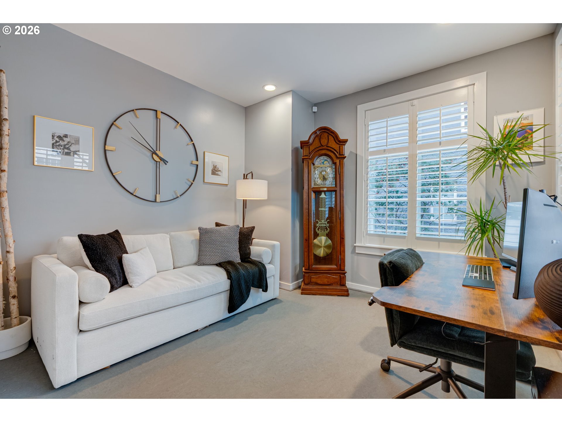 - Settle into a rare end-unit townhome that feels both serene and sophisticated, perfectly positioned in the vibrant heart of the Pearl District. Just beyond your doorstep lies the best of Portland living, yet inside, the home unfolds as a quiet retreat—bathed in natural light and grounded in thoughtful, modern design. Inspired by the harmony of Japanese and Scandinavian aesthetics, the interiors strike a beautiful balance between warmth and restraint, where natural textures and clean lines coexist effortlessly. Custom wooden shutters and automated blinds throughout the home offer seamless light control and privacy, reinforcing the sense of calm and intention.Earthy oak slats, smooth stone surfaces, matte black cabinetry, and soft cement hues create a tactile, soothing environment that feels intentionally curated. Newly installed Forbo Marmoleum floors—crafted from natural materials and sourced from Europe—run throughout the home, offering sustainability and enhanced sound absorption for exceptional acoustic privacy.The kitchen has been redesigned for both form and function, featuring a Sub-Zero refrigerator, Wolf range, soapstone countertops, custom cabinetry, an extra-deep sink, and upgraded electrical. A private balcony extends the living space outdoors, perfect for slow mornings or quiet evenings.On the entry level, a flexible third bedroom or office sits alongside the garage, accessed from a peaceful alley and equipped with EV charging and ample storage. Upstairs, two generously sized bedrooms and two full baths await, including a luxurious primary suite with a custom walk-in closet, dual vanities, and an expansive double shower.With acclaimed restaurants, cafés, boutiques, and green spaces just steps away, this home offers the rare blend of urban energy and private sanctuary—Pearl District living at its best. SEE IT TODAY! [Home Energy Score = 9. HES Report at https://rpt.greenbuildingregistry.com/hes/OR10201093]