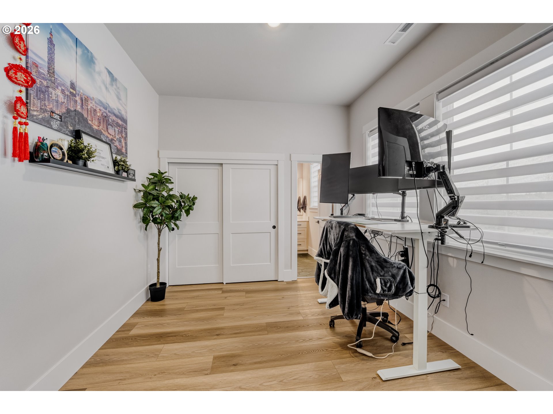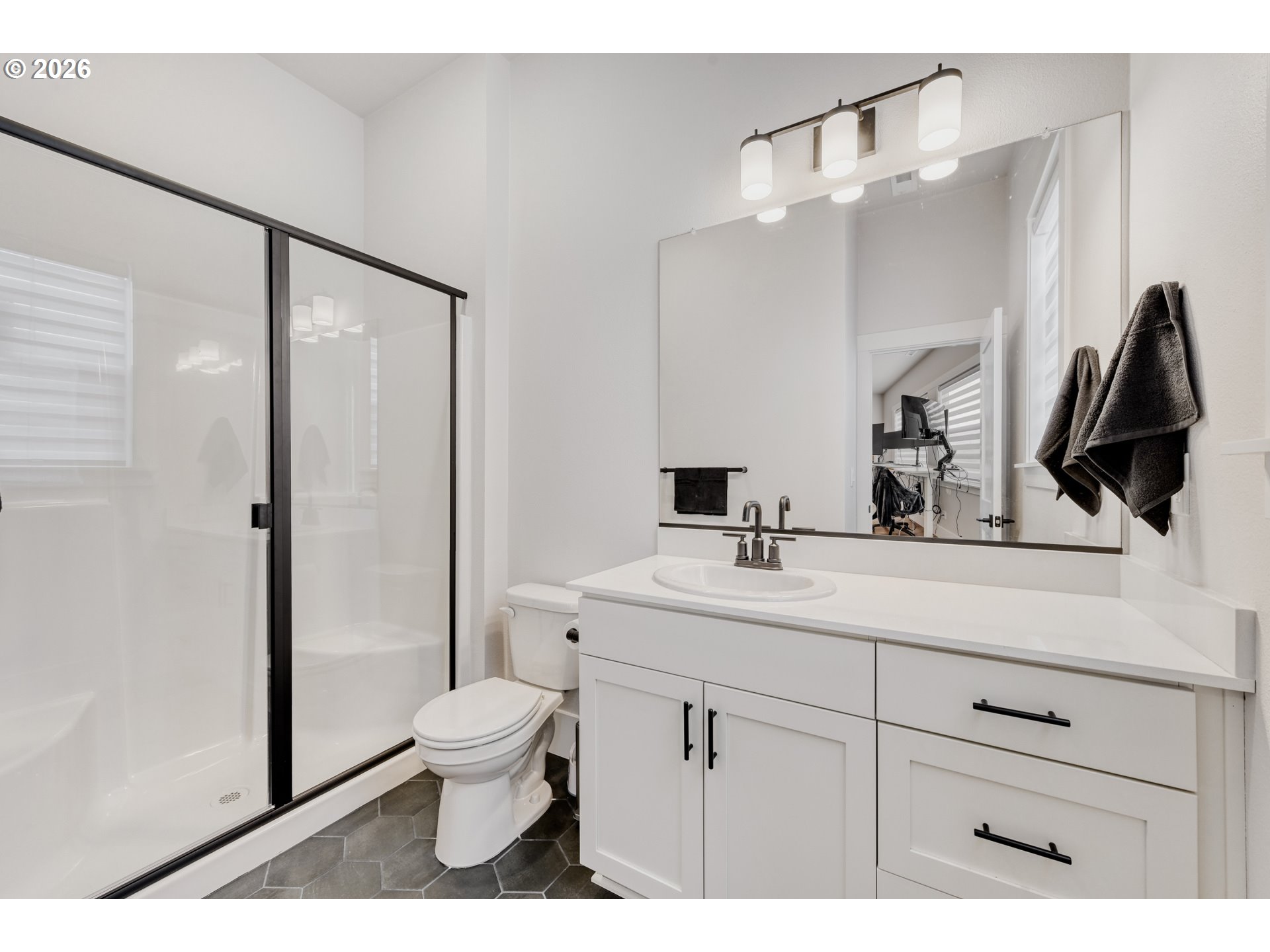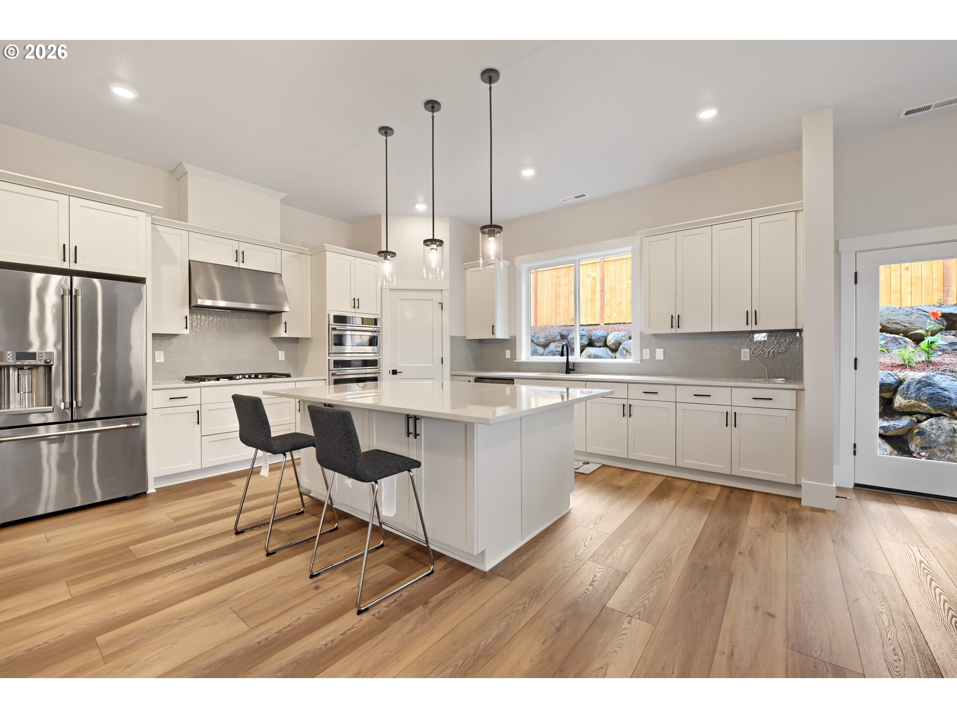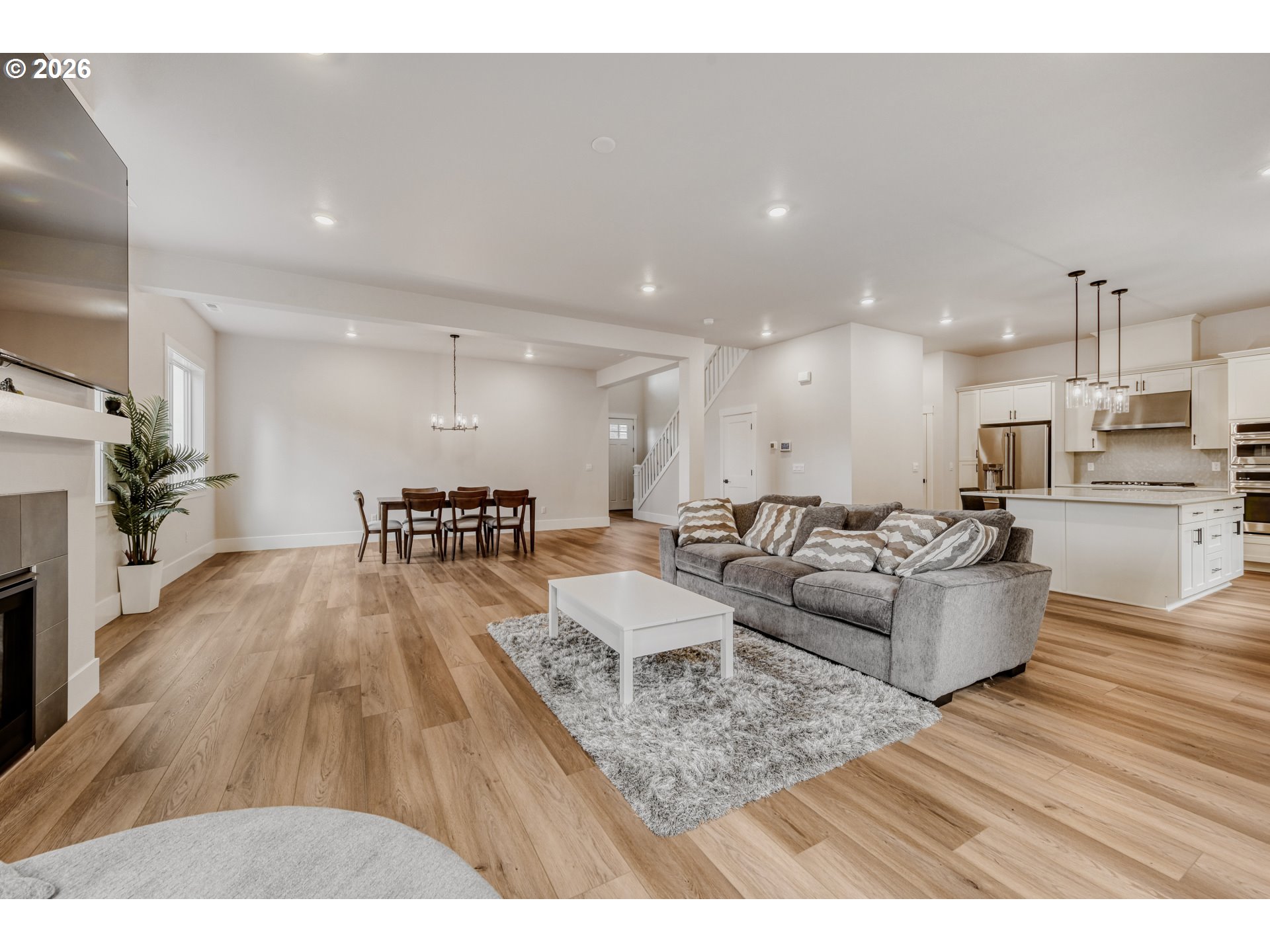- Positioned on one of the most sought after corner lots in Axiom at River Terrace, this Alameda floor plan offers rare southwestern territorial views with greenspace bordering the home to the south, creating a sense of openness that sets it apart. Grand double door entry welcomes you into a light filled interior with 10’ ceilings, 7.5” base trim and the Eclectic+ design package valued at over $40k featuring honed quartz surfaces, black fixture finishes and refined details throughout. The main level offers exceptional flexibility with a bedroom and full bath, ideal for guests, multi generational living or a dedicated work from home space. At the heart of the home, the kitchen features an oversized island with seating on two sides, gas range and walk-in pantry, all brought together with clean lines and purposeful design. The dining area and living room center around a gas fireplace and open to the covered patio and fenced backyard. Upstairs, spacious bedrooms, a generous family room and dedicated laundry provide comfortable living, while the primary suite stands out with a soaking tub, walk-in shower, double vanity and a large walk-in closet. Built for modern living, this home includes smart features such as a Eufy palm recognition door lock, Honeywell smart thermostat with AC and a 3-car garage wired for EV charging. Located within the vibrant and growing River Terrace community, enjoy access to 200+ acres of parks, trails, pickleball courts, dog parks and nearby Progress Ridge shopping and dining. Top rated Art Rutkin Elementary within the community along with convenient access to transit, I-5 and Hwy 217 for easy commuting. With the upcoming River Terrace Town Center expansion bringing new retail and amenities just moments away, this is an opportunity to be part of one of Tigard's most exciting and evolving neighborhoods. Seller offering Move-In Ready Package: 6-months complimentary high speed internet + DirecTV streaming - nothing to set up, just move in and enjoy.