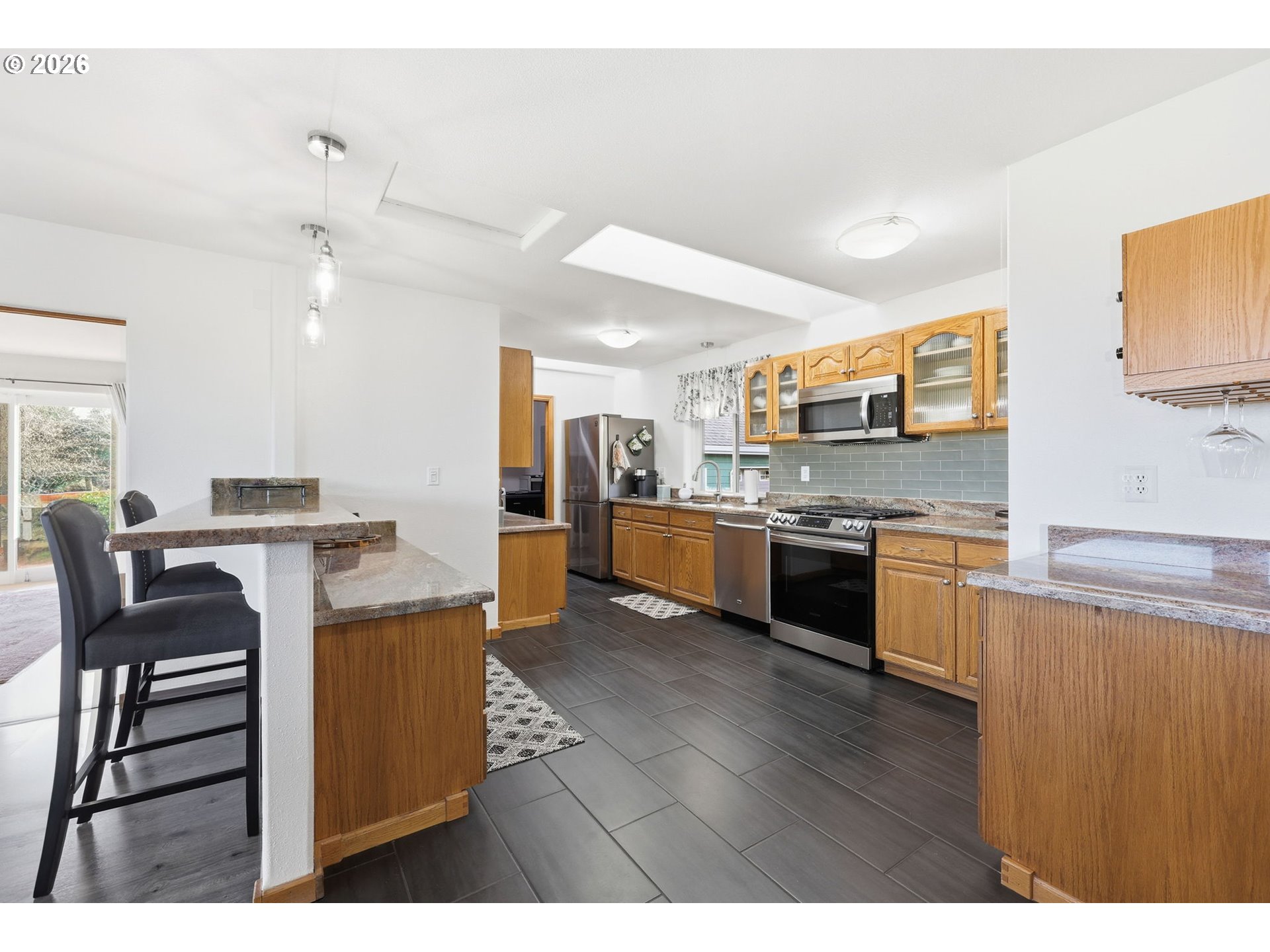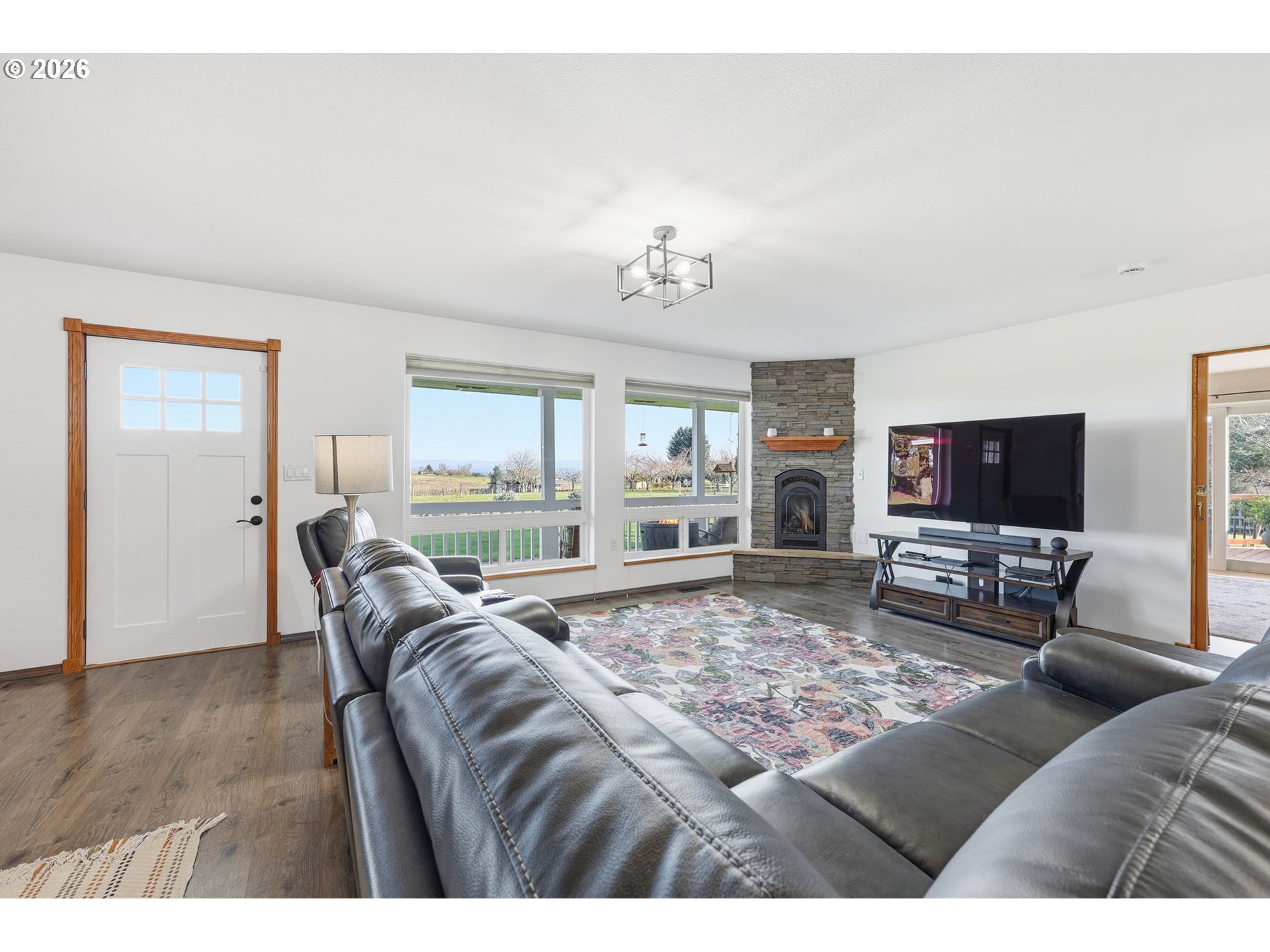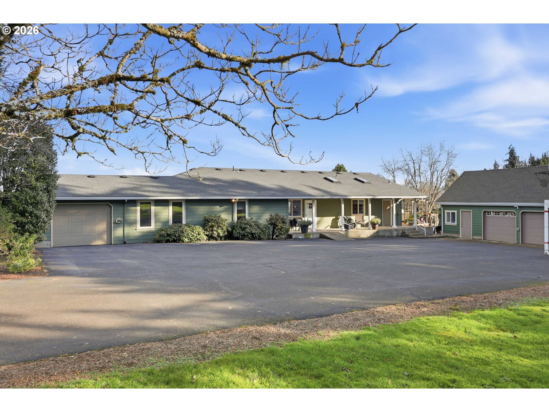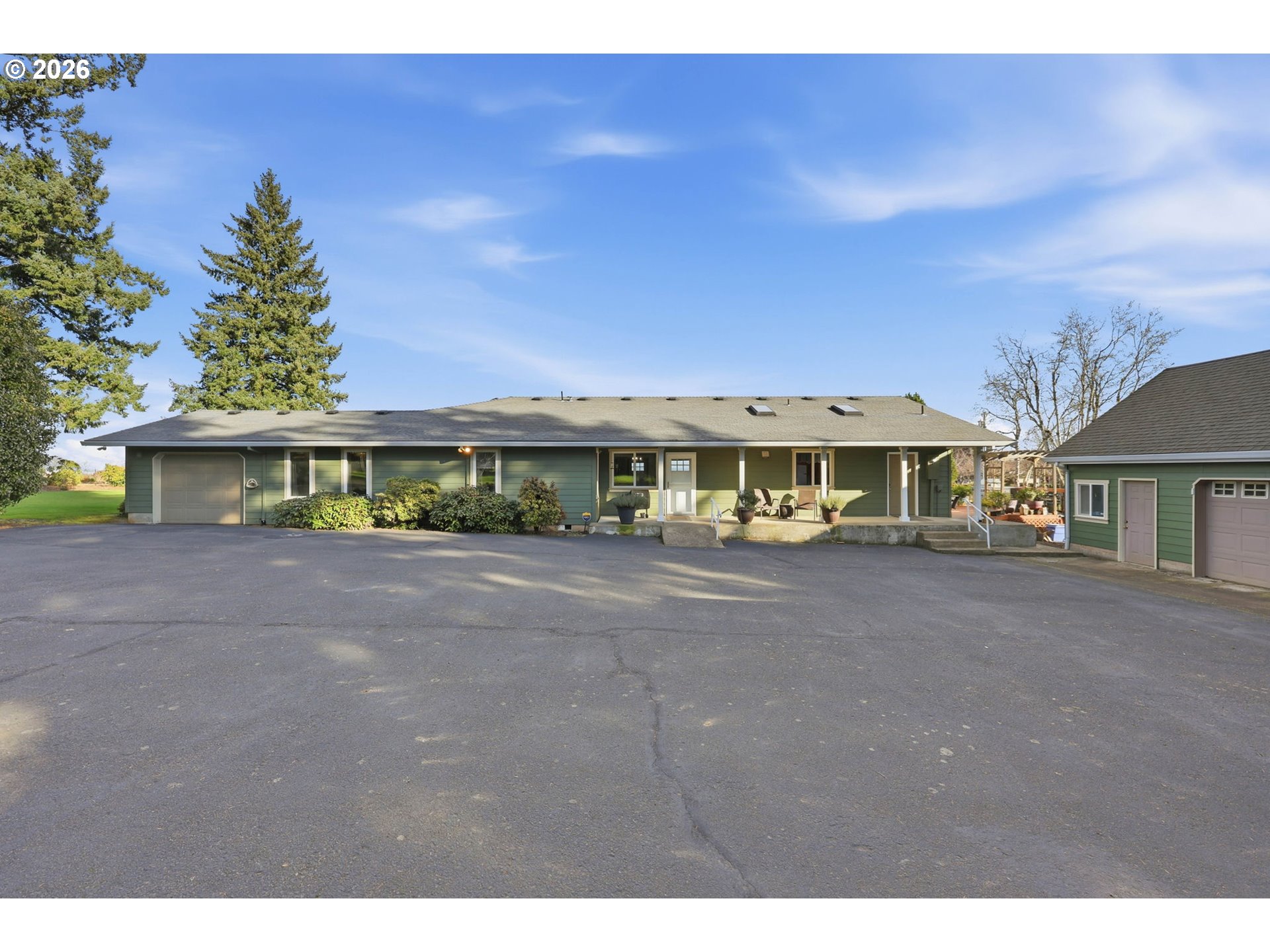 - Thoughtfully situated on a level parcel with sweeping mountain and valley views, this meticulously maintained and tastefully updated single level home on Parrett Mountain is a rare find. Originally built with accessibility in mind in 1995 at 1,609 square feet, a permitted 2008 addition expanded the home to 2,509 square feet.The home has seen meaningful updates throughout, including the kitchen. The spacious kitchen has warm Crema Bordeaux granite countertops and durable tile flooring. Open sightlines to the living and dining areas create an easy flow for everyday living and entertaining, with abundant natural light from the skylight and large windows. Versatile layout with the option of three bedrooms and a dedicated office or four true bedrooms, complemented by three full bathrooms. Additional key systems include a whole-home water filtration system, hot water recirculation, and smart home automation with geofencing and alarm integration. The grounds are equally well cared for, with a fully fenced backyard, underground power, full drip irrigation and sprinkler system with timers, and annual arborist tree inspections. A brand new asphalt driveway leads to extensive outbuildings, including a heated shop with 220v power and potential for a four-car garage, plus a pole barn with two 12x36 bays, one 12x36 covered exterior bay, and 14-foot eaves. RV infrastructure includes a dump station and separately a 30-amp 110v hookup. The level lot is planted with mature fruit trees and vines, including pear, grape, raspberry, fig, and plum.