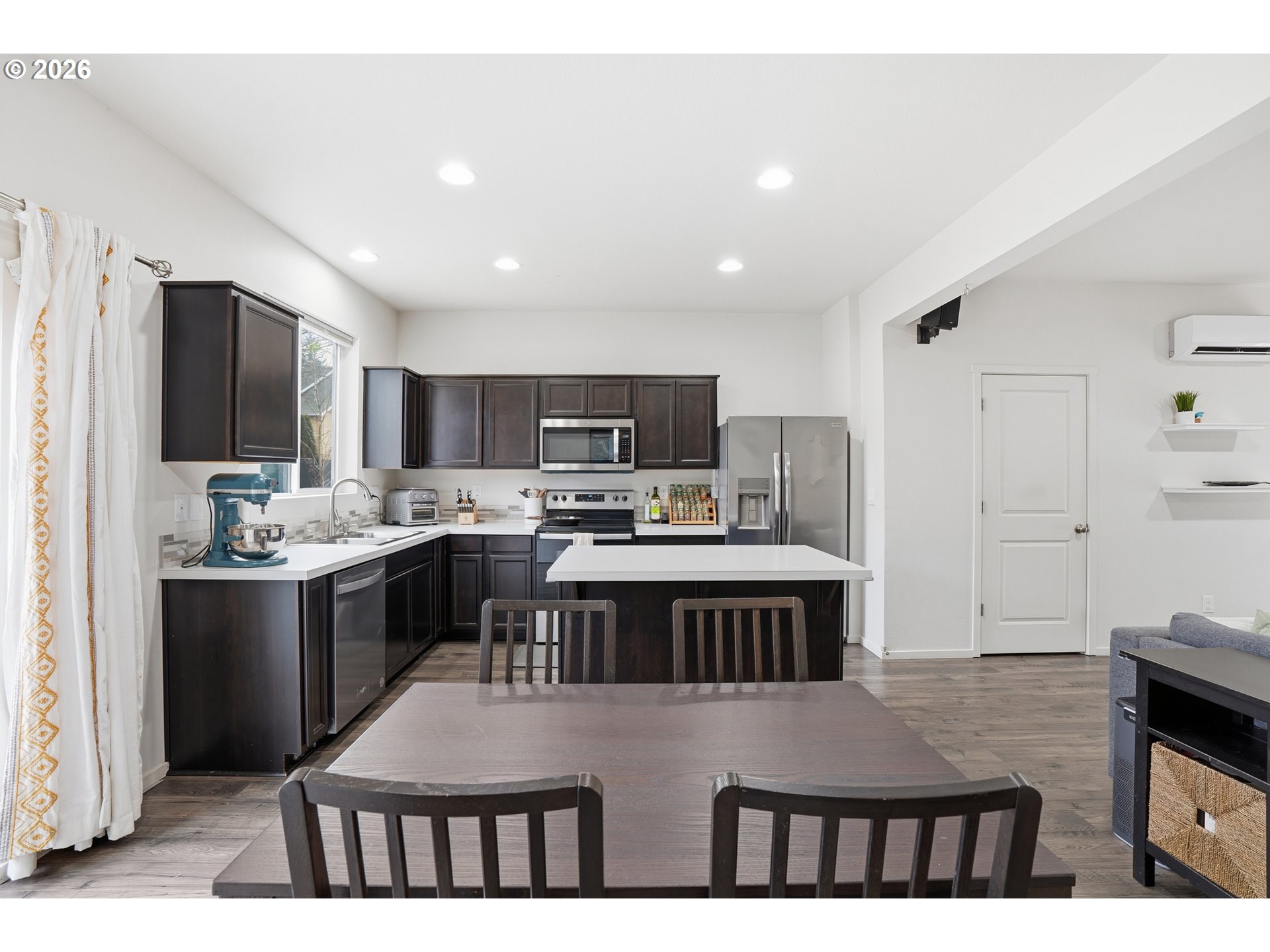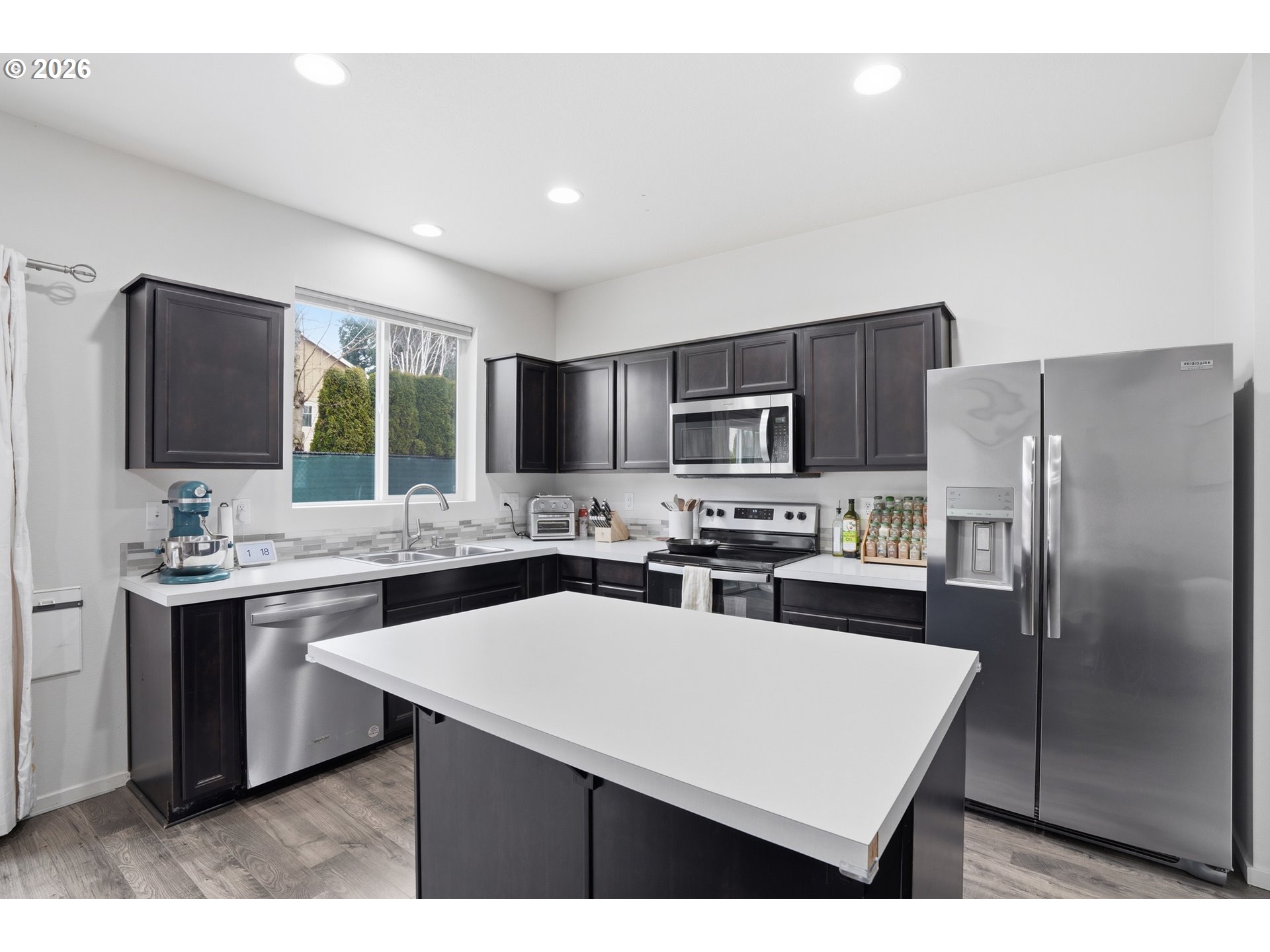 - Welcome home to this beautifully situated two-story end-unit townhome, thoughtfully enhanced with smart home technology and a truly one-of-a-kind outdoor setting not found in any other townhome in the community. With 3 bedrooms and 2.5 baths, this home lives larger than expected thanks to its rare end-unit location, offering added privacy, abundant natural light, and an expanded footprint. The open and inviting main level is anchored by a well-appointed kitchen featuring a center island, stainless steel appliances, ample cabinetry, and integrated smart home features designed for modern living. A sliding door off the kitchen opens to a spacious brick patio—ideal for entertaining or relaxing—leading down to an exceptionally rare, private, fenced grassy yard. This oversized outdoor space is exclusive to this home and sets it apart from all other townhomes in the neighborhood, offering a level of outdoor living seldom found in this style of property. Upstairs, plush carpeted bedrooms create a comfortable retreat, complemented by two full bathrooms. The primary suite features a walk-in closet and private bath, while smart climate and convenience features enhance comfort throughout the home. Washer, dryer, and sound system are included, making this residence truly move-in ready. An attached one-car garage with additional driveway parking adds everyday convenience. Located within the Four Seasons HOA, this home is minutes from I-205 and close to shopping, schools, parks, and essential amenities—providing an easy commute and a connected lifestyle. A rare opportunity to enjoy low-maintenance living paired with modern technology, exceptional privacy, and an outdoor space that is truly unmatched.