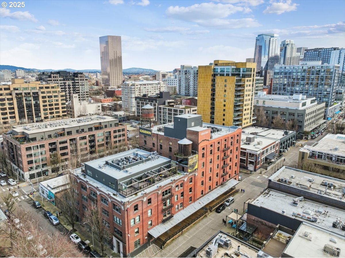 - Experience urban living in this spacious, industrial inspired loft at the iconic Chown Pella Condominiums, one of the Pearl District’s most recognized historic buildings. Showcasing authentic loft character, this light-filled corner features large windows, high ceilings, massive post-and-beam timbers and exposed brick and concrete walls. Designed for easy, single-level living, the thoughtfully configured floor plan offers a generous primary suite along with two additional flex-rooms, ideal as bedrooms, offices or creative studio space. Wood floors have been beautifully refinished, and HVAC systems updated by the current owner. The open kitchen features granite countertops, an oversized island with built-in wine refrigerator plus updated stainless steel appliances. Two tastefully renovated bathrooms add modern comfort while preserving the loft’s industrial feel. The building was seismically retrofitted during its 1996 condo conversion. Unit includes two secured parking spaces in the gated outdoor lot plus one deeded storage unit. Residents enjoy access to a fantastic rooftop common area, perfect for small gatherings or a glass of wine at sunset. Located in the heart of the Pearl District, you’re just steps from Whole Foods, World Foods, restaurants, boutiques, cafés, galleries and multiple fitness studios. The beloved First Thursday Art Walk unfolds right outside your door. With a Walk Score of 100 and Bike Score of 98, this is truly city living at its finest. Property was featured in the New York Times in October 2025.