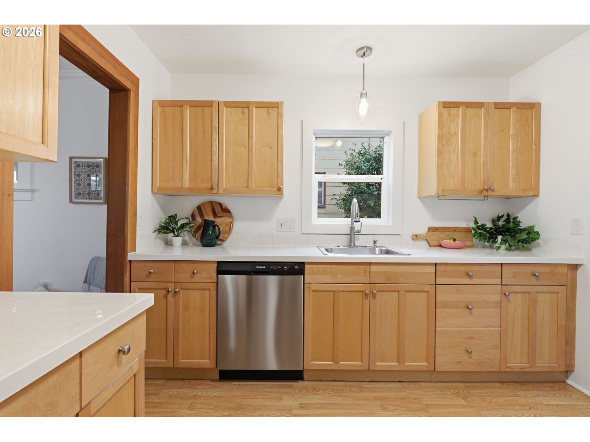- Move-in ready bungalow in the desirable Overlook neighborhood! This charming home features a fantastic floor plan with a welcoming living and dining area filled with abundant natural light.The updated kitchen offers newer cabinetry with ample storage, updated countertops, a new sink and garbage disposal, newer appliances, and a gas range. Just off the kitchen, a bright utility room provides convenient main-level laundry and additional storage.The main floor bathroom has been updated with a new shower, tile flooring, and modern lighting. You’ll also find a generously sized bedroom on the main level featuring bamboo flooring and great natural light. Upstairs, the spacious primary bedroom includes room for a sitting area, ample closet space, bamboo flooring, and an updated half bath—with the potential to expand into a full en-suite. A third bedroom on the upper level offers newer carpet and a large closet. Other updates include fresh interior paint throughout, newer vinyl windows, and added attic insulation (2020). Major systems have been updated, including a furnace (2017), water heater (2015), and electrical panel with additional upgrades (2021). The roof is approximately 13 years old. The basement, with exterior access, provides excellent space for a workshop and storage space. Ideally located with convenient access to the MAX line, New Seasons Market, and North Portland’s popular restaurants and shops. The backyard offers a blank slate to create your dream outdoor space, with potential for a garden, entertaining area, or even an income-producing ADU. [Home Energy Score = 3. HES Report at https://rpt.greenbuildingregistry.com/hes/OR10246468]
