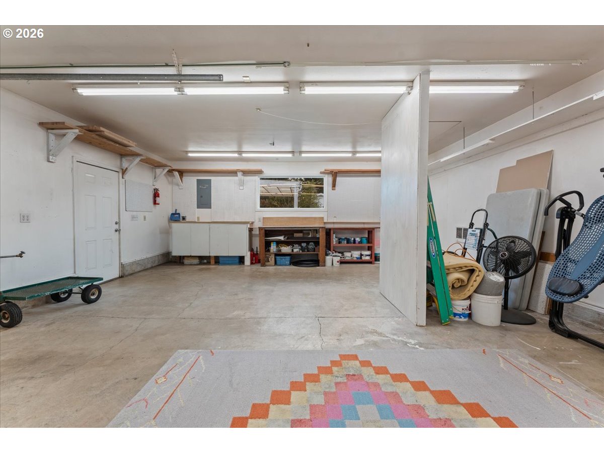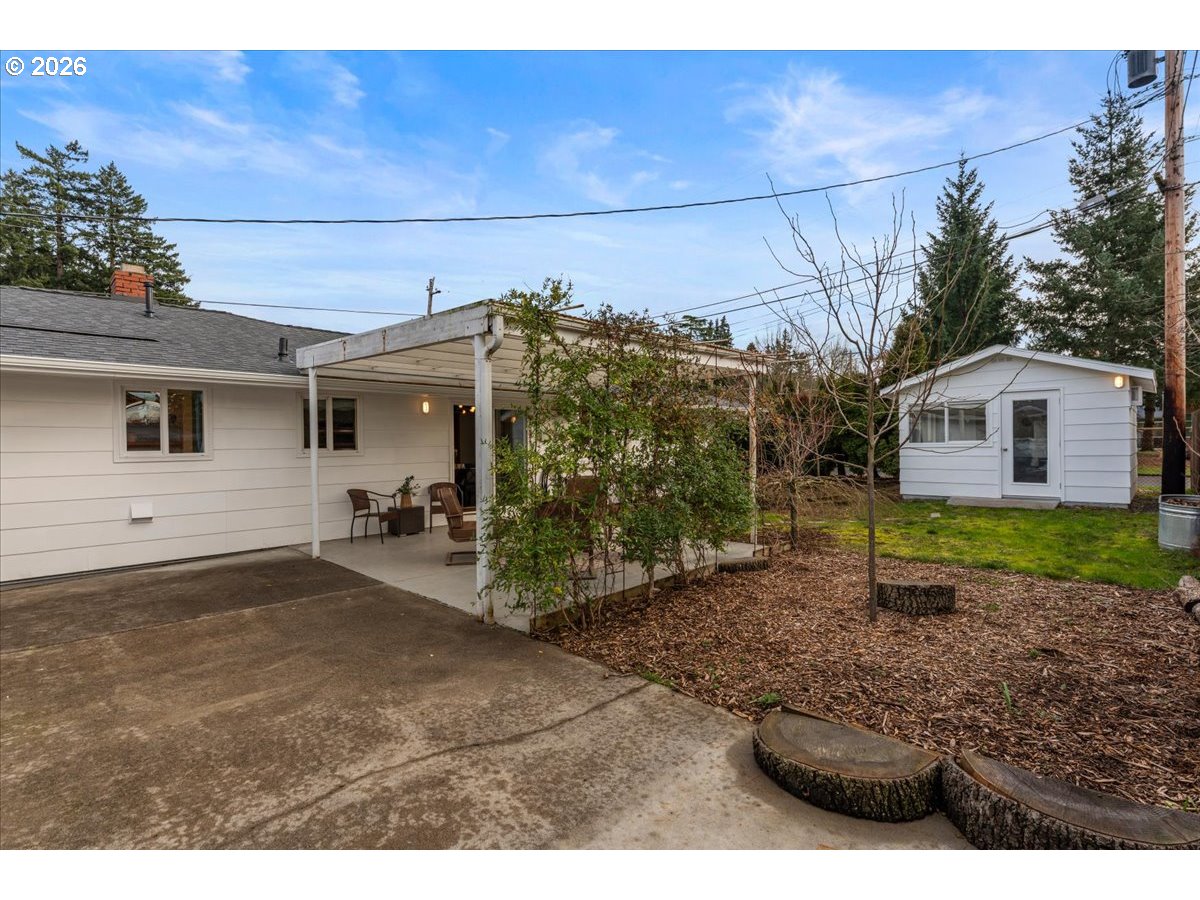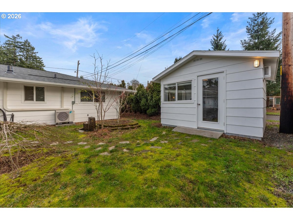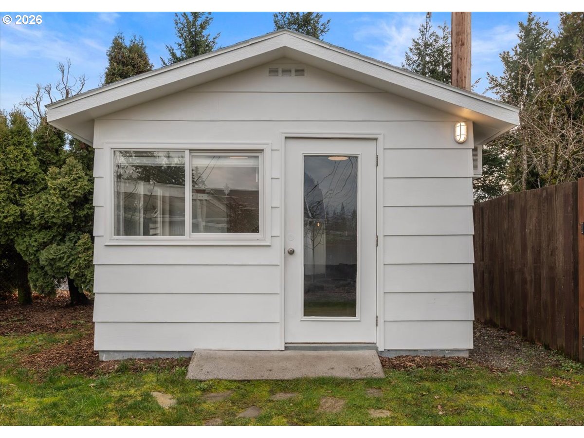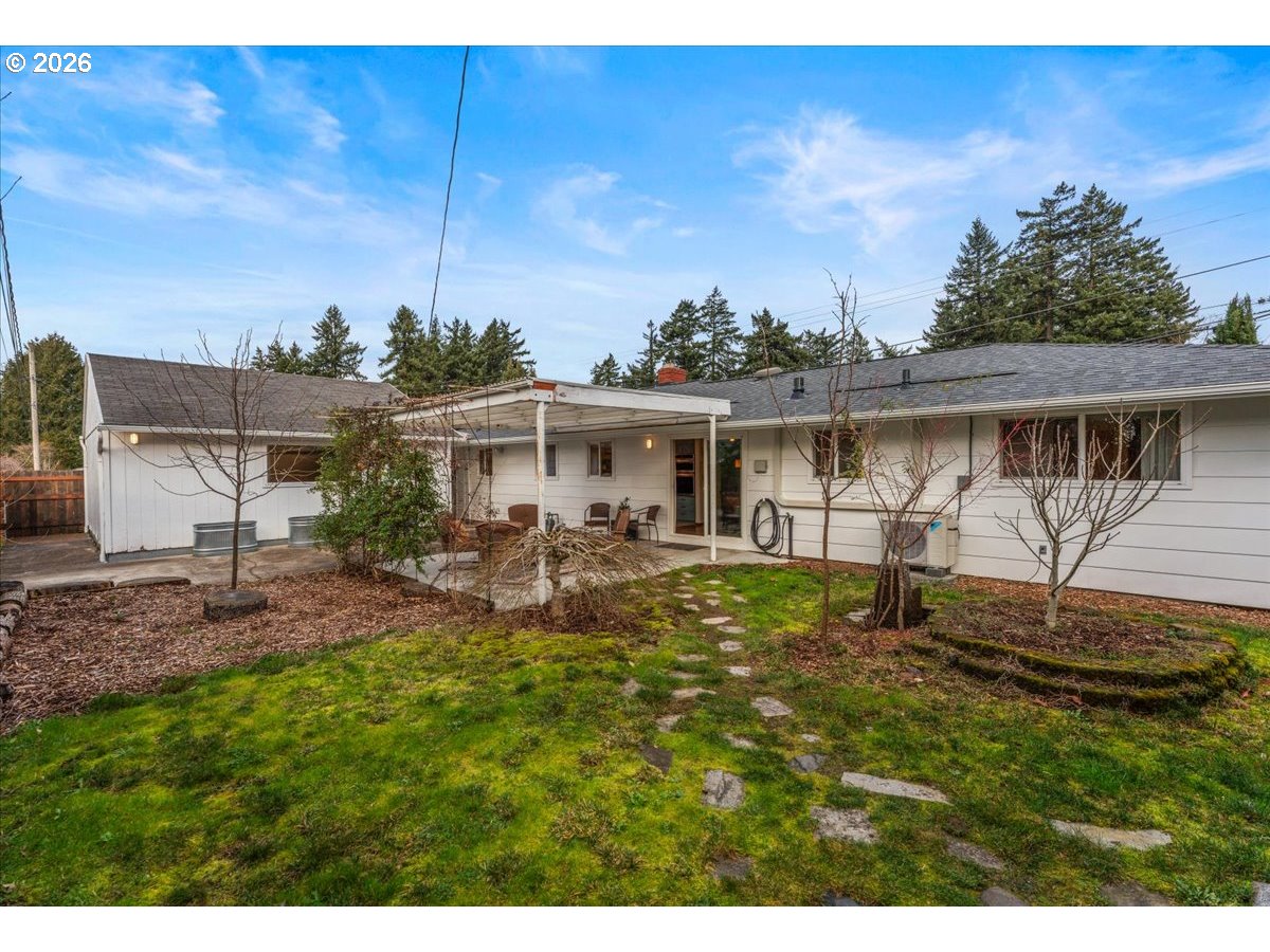 - The ideal home for a car enthusiast, maker, or anyone needing serious workspace — paired with the comfort of a bright mid-century modern retreat. Inside, you’ll find hardwood floors, a brick fireplace, remodeled kitchen and bathrooms, a new roof and gutters, and comfortable room sizes throughout. The property offers two garages: a traditional attached two-car garage with built-ins, plus a standout oversized detached garage built for real projects. This impressive shop space includes hard-piped compressed air lines, 240V power, and its own separately metered commercial electrical service — perfect for restoration work, hobby builds, or a home-based workspace.The backyard feels like a private oasis, with a covered patio, extra seating space, and a newly renovated home office with large windows overlooking a fountain where birds love to gather. Raised garden beds and established fruiting plants add color, life, and seasonal beauty.RV parking provides additional flexibility. Conveniently located by David Douglas High School and just a short few minutes to nearby parks. [Home Energy Score = 8. HES Report at https://rpt.greenbuildingregistry.com/hes/OR10244135]