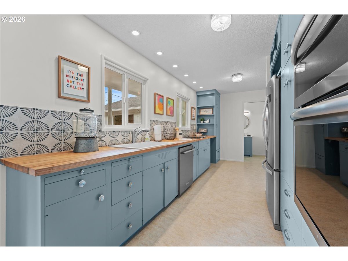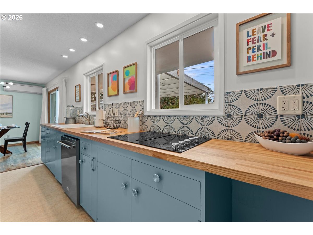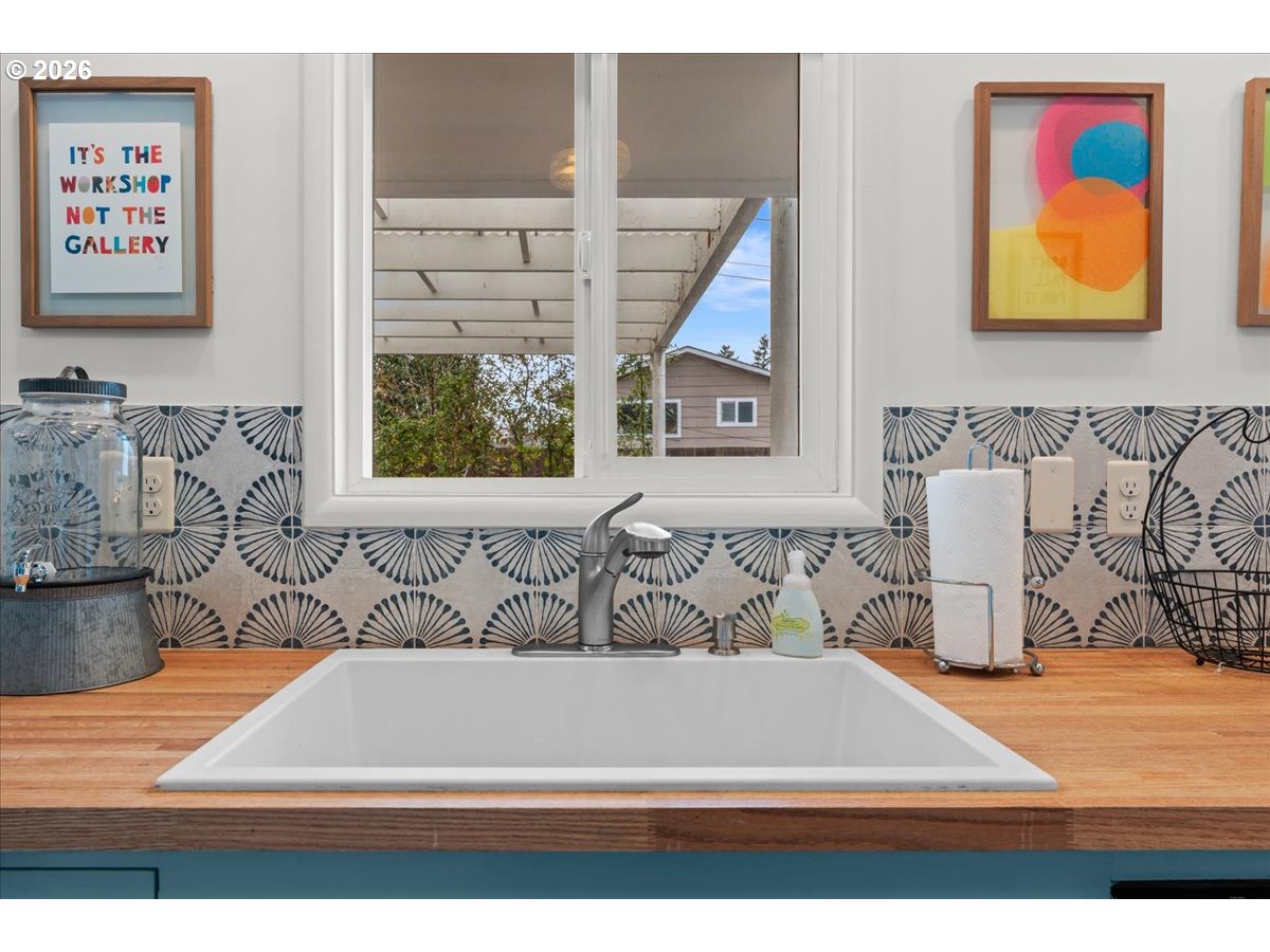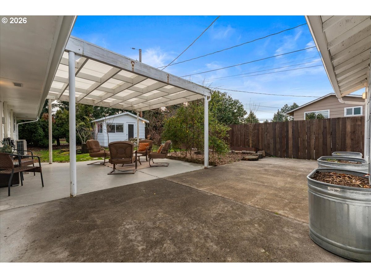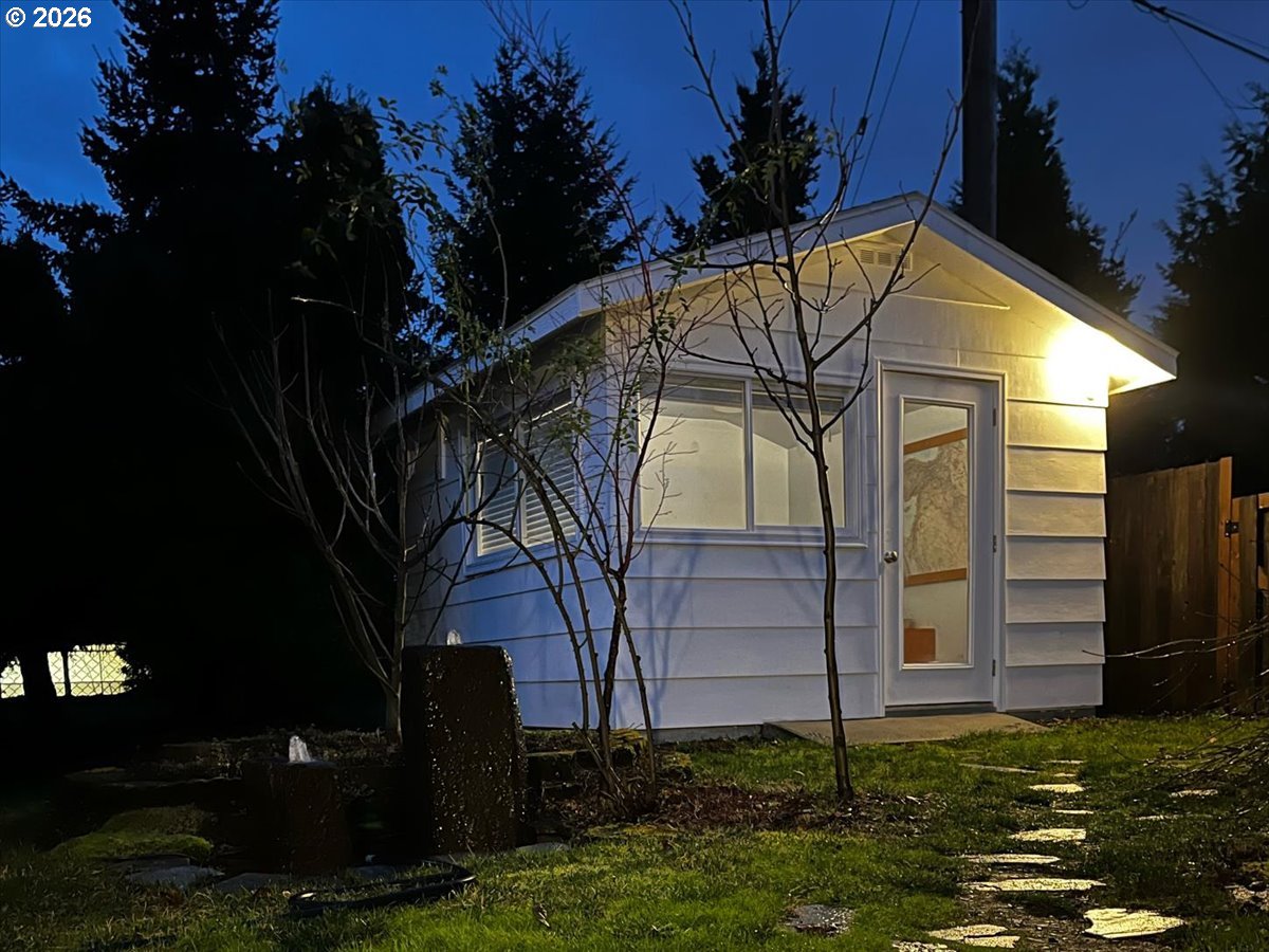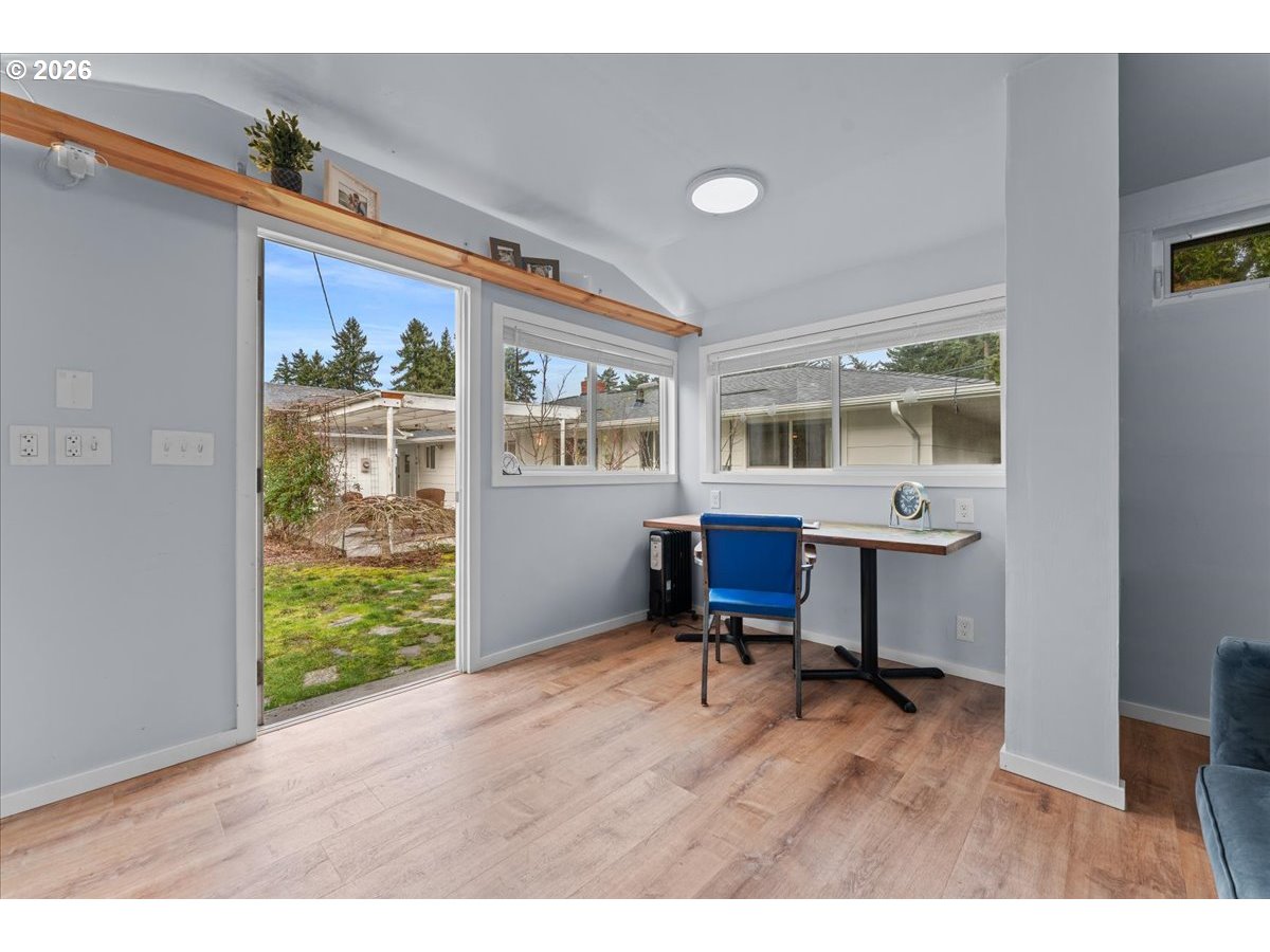 - The ideal home for a car enthusiast, maker, or anyone needing serious workspace — paired with the comfort of a bright mid-century modern retreat. Inside, you’ll find hardwood floors, a brick fireplace, remodeled kitchen and bathrooms, a new roof and gutters, and comfortable room sizes throughout. The property offers two garages: a traditional attached two-car garage with built-ins, plus a standout oversized detached garage built for real projects. This impressive shop space includes hard-piped compressed air lines, 240V power, and its own separately metered commercial electrical service — perfect for restoration work, hobby builds, or a home-based workspace.The backyard feels like a private oasis, with a covered patio, extra seating space, and a newly renovated home office with large windows overlooking a fountain where birds love to gather. Raised garden beds and established fruiting plants add color, life, and seasonal beauty.RV parking provides additional flexibility. Conveniently located by David Douglas High School and just a short few minutes to nearby parks. [Home Energy Score = 8. HES Report at https://rpt.greenbuildingregistry.com/hes/OR10244135]