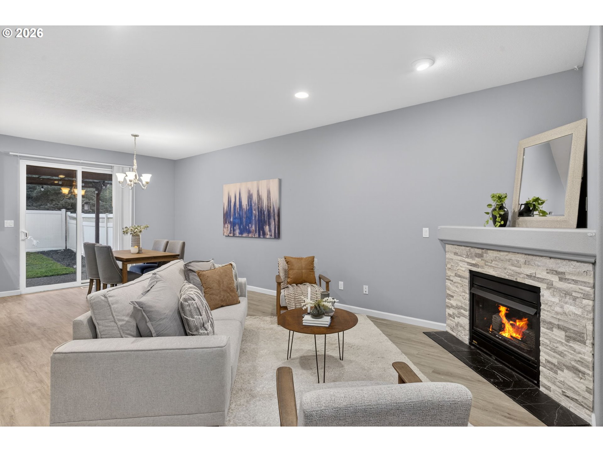 - Rare 3 BD, 2.5 BA end-unit townhouse in West Linn's Hoodview Estates offers one of the largest backyards in the development and a wonderful blend of privacy, elevated design and effortless living! Watch HOME TOUR VIDEO to see how large this lot is! Upon entering, the open floor plan and gas fireplace in the family room create a cozy atmosphere that just feels like home. And the extensive renovation work completed in the recent past still feels fresh and new! No detail was overlooked from luxury flooring to gorgeous granite countertops, custom backsplash tile, stainless steel appliances and more. The subtle feeling of luxury extends into the large primary suite with vaulted ceilings, great natural light, a dazzling ensuite bathroom with dual vanity, large walk-in shower, premium fixtures, surfaces and materials. It truly lives like your own retreat with a private patio that offers lovely territorial views and makes a great place to enjoy your morning coffee or a glass of Pinot as the sun goes down! Step into the back and you'll discover a covered patio and fenced yard that may be the largest one in the community! There's plenty of space for entertaining, kids, pets and more, plus an attached garage with storage and dedicated driveway. Exterior maintenance and improvements include newer roof, paint, gutters and more. Top West Linn schools, summer concerts at Tanner Springs Park, shopping and freeway access are all just a short distance away from this truly special townhouse you'll love to call home!