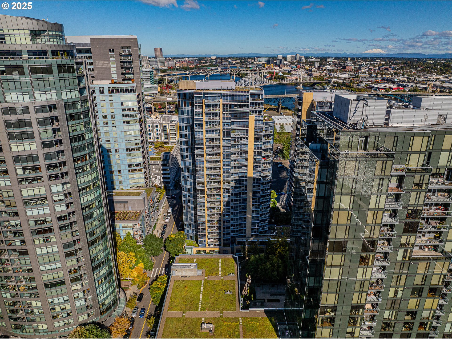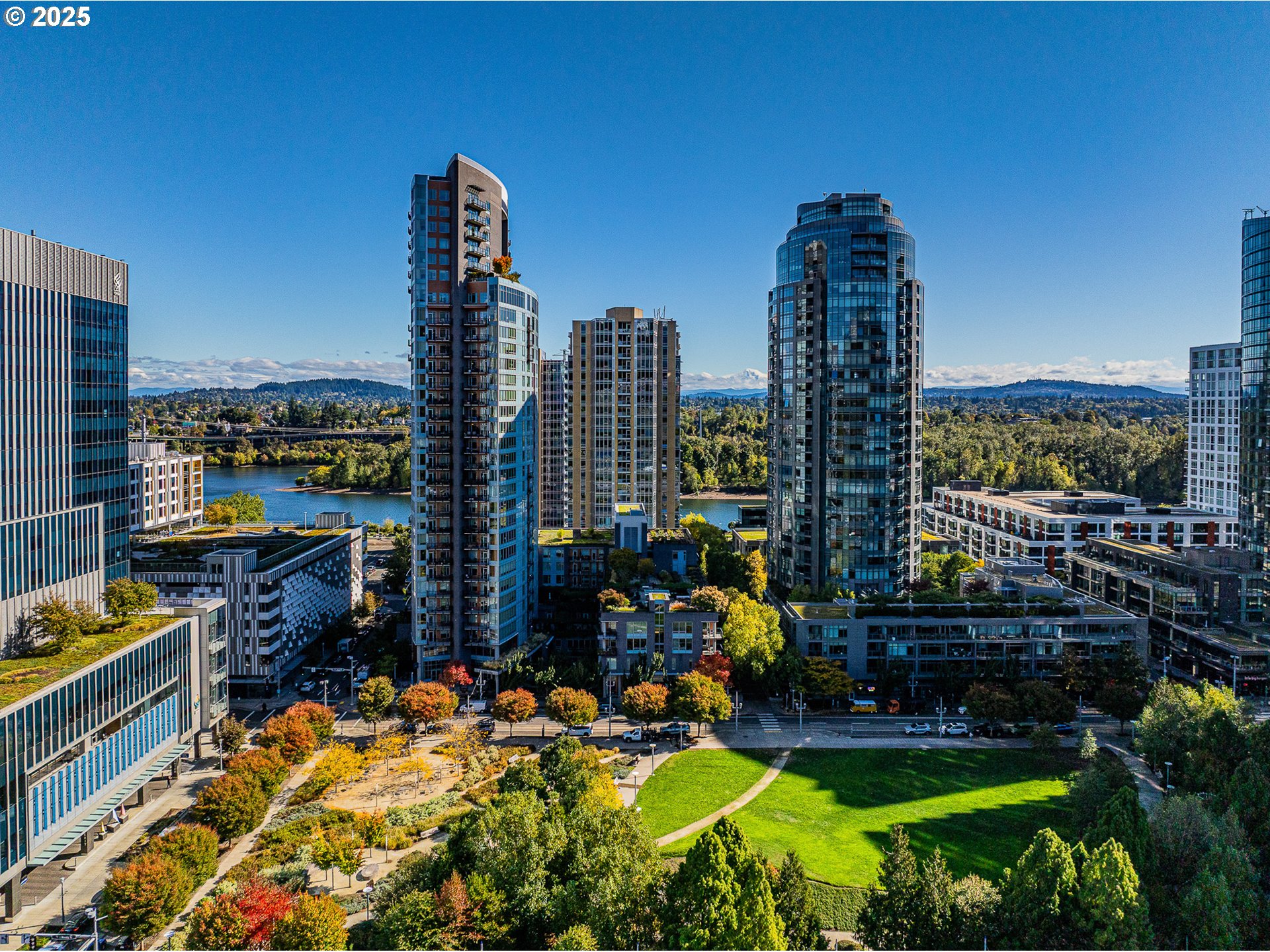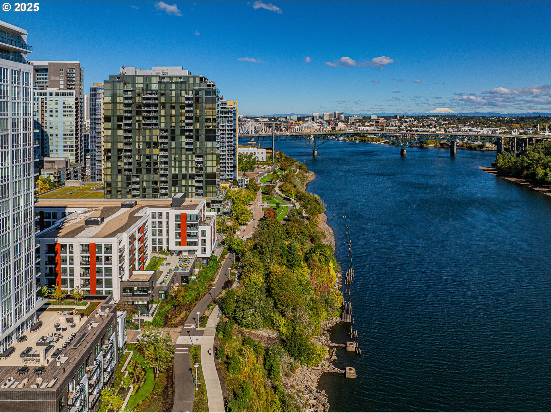 - Experience sophisticated city living from the 23rd floor of The Meriwether, one of Portland’s premier luxury residences. This stunning 2-bedroom, 2-bathroom condominium offers breathtaking views of Mt. Hood, Mt St Helens and the Willamette River through expansive floor-to-ceiling windows, and at night the city lights give the condo a metropolitan vibe. The open-concept living space blends elegance with a high end loft aesthetic, featuring a cozy fireplace, a private covered patio, and a dining area adjacent to a chef’s kitchen complete with a large island, stainless steel appliances, and sleek custom cabinetry. The primary suite provides a serene retreat with a walk-in closet and a luxurious en suite bath, while the second bedroom enjoys access to the patio and equally captivating views. A dedicated laundry room with ample storage adds convenience to this refined home. The Meriwether’s elegant entrance and 24-hour concierge/security service elevate the experience of luxury urban living, complemented by two secure underground parking spaces and additional storage. For visiting friends and family, residents can take advantage of a luxurious guest suite available for rent at a reasonable rate. Perfectly positioned in Portland’s South Waterfront, this exceptional residence is just steps from the streetcar, the aerial tram to OHSU, fine dining and local cafés and pubs.