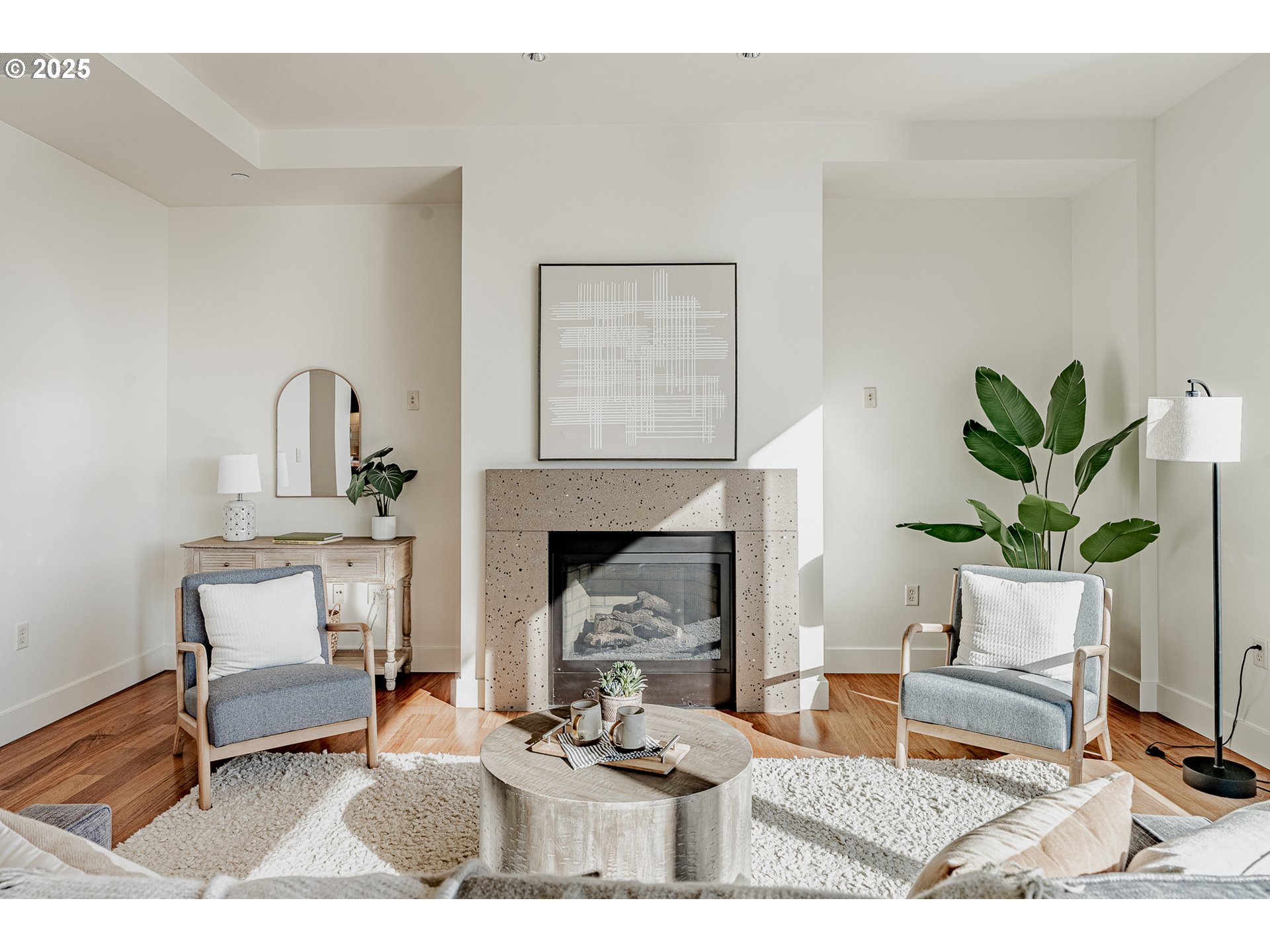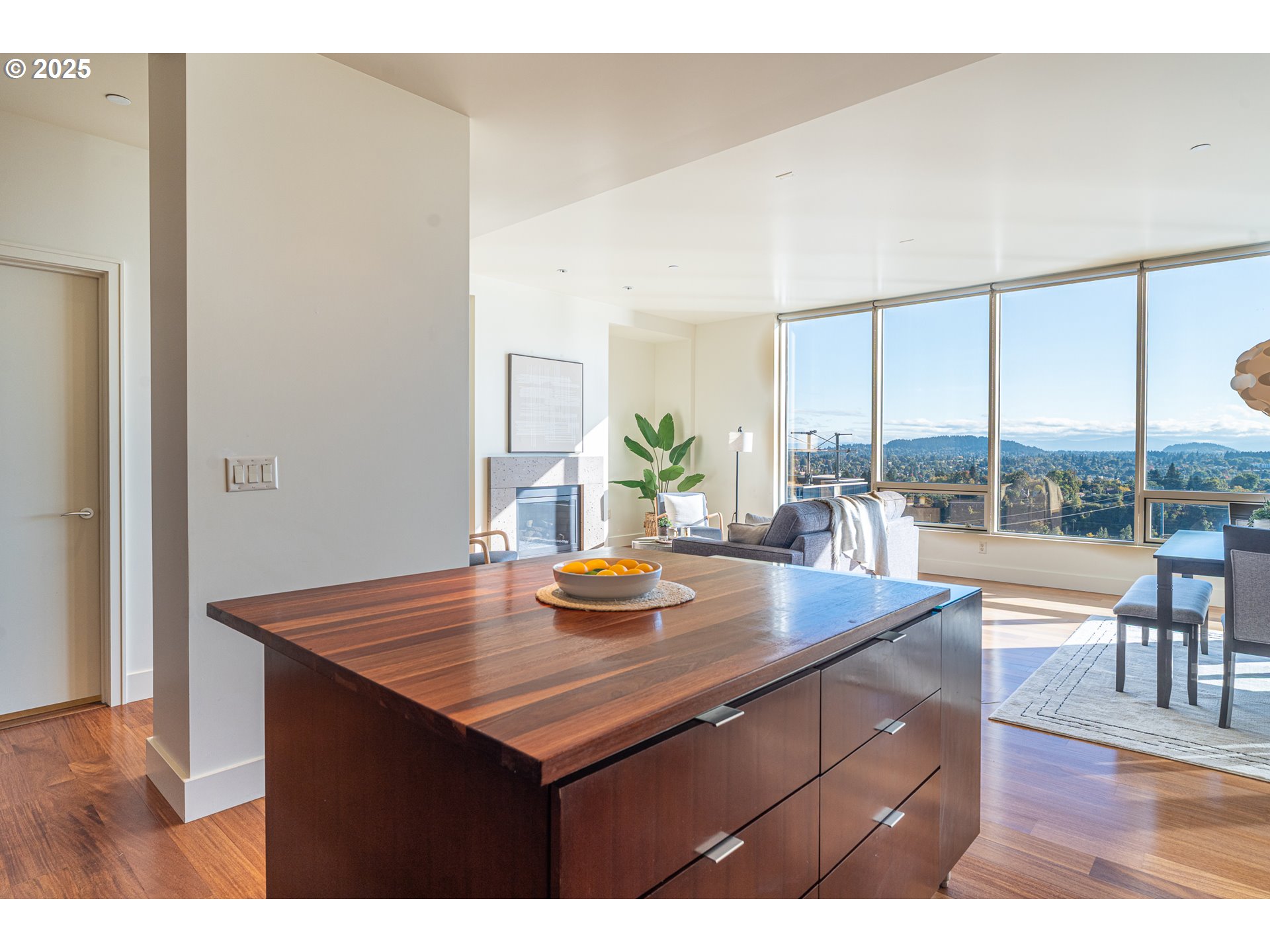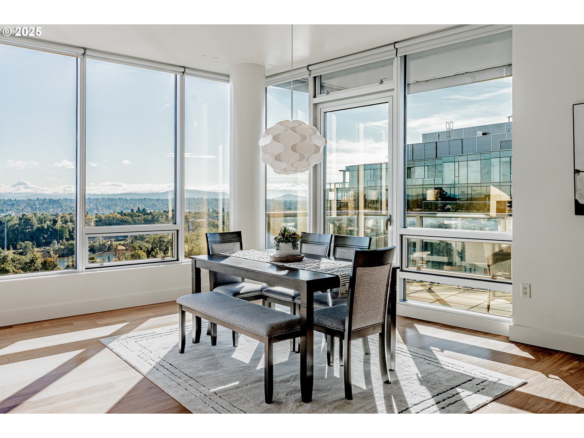 - Experience sophisticated city living from the 23rd floor of The Meriwether, one of Portland’s premier luxury residences. This stunning 2-bedroom, 2-bathroom condominium offers breathtaking views of Mt. Hood, Mt St Helens and the Willamette River through expansive floor-to-ceiling windows, and at night the city lights give the condo a metropolitan vibe. The open-concept living space blends elegance with a high end loft aesthetic, featuring a cozy fireplace, a private covered patio, and a dining area adjacent to a chef’s kitchen complete with a large island, stainless steel appliances, and sleek custom cabinetry. The primary suite provides a serene retreat with a walk-in closet and a luxurious en suite bath, while the second bedroom enjoys access to the patio and equally captivating views. A dedicated laundry room with ample storage adds convenience to this refined home. The Meriwether’s elegant entrance and 24-hour concierge/security service elevate the experience of luxury urban living, complemented by two secure underground parking spaces and additional storage. For visiting friends and family, residents can take advantage of a luxurious guest suite available for rent at a reasonable rate. Perfectly positioned in Portland’s South Waterfront, this exceptional residence is just steps from the streetcar, the aerial tram to OHSU, fine dining and local cafés and pubs.
