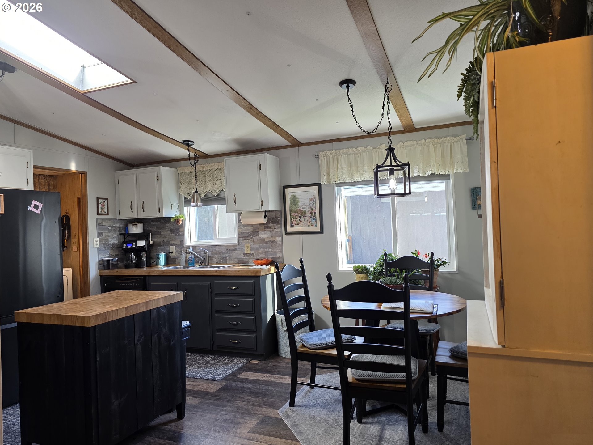 - Welcome home to this beautifully updated and truly charming property filled with warmth and style. From the moment you step inside, you’ll appreciate the inviting living area featuring a stunning shiplap décor wall and a cozy electric fireplace that adds both ambiance and comforting warmth—perfect for relaxing evenings at home. The light and bright kitchen is a standout, complete with a skylight that fills the space with natural light, newer Edison lighting, and appliances that are just three years old. Whether you're cooking, entertaining, or enjoying your morning coffee, this kitchen offers both function and charm. The spacious primary suite provides a private retreat with a walk-in closet and an en suite bath featuring a walk-in shower, large vanity, and its own skylight for added natural light. Generous additional bedrooms offer flexibility for guests, hobbies, or a home office. Throughout the home, you’ll find new luxury plank flooring, updated vinyl windows, and thoughtful upgrades that make this property truly move-in ready. Major systems have been recently updated as well, including a furnace and heat pump that are only two years old. Additional highlights include a large utility room with washer and dryer included, a storage/tool-time shed for extra space, and a low-maintenance lot designed for easy living. This home perfectly blends cozy comfort with modern updates—don’t miss your opportunity to make it yours!