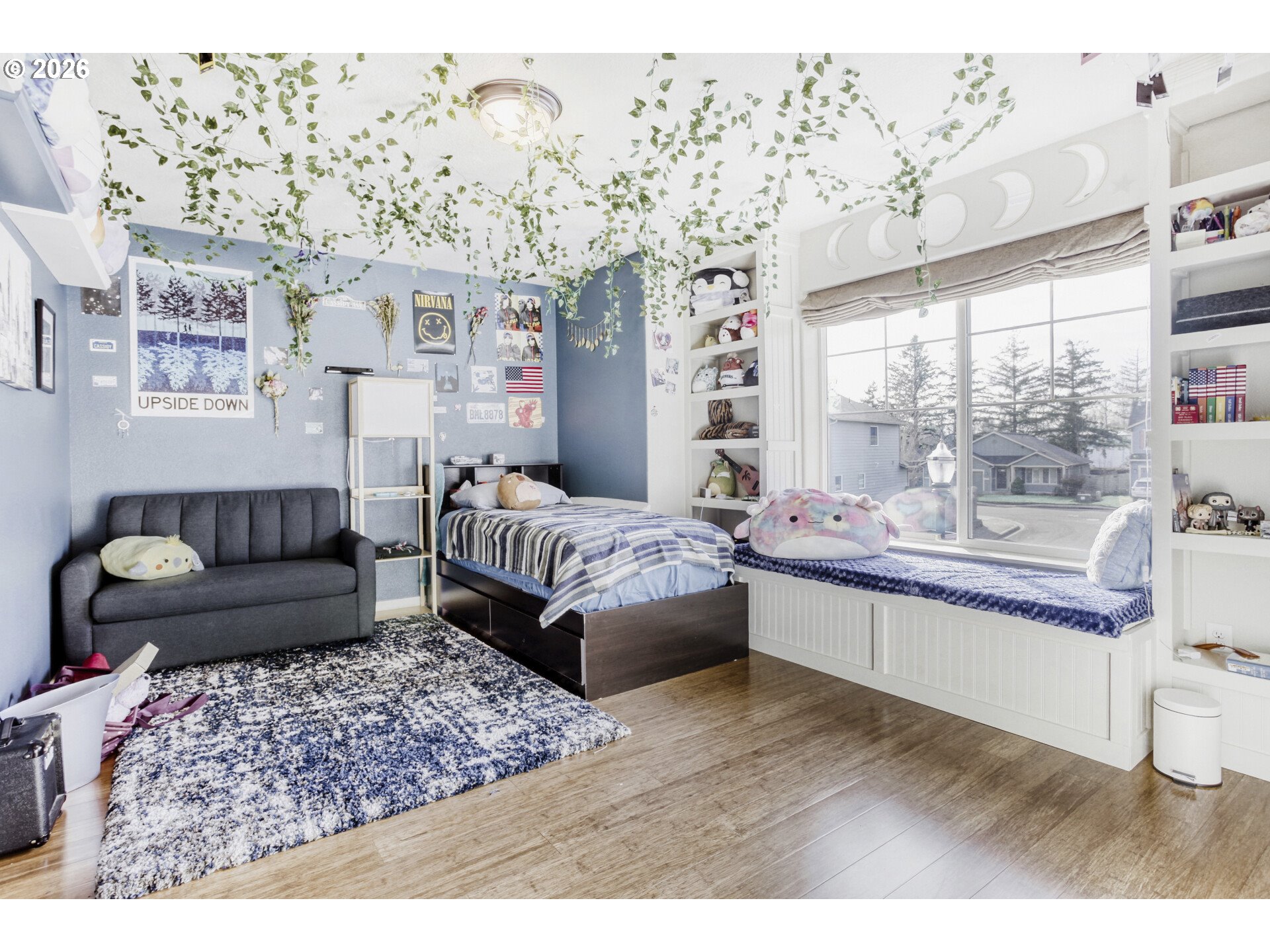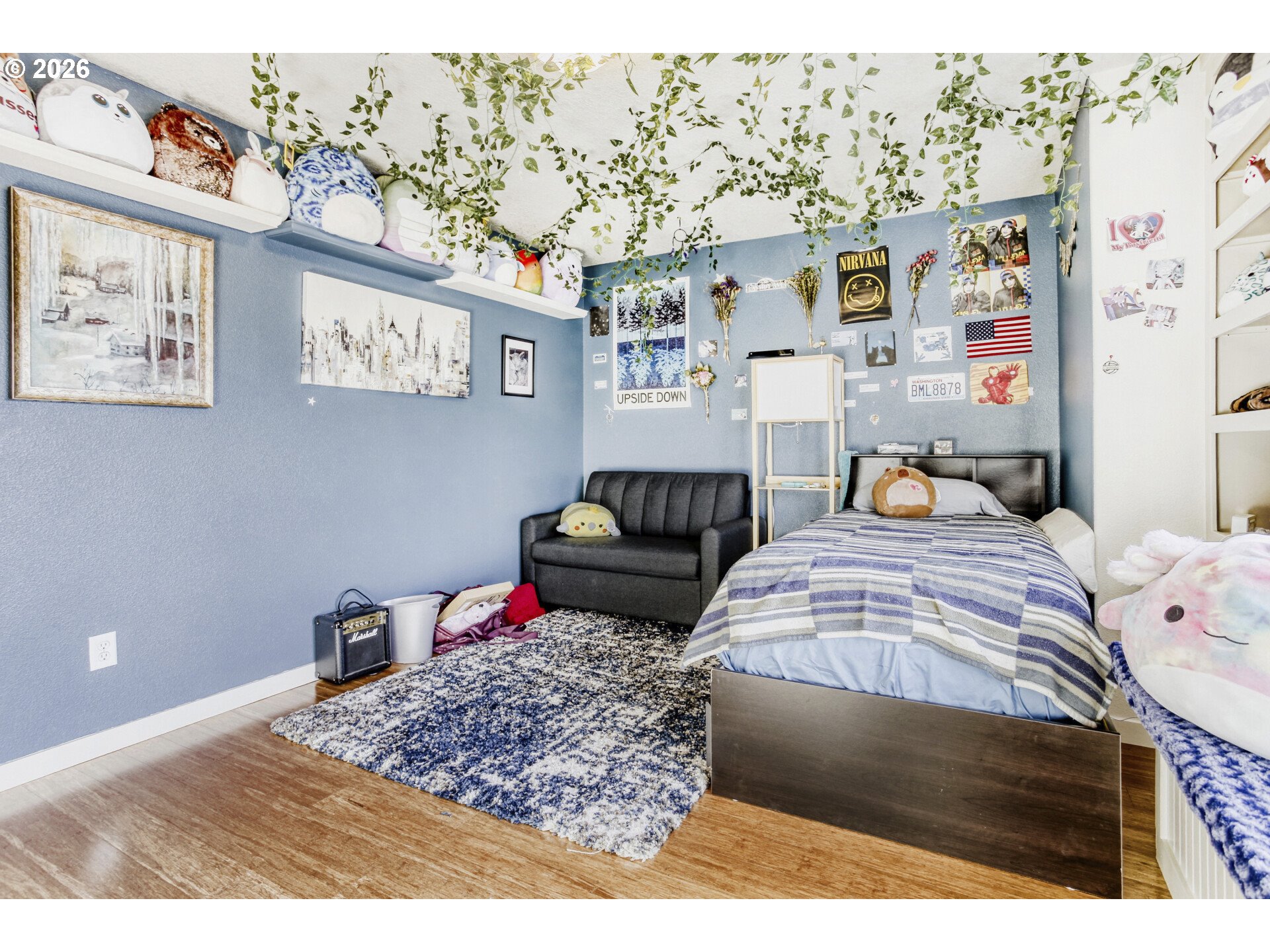 - Welcome to this pristine four-bedroom home in the Village on the Glen Neighborhood! Get your relax on or work done in spacious Den/Office on the main. You will love the large kitchen with granite island and stainless appliances! This pet friendly home has scratch resistant bamboo floors, and pet doors for easy living. The gorgeous wood floors are throughout this spacious home! Open concept with large living room and gas fireplace. Upstairs you’ll find a large family room with adjacent laundry room. The first bedroom is large with bookshelves and a cozy sitting area. The primary bedroom has walk-in closet, and a fully remodeled bath with quartz counters, luxury vinyl plank floor with large soak tub and tile shower! Enjoy the safest water with a whole house Watermark water filter system! Never run out of hot water with a tankless hot water heater. Gas forced air and AC. Out back is a great place to unwind, and enjoy the covered patio ideal for a grill area with remote control retractable awning, fully fenced yard which backs a greenbelt, and a large paver stone area that’s ideal for a firepit! The safe cul-de-sac is fun for all. Walk to the community center with pool, or explore the 7 acres of trails in the nature preserve. Low $35 HOA. Call to see this beautiful home today!