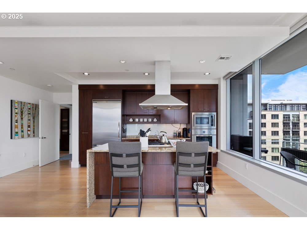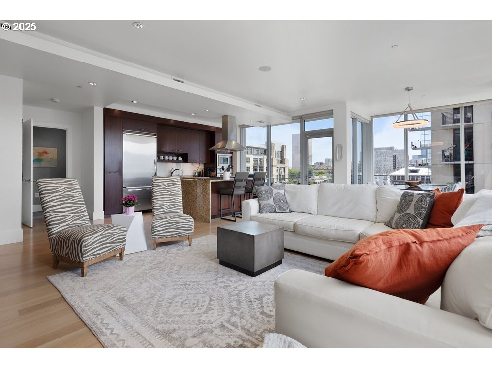 - Experience elevated city living in this exceptional southwest corner residence at The Metropolitan—one of the Pearl District’s most prestigious addresses. This meticulously maintained single-level home features designer upgrades throughout, from gleaming hardwood floors to a chef-inspired kitchen complete with granite island and premium Viking appliances. The expansive living area is bathed in natural light from large picture windows framing captivating city and West Hills views. Cozy up by the gas fireplace or step onto the private balcony with a built-in gas hookup—perfect for entertaining. Additional highlights include: Two deeded parking spaces, Private storage unit, Spacious bedrooms and modern finishes, Luxe primary suite with spa-inspired bath. Enjoy full-service amenities that rival a 5-star hotel: 24-hour concierge, fitness center, wine lockers, conference room, guest suite access, and elegant outdoor spaces featuring a fireplace lounge and covered grilling area. Located just steps from Tanner Springs Park, boutique shopping, and acclaimed dining, this is urban sophistication at its finest. Walk score of 98, Bike Score of 99.