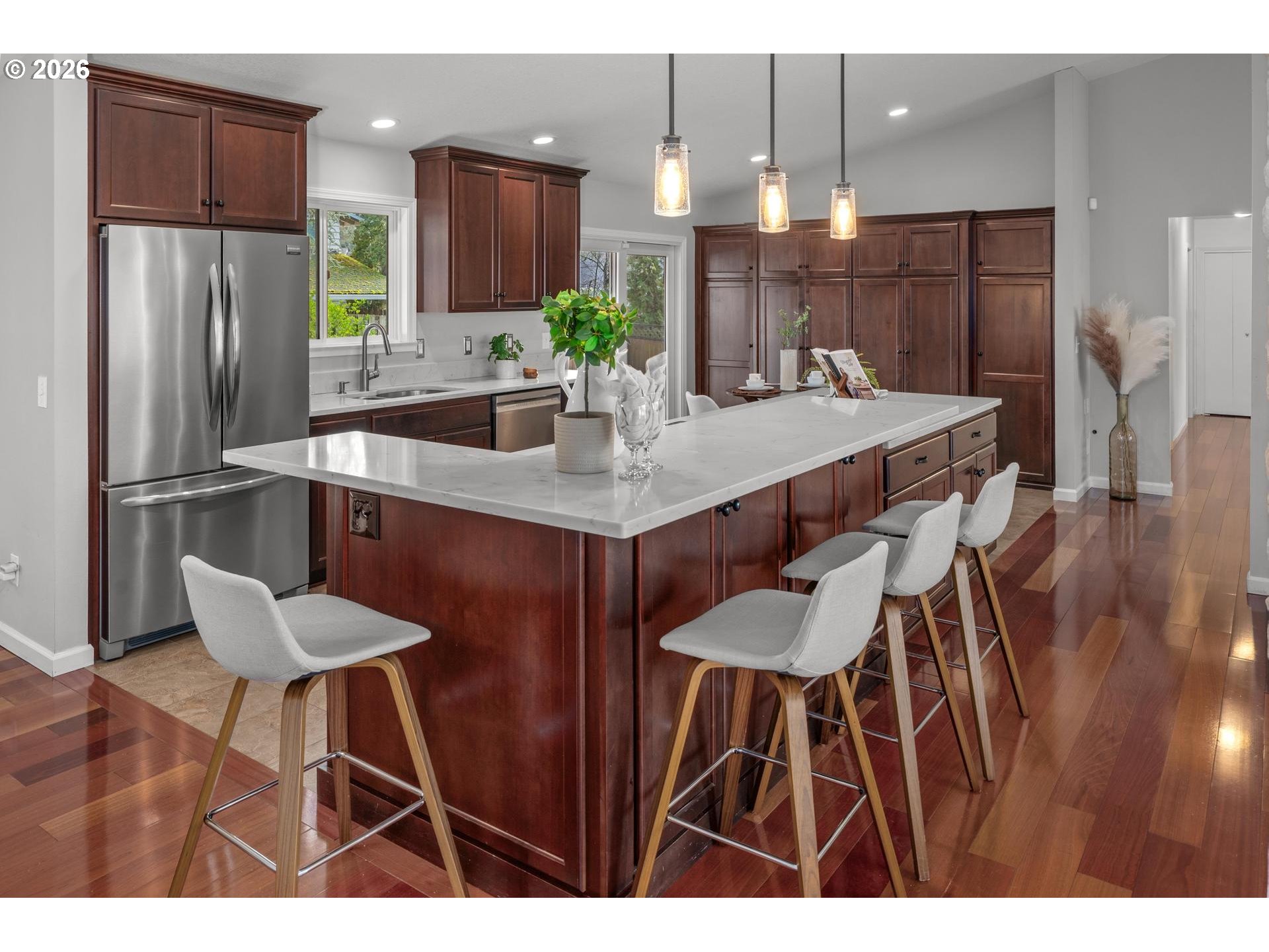 - Spacious home in coveted Cedar Hills! 4 bedroom, 3 bath split level home built in 1965. Open floorplan with extensive hardwood floors on the main level. Vaulted Living Room with fireplace and filled with sunshine with West windows. Remodeled custom kitchen with stainless steel appliances, quartz countertops and huge cook island with eat bar. Abundant storage plus pantry. Eat nook plus formal dining area. Bonus area off kitchen has full wall of built-in cabinetry and would be great for a cozy sitting area, home office, television area, etc. Huge hall bathroom is completely remodeled. Primary Suite and 2 additional bedrooms on main level. 4th Bedroom downstairs is non-conforming. Family room downstairs is light-filled with fireplace and room for family and movie nights. Utility Room with sink and storage cabinetry. Oversized garage w/ storage room. Spacious corner lot is nearly 1/3 acre. Fenced yard w/ covered patio and mature landscaping. Gas heat and central air conditioning.Convenient location with easy access to Hwy 217 and Sunset Hwy. Open House Sat 1/17 & Sun 1/18 from 1-4pm