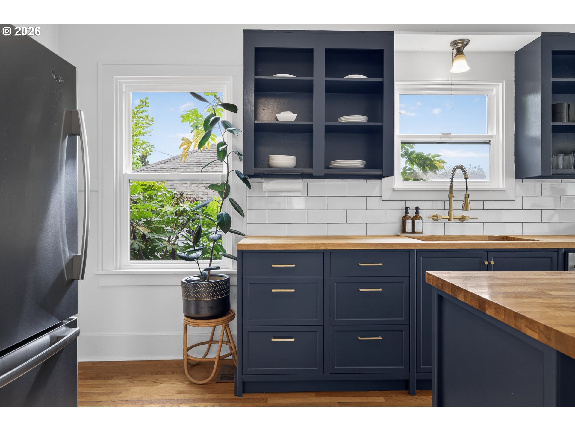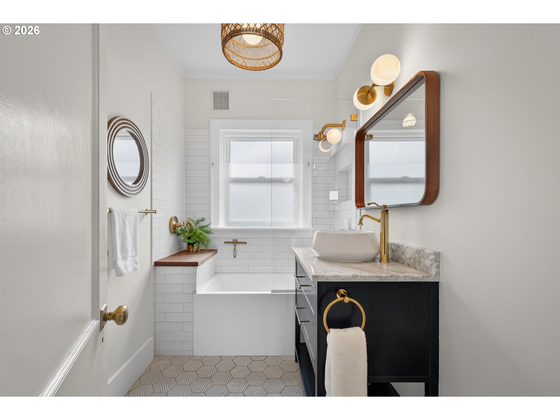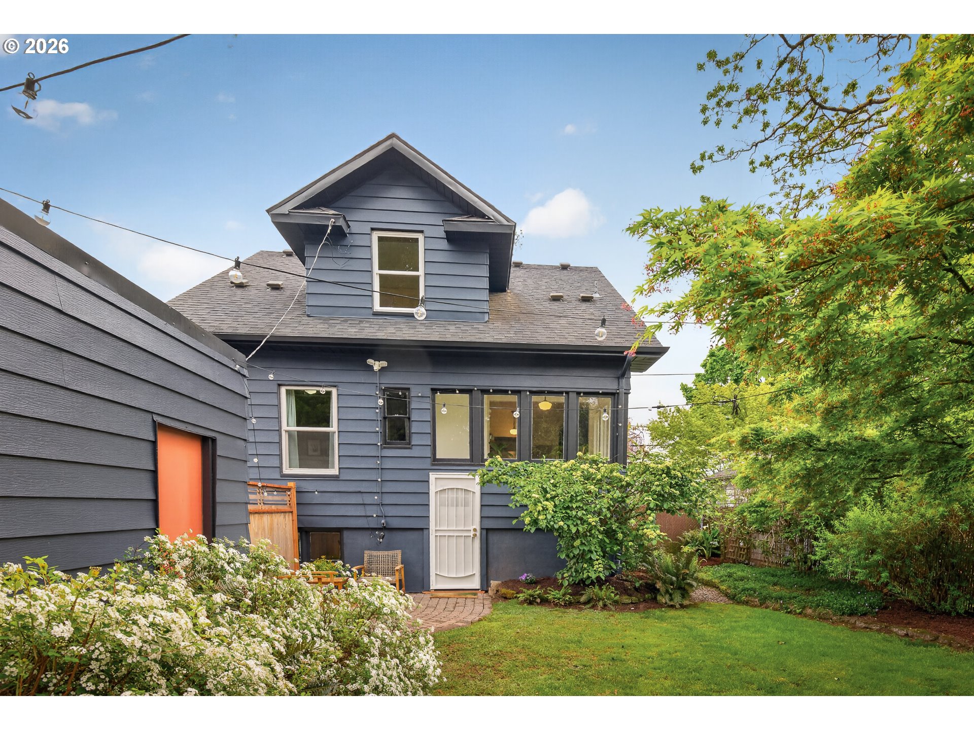 - This boho chic Craftsman wins the day by setting a moody vibe, oozing authentic character and maximizing the natural light. With fresh exterior paint and a welcoming front porch, this home invites you in. The wood floors, original built-ins, fresh interior paint in several rooms, and high ceilings create an airy, uplifting feel. The living and dining spaces are both cozy-perfect for hosting friends or curling up by the fire on a quiet evening. The updated kitchen showcases new cabinetry, new butcher-block countertops, and a new stove/oven. From the kitchen, a wall of windows frames views of the lush, landscaped backyard. The main floor bedroom adds everyday flexibility, while the stunningly updated bathroom, anchored by a deep soaking tub, offers a personal retreat you'll look forward to every evening. Two well sized bedrooms await you upstairs. The spacious primary bedroom offers extensive storage and gorgeous natural light. The full basement provides additional storage and opportunity. Step outside the back door and discover your own private oasis with a stunning Japanese maple tree that anchors the space, creating a serene setting for relaxing or entertaining. Chill out in the hammock while reading a book, sip your morning coffee in peace, or gather with friends for an evening of al fresco dining on the patio. The detached two car garage adds convenience and versatility, offering room for parking, storage, or future possibilities. With a walk score of 75, this neighborhood has everything whether you're strolling to a morning coffee at Juniors/Guilder, Bison, or Denizens, or hopping on the Mason Street Bikeway for a quick ride to Beaumont or beyond. Wind down with happy hour at the Upright Beer Station or Fire on the Mountain, graze through the nearby food cart pod, or explore the vibrant mix of cafes, shops, and eateries along Fremont and Sandy. And when the urge to escape hits, the airport and the Columbia River Gorge are easily accessible. [Home Energy Score = 4. HES Report at https://rpt.greenbuildingregistry.com/hes/OR10183760]