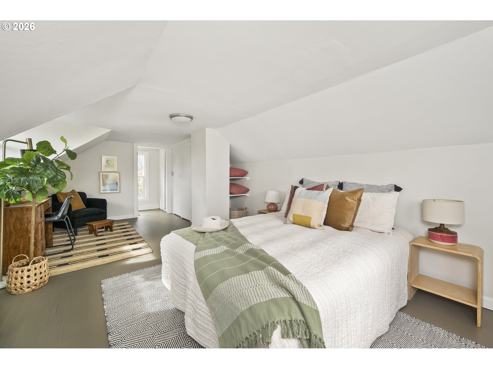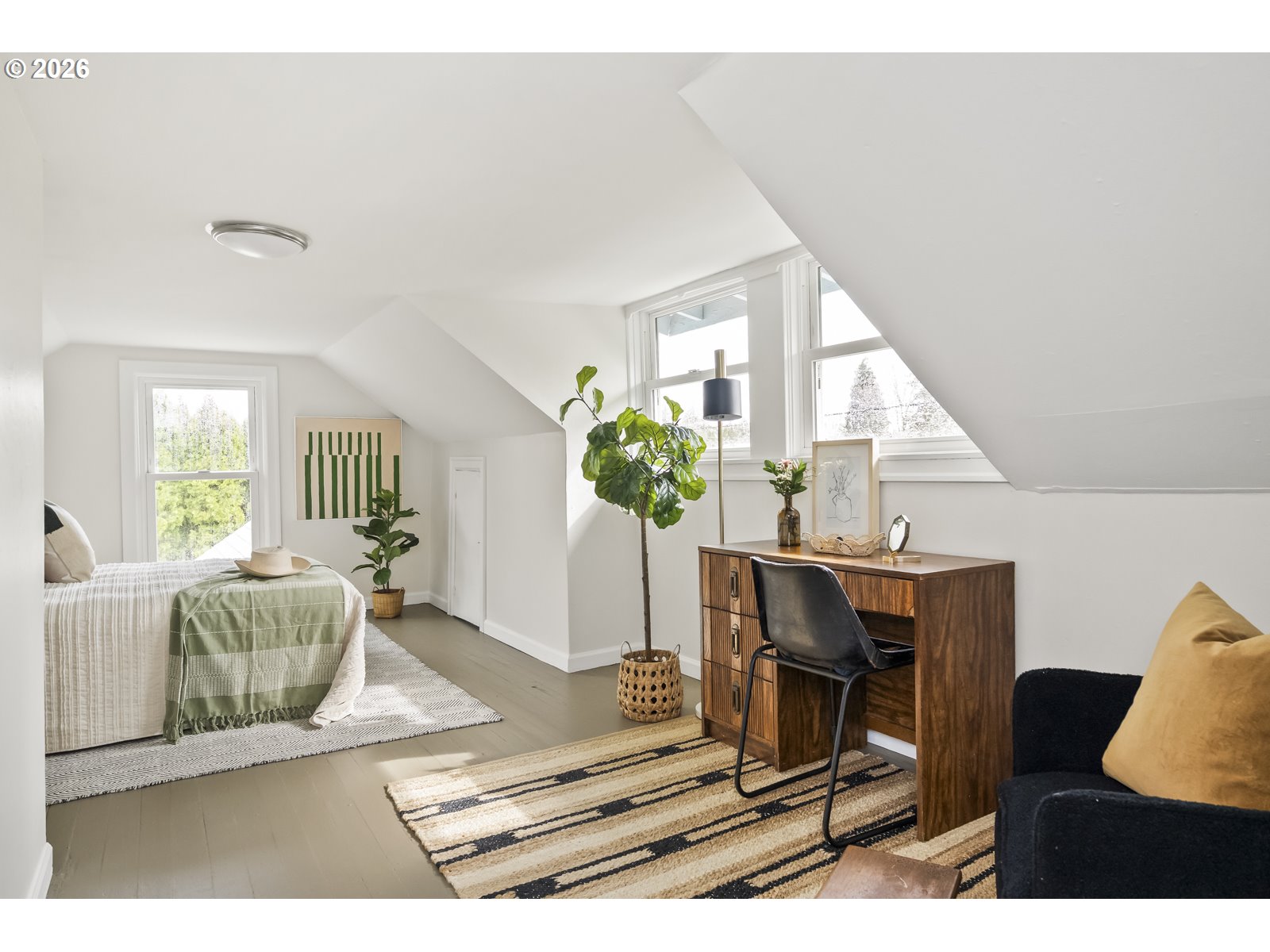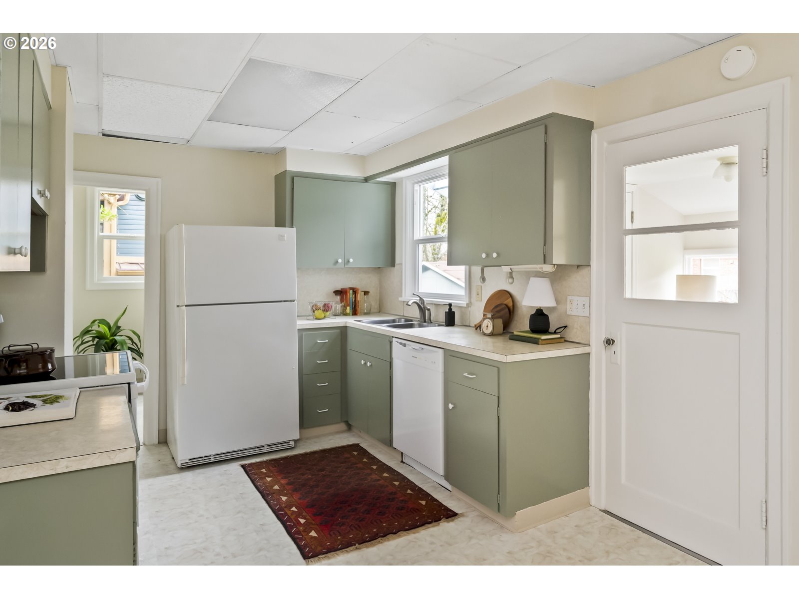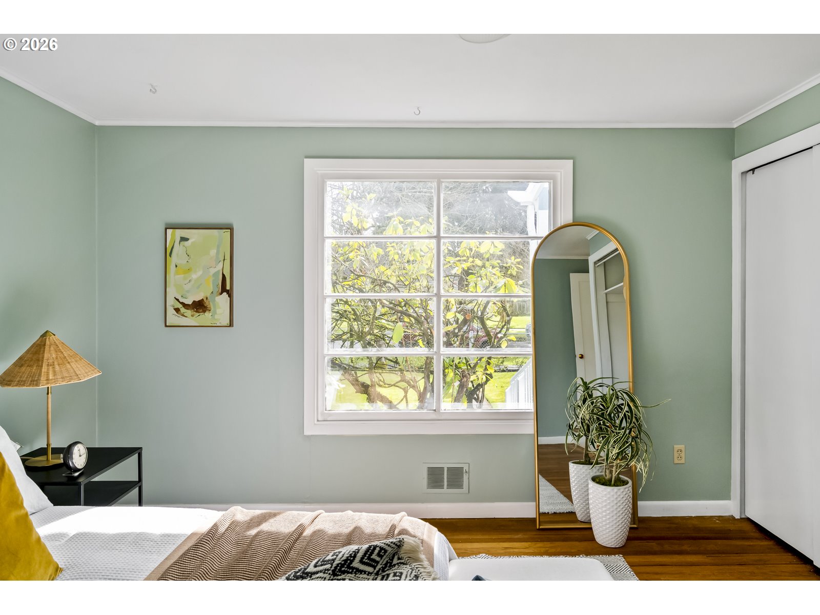- Welcome home to this University Park gem! The sunny front porch invites you into the super darling living room with built-in bookshelves and a large picture window. Just beyond is the open kitchen and adjacent dining room with a built-in buffet, -- ideal for everyday cooking and easy entertaining. Also on the main floor you'll find a large bedroom with double closets, and a second bedroom overlooking the backyard that works well as a nursery or office, plus a fabulous mud room and full bathroom. Upstairs, you'll discover a third, light-filled bedroom with more built-ins and great natural light throughout. Recent updates include supplemental insulation (2015), select new windows (2021), a new roof and gutters (2022), updated bathroom plumbing and shower surround, and new kitchen appliances — dishwasher, stove, and garbage disposal. Fresh interior and exterior paint and new awnings complete the updates. The basement offers ample shelving for your storage needs, a workshop space, or future equity growth. Outside, mature apple and pear trees put fresh, autumn pies at your finger tips! The oversized, level and fully fenced yard includes private parking off the back alley — and solid potential for a future ADU. Four blocks to New Seasons grocery or McKenna Park and only three to Portsmouth Park! OPEN SAT 4/4 FROM 11AM-1PM