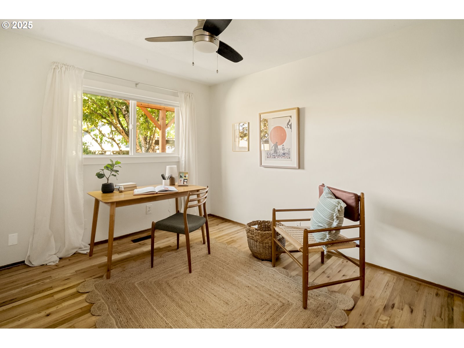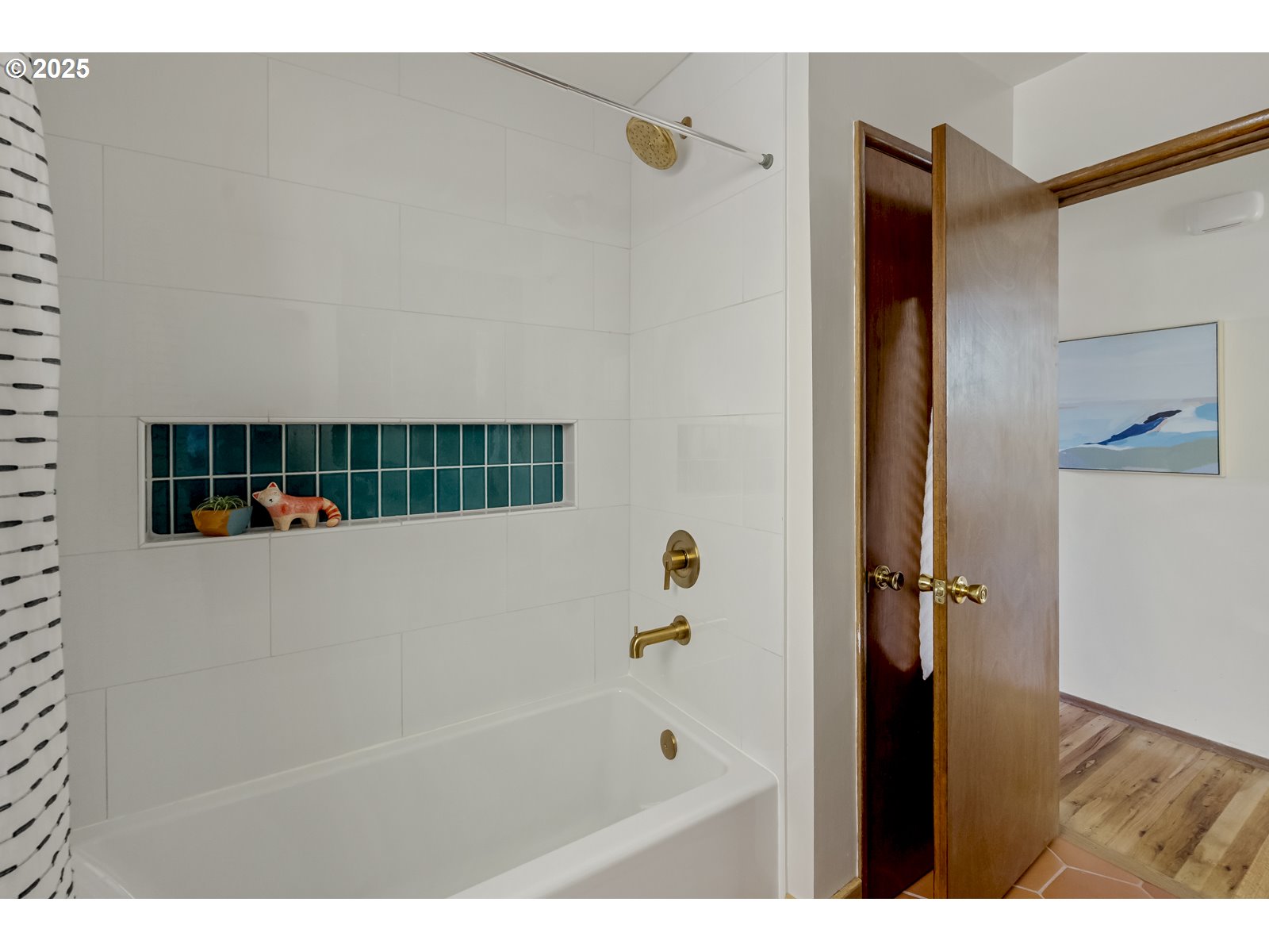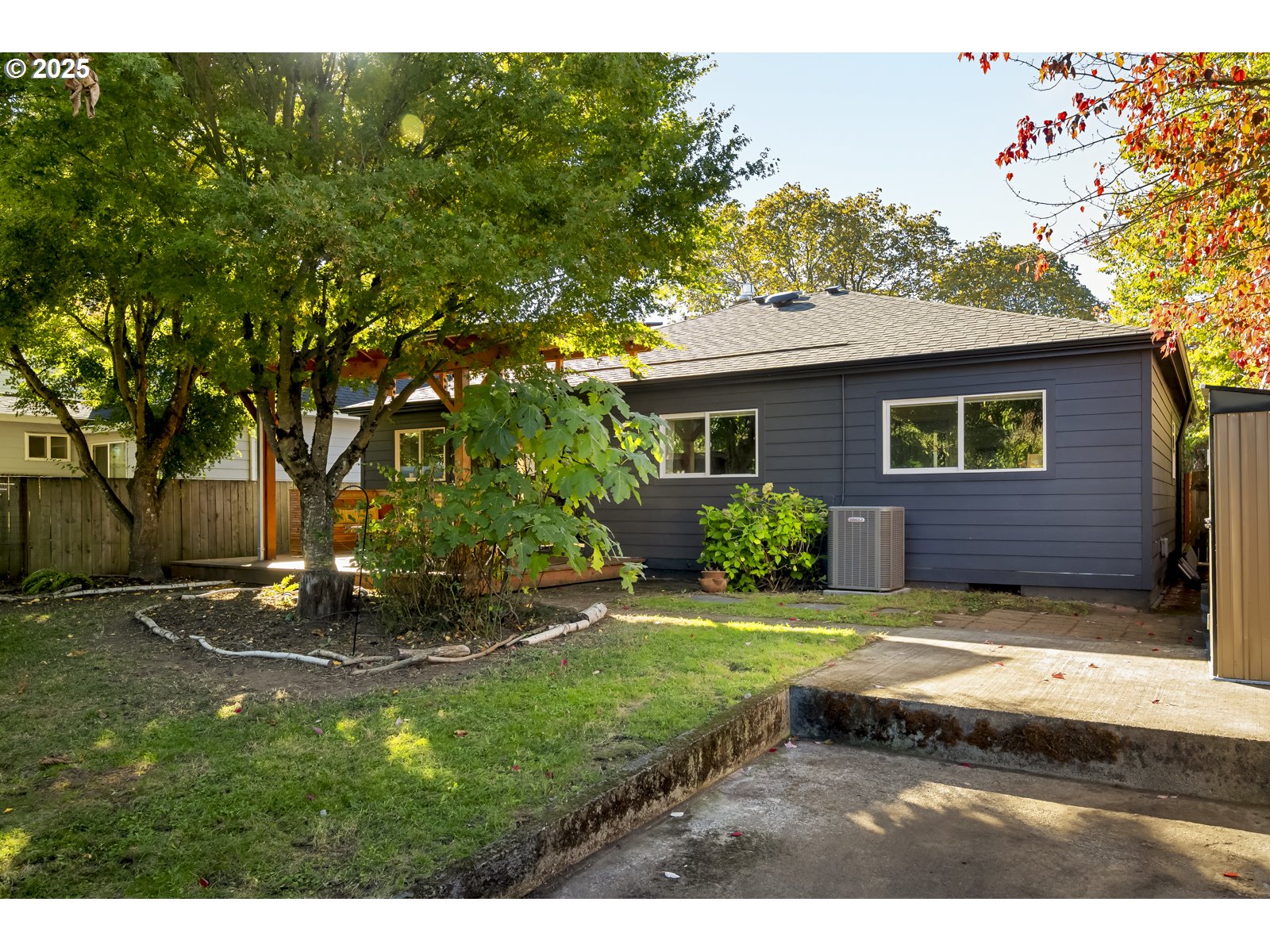 - Exceptionally well-updated midcentury ranch with lots of really special details. What sets this home apart is the spacious, sunny kitchen and dining room. They are combined in one large room with a big slider out to the covered back deck. There’s an island and lots of room to hang out and cook and relax. The previous owners remodeled the kitchen and bathroom and the choices they made are *chefs kiss*. The tile in the kitchen mimics the shape of the original brick on the fireplace. You have to see the bathroom to believe it. They made so many updates! They added solar panels, replaced the roof and gutters, re-sided the house with wood, replaced the furnace, AC (yes there is central air!), water heater, and windows, all since 2021. The house sits on an alley, and has a parking pad in the back, so with the garage in front that means double parking! One of the best parts is the covered back deck and bench seating. It makes the house feel seamlessly connected to the backyard. There’s a chicken coop back there, irrigated garden beds in the front, and the yard is Portland Backyard Habitat Certified. The power from the solar panels cover around 85% of your electricity bill, and give this home a home energy score 8! Plans were drawn up for an addition with a primary bedroom and bathroom, and the plans come with the house. New Seasons, Chill N Fill, Columbia Park, University Park are all close by. Please don’t be scared by front yard ghosts: they are expecting you. [Home Energy Score = 8. HES Report at https://rpt.greenbuildingregistry.com/hes/OR10152606]