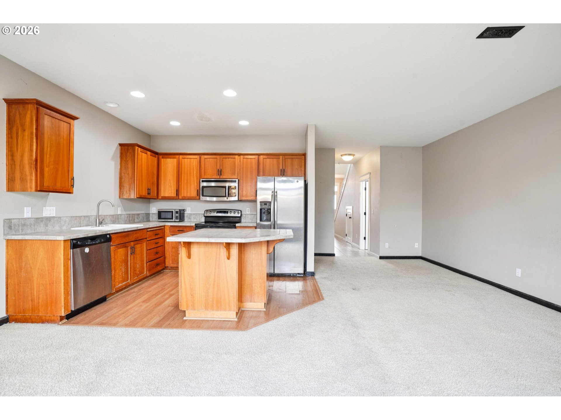 - Move-in ready townhome in a quiet Beaverton community with low HOA dues of just $50/month. The open-concept main level offers a comfortable layout with a gas fireplace, great natural light and a sliding glass door that opens to a private, low-maintenance backyard. Upstairs features three bedrooms, including a spacious primary suite with vaulted ceilings, a walk-in closet, and an ensuite bathroom. Two additional bedrooms and a full hall bath provide flexibility for guests, a home office or additional living space. Additional highlights include air conditioning (new in 2024), a 1-car attached garage with extra storage and lots of storage throughout. New water heater in 2023. Conveniently located near schools, parks, shopping, bus lines, and major commuting routes.