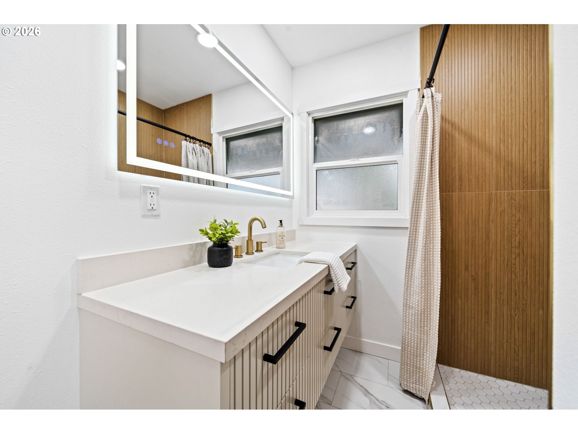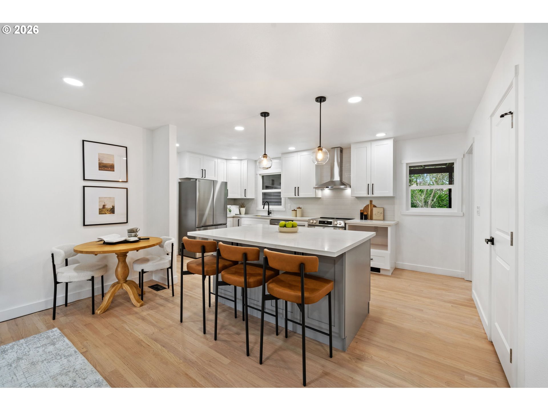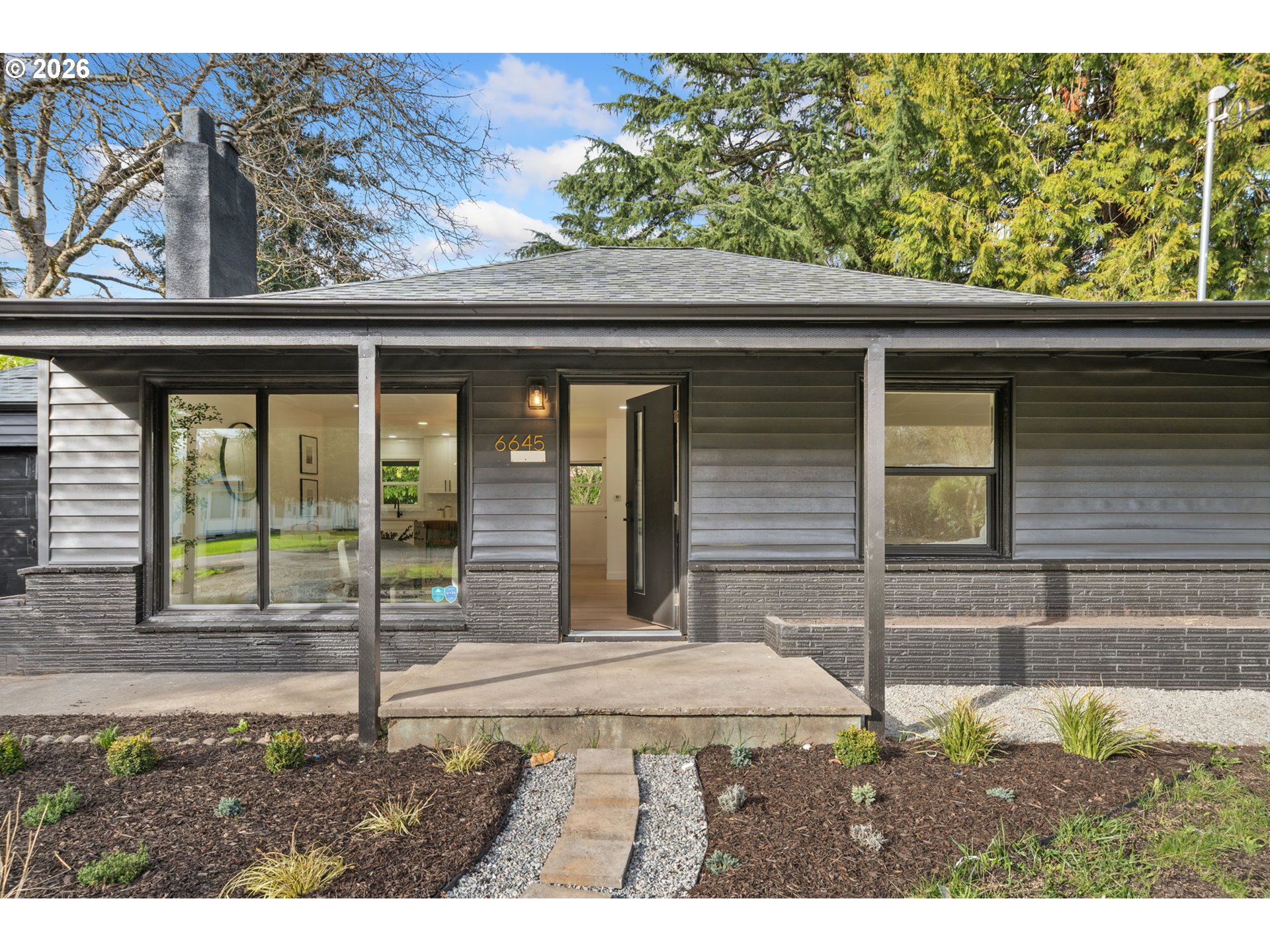 - Located in the vibrant Alberta Arts area of Portland, this beautifully renovated mid century ranch offers the perfect blend of modern design, timeless character, and exceptional outdoor space. Fully reimagined from top to bottom, this stunning 4-bedroom, 2-bath residence showcases quality craftsmanship and stylish finishes throughout. Step inside to discover gorgeous refinished hardwood floors, abundant natural light, and a thoughtfully designed layout ideal for both everyday living and entertaining.The brand-new designer kitchen features custom cabinetry, elegant quartz countertops, premium fixtures, and a striking tile backsplash that creates a clean, modern aesthetic. Both bathrooms have been completely updated with beautiful tile work and contemporary finishes, including a spa-inspired shower that adds a luxurious touch.The main level offers comfortable living spaces along with spacious bedrooms, while the fully finished lower level provides incredible flexibility, featuring an additional non-conforming (fifth bedroom), perfect for guests, a home office, fitness room, or media space. This versatile lower level expands the living potential and creates opportunities for multi-generational living or work-from-home setups.Set on an expansive nearly one-third acre lot, the property provides a rare sense of privacy and space while still being close to everything that makes this neighborhood so desirable. The large backyard offers endless possibilities for entertaining, gardening, outdoor living, or simply enjoying a peaceful retreat surrounded by mature trees.Ideally located near the restaurants, shops, parks, and vibrant culture of the Alberta Arts District, this move-in-ready home combines modern upgrades, classic character, and an oversized lot—an increasingly rare find in Northeast Portland.A truly exceptional opportunity to own a fully renovated home with flexible living space on one of Northeast Portland’s most generous residential lots.