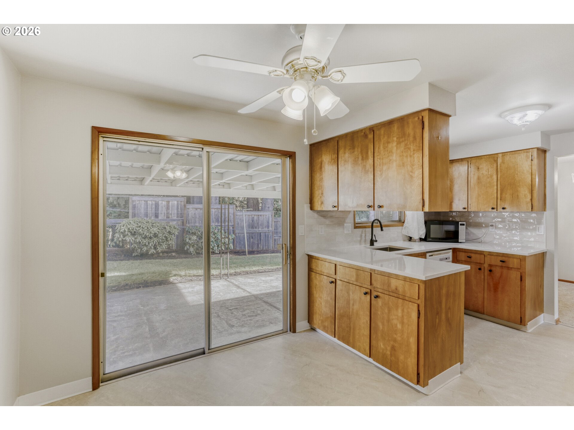 - Newly updated one level Mid-Century home ready to move in! Views of wooded area from behind for pricacy! New quartz kitchen counter tops with full subway tile backsplash, and new Luxury vinyl plank floors. Great nook area off the kitchen with sliding glass door leading a 12x19 covered patio! Huge living room with new carpet and has cozy brick fireplace with gas insert that's tempature controlled by remote and has battery back up so it will provide radiant heat during power outage. Mini split Heatpump. Formal dining room. All 3 bedrooms have newly re-finished hardwood floors. Primary suite has a bathroom with walk-in shower. Laundry room with deep sink, Washer & Dryer included. Nice size finished and heated garage! Sprinkler system. Level lot over 10,000 SF with garden areas and mature landscaping. 2 story outbuilding that is 12x9 on each level with additional attached covered storage area. Long paved parking area for smaller RV's, toys or additional veihcles! You will love it! Click on the 3D tour! Please do not park on paved roadway :-)