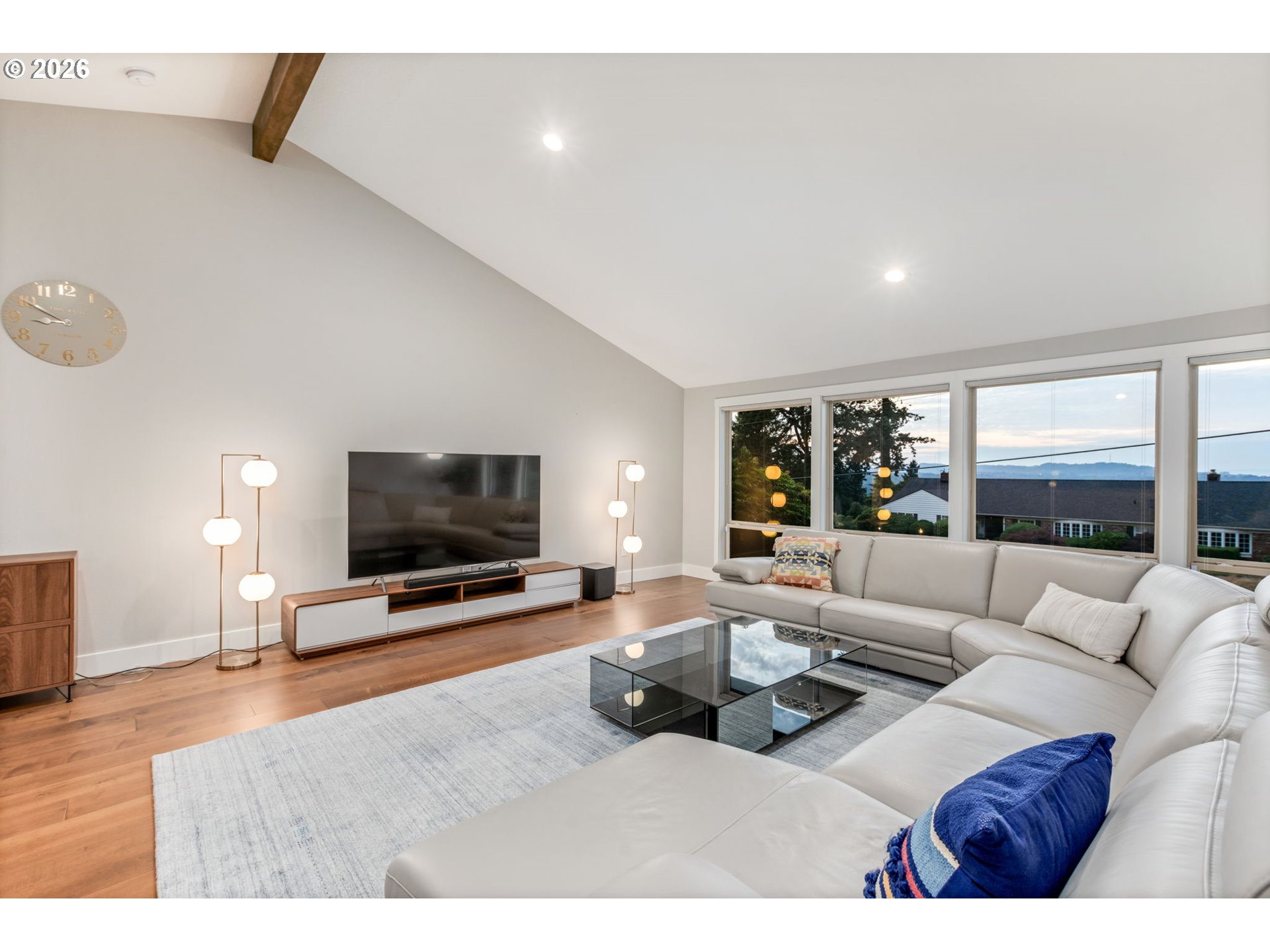 - Perched on a private hillside with sweeping views of Mt. St. Helens, the Willamette River, and the surrounding landscape, this beautifully updated home offers a rare blend of tranquility and modern luxury. Expansive windows flood the interior with natural light and frame the ever-changing scenery beyond, creating a peaceful connection to the outdoors. The open-concept living area showcases vaulted ceilings, wide-plank hardwood floors, and effortless flow throughout. Anchoring the space is a chef’s dream kitchen appointed with timeless quartz countertops, an oversized island, top of the line stainless steel appliances, and custom cabinetry that combines beauty with function. Designed for both everyday ease and elegant entertaining, it’s a space where form meets finesse. Woodburning fireplaces, which add ambiance and warmth to both levels of the home, are ideal for cozy evenings. Spa-inspired bathrooms feature upscale finishes and designer tile work, offering a refined retreat within. Solar panels and energy efficient upgrades bring sustainable comfort, while the manicured lawn and mature landscaping provide a serene outdoor setting. Fruit trees including apple and cherry trees provide great enjoyment. An oversized driveway and an exceptional detached garage and workshop offer flexibility whether you need space for a boat, RV, or a curated vehicle collection. Tucked into a quiet Skylands Neighborhood with top rated schools, just minutes from city amenities, this hillside sanctuary offers privacy, panoramic views, and luxury living.