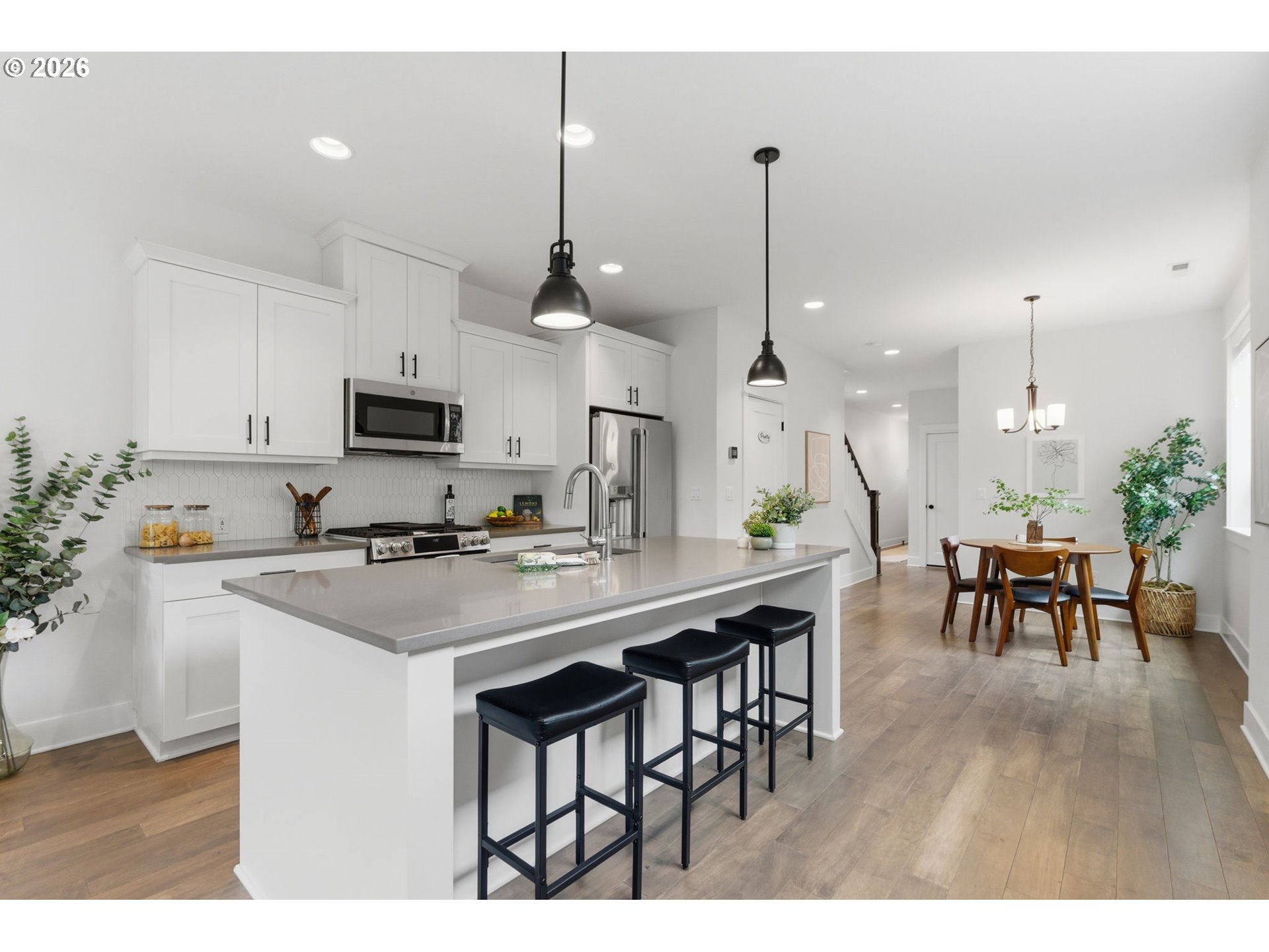 - Beautifully appointed home designed for everyday comfort and easy living. With elevated charm and undeniable curb appeal, this 2020 Renaissance Built home sits on a treelined street, features walls of windows, curated finishes, and spaces that flow effortlessly from one good moment to the next. The airy main level is all about natural light, laminate floors and well-designed spaces creating a central hub for entertaining or relaxing at home. The contemporary kitchen boasts stainless steel appliances, gas range, quartz countertops, a stylish full height tile backsplash, walk in pantry, and a welcoming pull up a chair island. Upstairs, the expansive primary ensuite feels like a private sanctuary with a double sink vanity, oversized tiled step in shower, separate water closet, and a large walk-in closet. Additional well-proportioned bedrooms are located on the opposite side of the home for privacy and flexibility. Soaring ceilings and large windows invite natural light throughout, while practical touches like an upstairs laundry room, smart storage solutions to tuck away everyday essentials, and an attached garage make daily life easier. Central AC and gas fireplace keep things cozy and comfortable in every season. Outside, the good vibes continue. The fully fenced backyard with covered back porch, and plumbed for gas, is made for evening hangs and weekend lounging. The auto irrigated, low maintenance landscaping is ready for your garden touches without demanding all your free time. With zero through-traffic and just minutes away from Lombard’s buzzy mix of restaurants, cafés, and amenities, plus straightforward access to St. Johns, Cathedral Park, Portsmouth, and Kenton, this location has the best of all worlds. All of this is set in a quiet pocket of University Park that feels pleasantly suburban yet sits within minutes of city amenities. Enjoy close proximity to the Willamette bluff, University of Portland campus multiple parks and upcoming NoPo Aquatic Center! [Home Energy Score = 9. HES Report at https://rpt.greenbuildingregistry.com/hes/OR10202575]