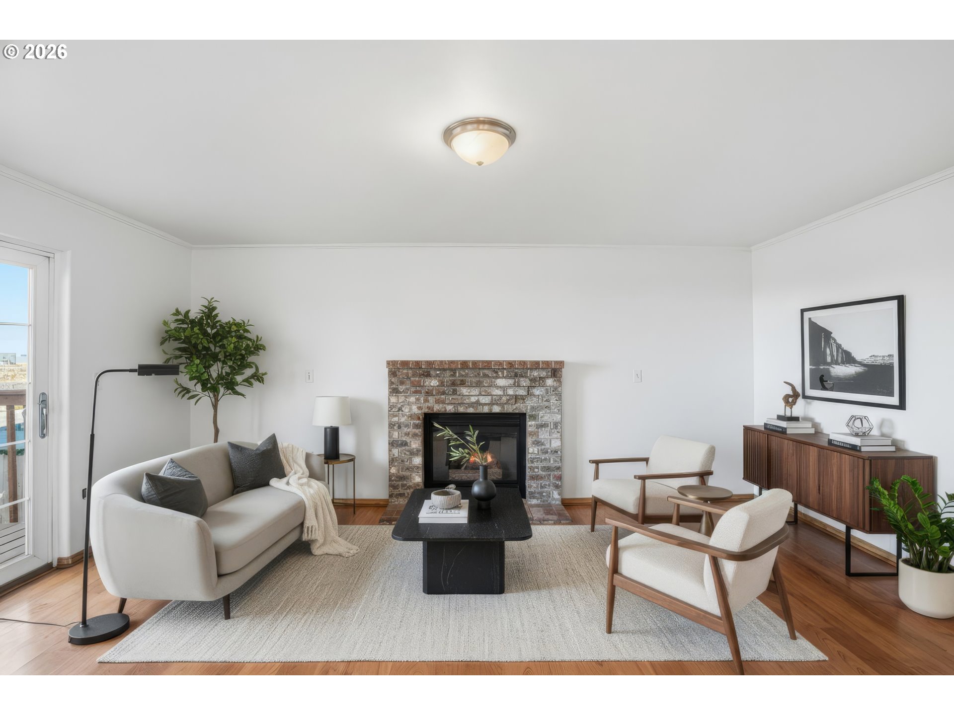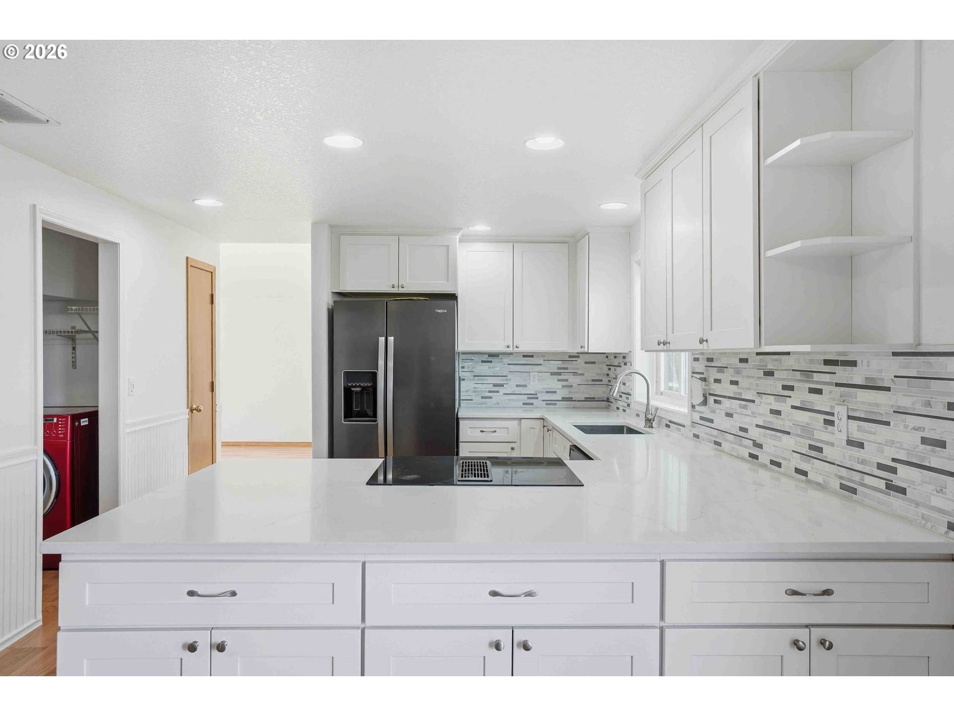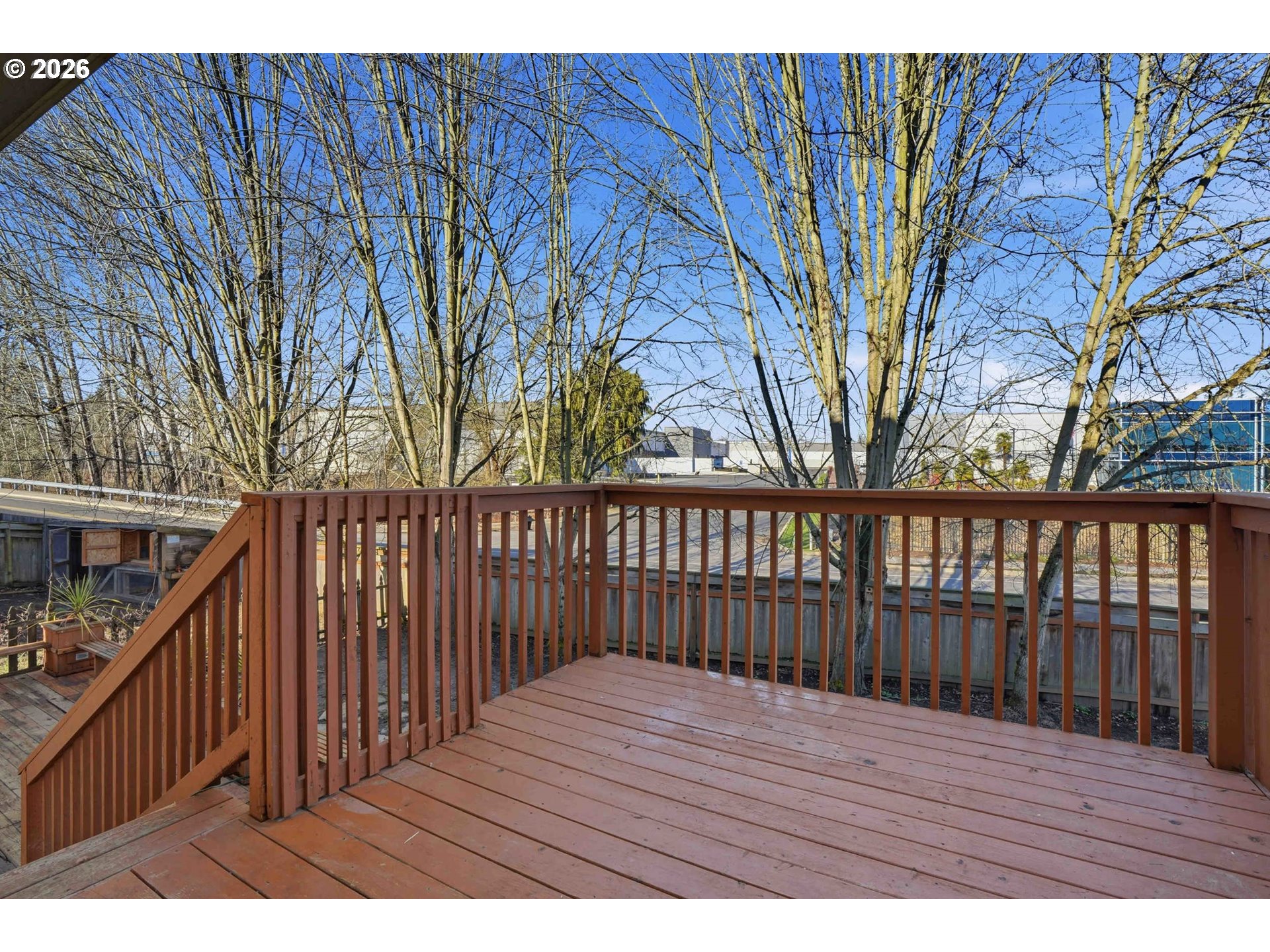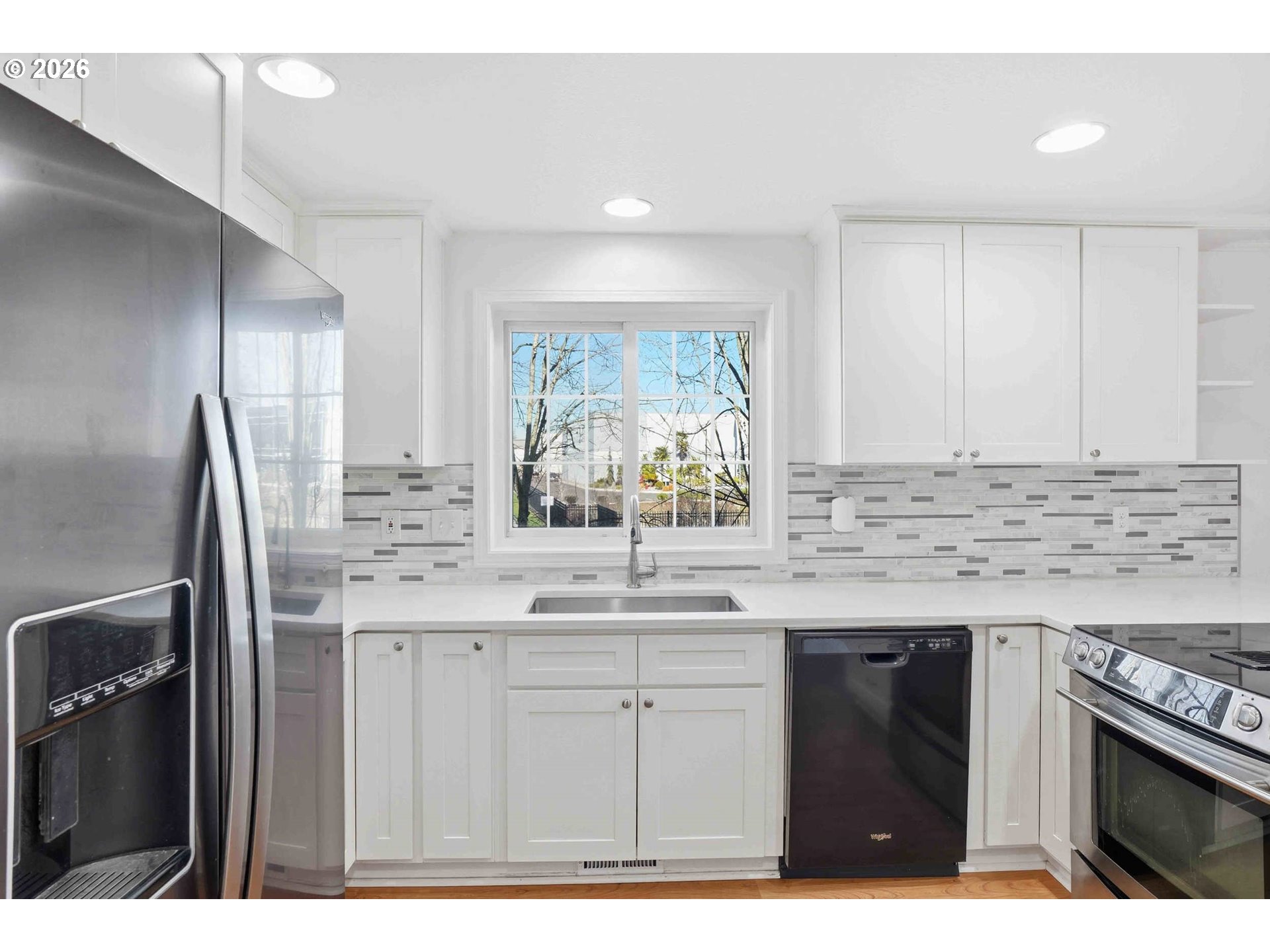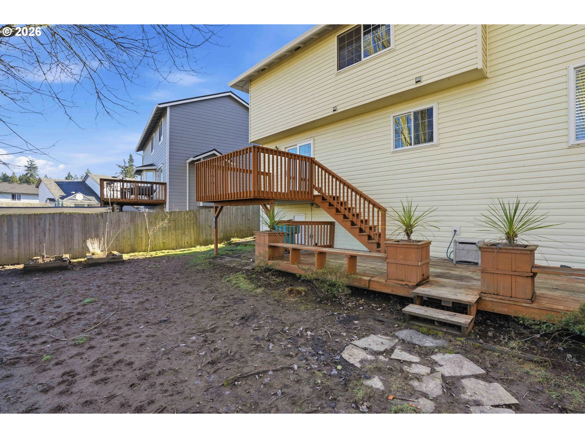 - Step into this inviting two-story home where a vaulted entry, hardwood flooring, and expansive windows immediately set the tone, flooding the spacious living area with natural light. The kitchen is a true highlight, featuring a cool, clean aesthetic with an undermount sink, striking quartz peninsula, and tile backsplash—perfect for both everyday living and entertaining. Appliances are included and the convection oven is a dream oven for any cook Just off the kitchen, a cozy sitting area with a wood-burning fireplace invites you to relax, while a sliding door leads directly to the back deck for easy indoor-outdoor living. A convenient laundry room and half bath complete the thoughtfully designed main level. Upstairs, you’ll find all three bedrooms. The generous primary suite offers a walk-in closet and a private ensuite bath with a double-sink vanity. Two additional bedrooms share a full bathroom, providing comfort and flexibility for guests, family, or a home office. Out back, the elevated deck overlooks a private, fenced yard with mature trees lining the perimeter for added seclusion in the warmer months. Garden beds, a garden shed, and a pond are ready for a new owner’s vision—an ideal canvas for creating your own backyard retreat. A two-car attached garage and well-planned layout make this home as functional as it is welcoming.