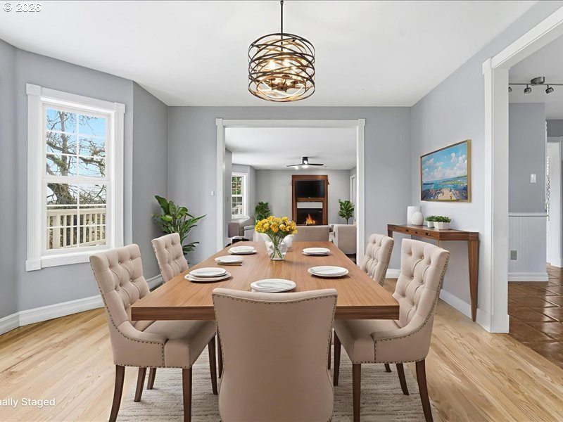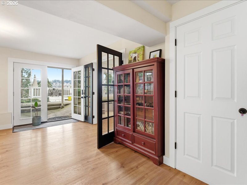 - Exquisite Willamette Falls view from stately Georgian-Colonial home. Perched in Rivercrest, off of the main road, this elegant, enchanting home offers a sweeping, unobstructed scape of the river, backdropped and framed by the forested hills of West Linn. The open floor plan is complemented by hardwood floors throughout with nearly every room capturing the stunning views. Three expansive decks and a cozy firepit provide exceptional entertaining spaces. A serene third floor book nook overlooking a lush, green slope offers a peaceful retreat. An extraordinary architectural feature: fourth bedroom bookcase reveals a hidden three-story passageway leading to the large unfinished attic which offers additional square footage and more opportunity. Lower level includes a private, income-generating garden apartment ideal for guests or rental. Walkable to award-winning downtown Oregon City via private path. A trail leading to the falls, McLoughlin promenade, shops and dining are all nearby. This house is a hidden treasure!