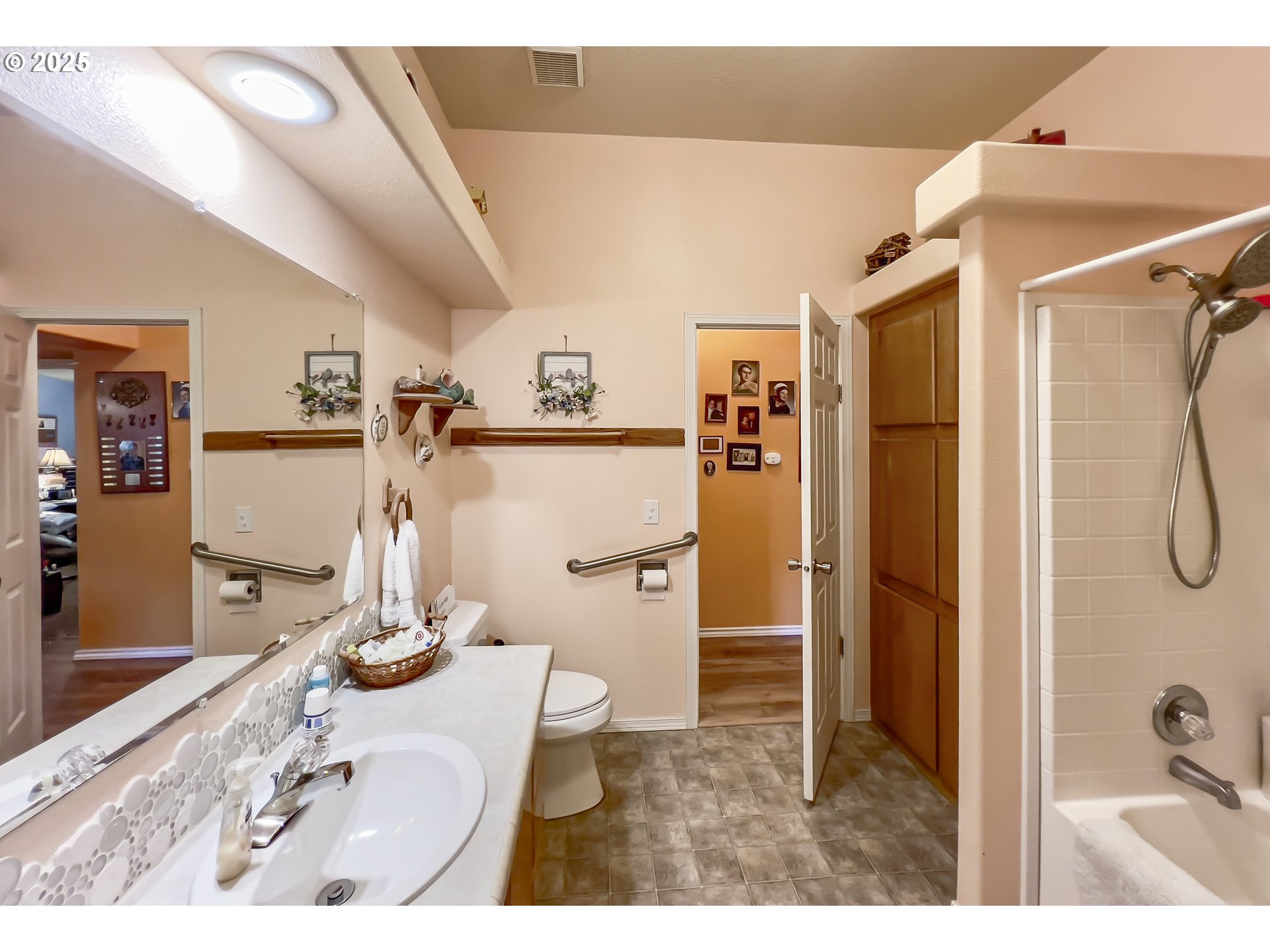 - Accessible Approach with Ramp, Accessible Doors, Accessible Full Bath, Accessible Hallway(s), Garage on Main, Minimal Steps, One Level, Walk-in Shower