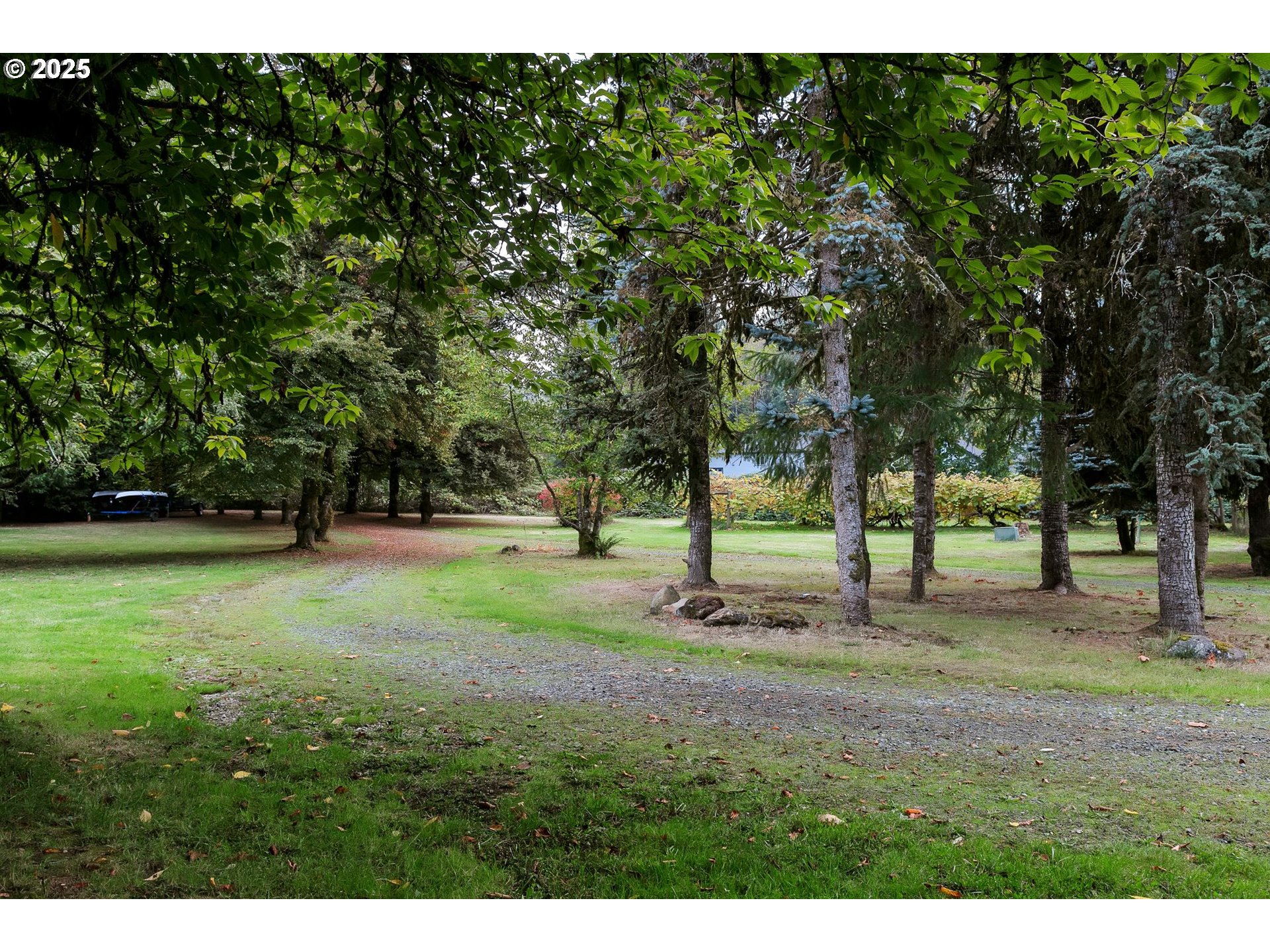 - Secluded 5 acre retreat at the top of the bluff of the Sandy River Valley. Generous three level home with daylight basement; lives large but feels cozy (so many fireplaces and wood burning stoves!). 4 bedrooms on the upper story, additional bedroom in daylight basement. Property accessed through an easement driveway, far from any road, incredibly private. Lot is half cleared and level and half forested on a slope that borders 30 acre Latourette Park. Large garden areas, with blueberries, grapes, apple, fig. 3 car attached garage and 24x36 slab with power and water ready for outbuilding. Inexpensive water district, heat pump and wood stoves, and septic keeps monthly expenses very low. Home is well maintained, ready for owner updates to make it shine.