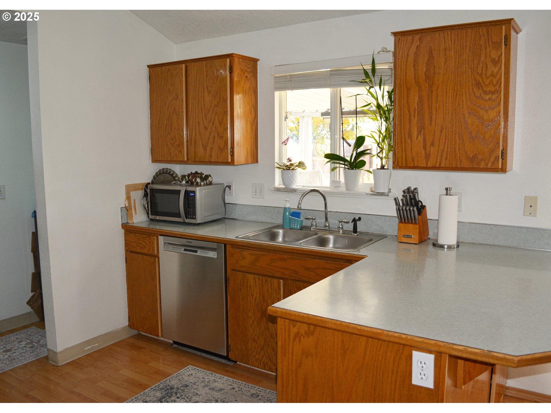 - Immaculately clean and move in ready condition. 3 bedrooms, 2 full bathrooms with two car attached garages. Inviting and big living room with wood burning fireplace, vaulted ceilings and half moon window that brings lots of natural light. Formal dining room with slider door to a covered patio. Lots of cabinets in the kitchen, gas stove, eating bar, disposal. Primary bedroom features full bathroom with shower, double closets and wall to wall carpets. Guest bathroom with skylights. Recently painted in and out, newer roof, AC. Large backyard with garden & pond. RV parking on the side of the house. Convenient location.