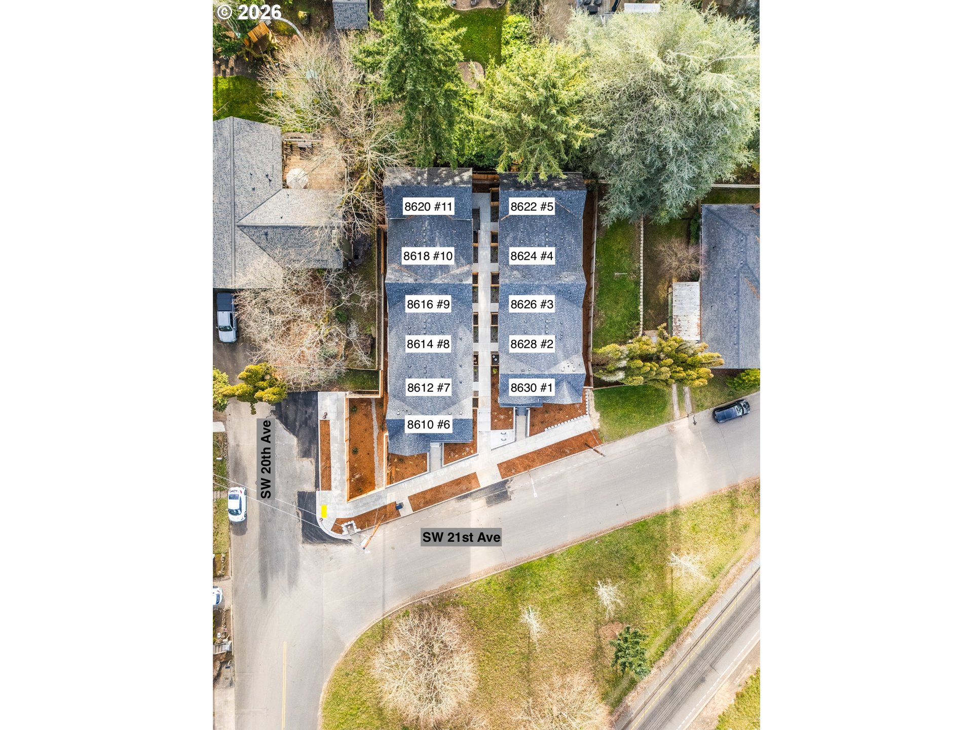 - New construction 11-unit condominium community located in Portland’s desirable Markham neighborhood, offering investors a rare opportunity to acquire a modern, low-maintenance asset with immediate lease-up potential. All units are currently vacant and move-in ready, allowing for rapid tenant placement and quick income stabilization. Each well-designed unit ranges from approximately 905 to 908 square feet and features 2 bedrooms and 2.1 bathrooms, including dual en-suite bedrooms that support strong tenant demand and premium rents. The main living level offers an open great room layout anchored by a spacious kitchen island with eat bar, creating an efficient and highly rentable floor plan. Outdoor living is thoughtfully differentiated by building, with five units in the west building offering private decks off the living room slider, while six units in the east building include patio spaces accessed directly from the living room. Select street-facing units add further upside, including Unit 8610 #6 with a fenced yard space and Unit 8630 #1 featuring additional windows that enhance natural light throughout the home. Energy-efficient mini-split systems provide heating and cooling throughout, helping control operating costs, and all units include in-unit laundry located between the bedrooms. Built by a respected Street of Dreams builder known for high quality finishes and efficient use of space, this community benefits from durable construction and reduced near-term capital expenditure. The Markham location offers proximity to Gabriel Park, Multnomah Village shopping and dining, Barbur Boulevard transit access, and convenient routes to downtown Portland and major employment centers, supporting consistent rental demand. An ideal acquisition for investors seeking a turnkey, lease-ready asset with strong rentability, low maintenance, and long-term hold appeal in Southwest Portland.