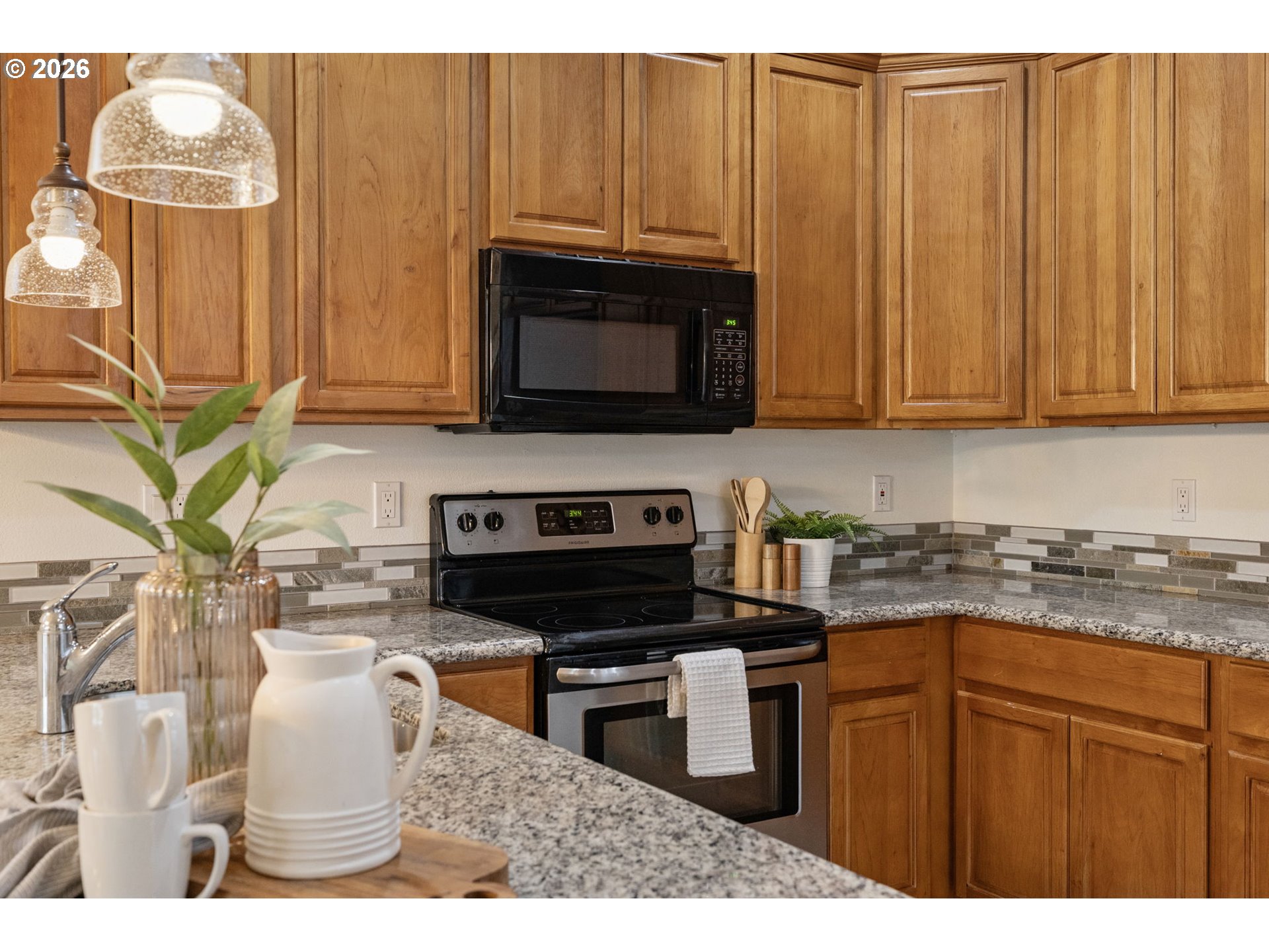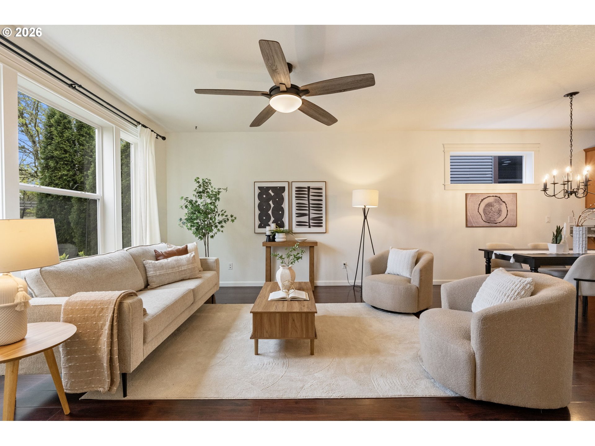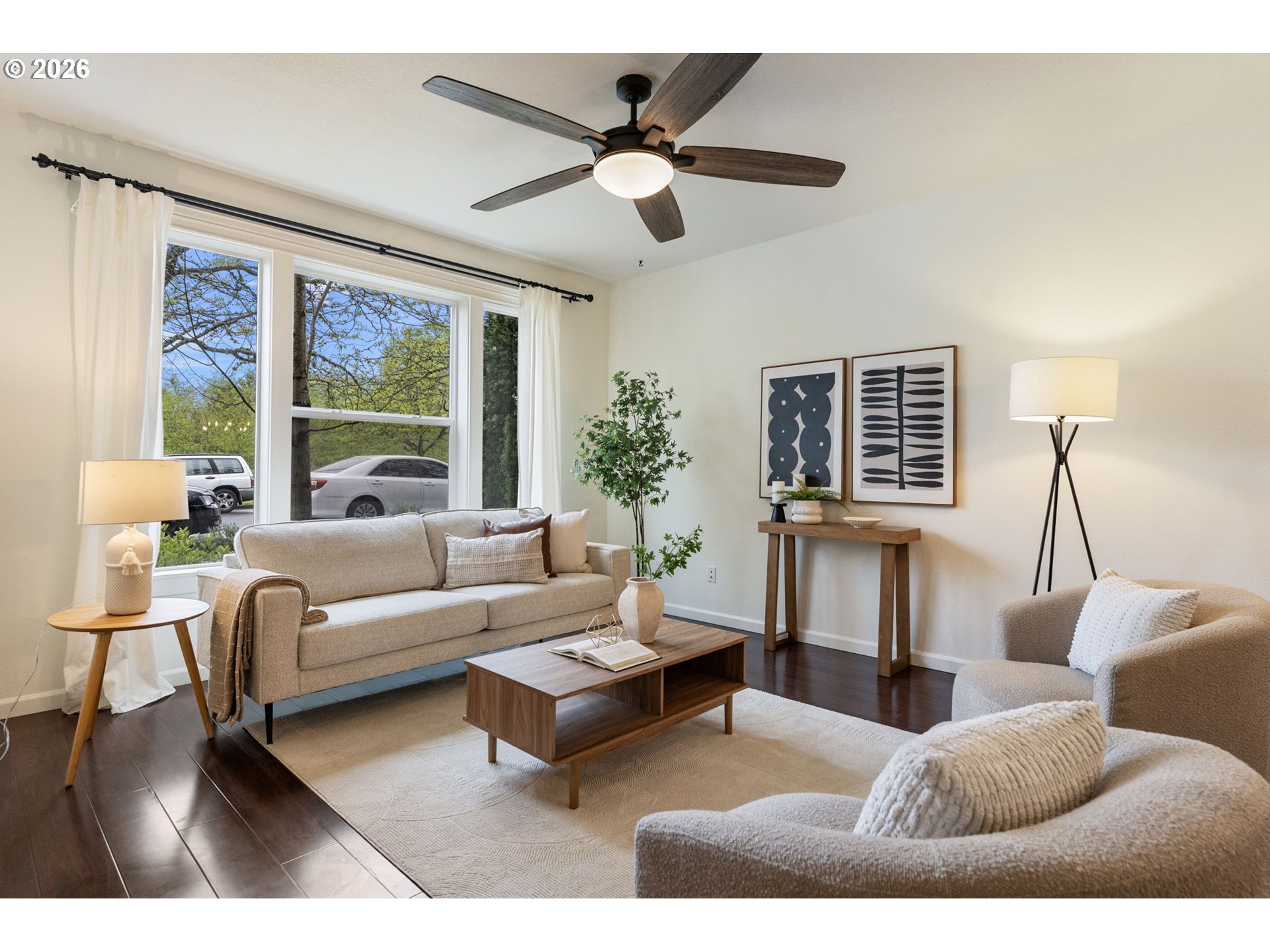 - Fall in love with this beautiful, bright townhome! Offering a comfortable, low-maintenance lifestyle on a quiet cul de sac. Step inside to find high ceilings, large windows, and an open floor plan. The modern kitchen offers ample counter & cabinet space, bar seating with all appliances included. Seamless flow from the kitchen to the dining and living room creates an entertainer’s dream with plenty of space to gather. Head upstairs to relax in the expansive primary suite with great natural light, vaulted ceilings, a walk-in closet, and an en-suite bathroom. Three additional generously sized bedrooms, a full bathroom, and laundry room are also located upstairs. Functional and well placed storage throughout, along with an oversized two car garage. Private backyard with a patio, water feature and turf—perfect for enjoying spring evenings. The home is truly move-in ready. Close to Powell Butte Nature Park and Leach Botanical Gardens.