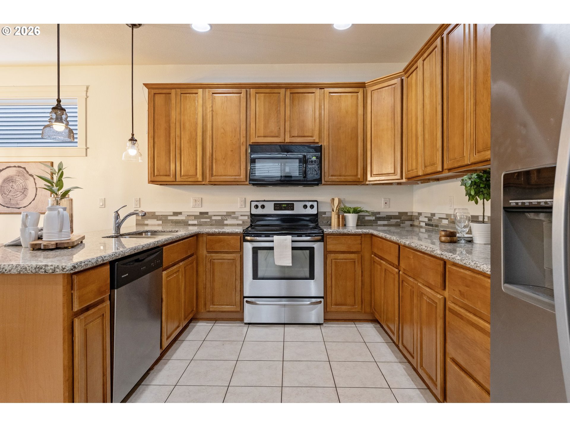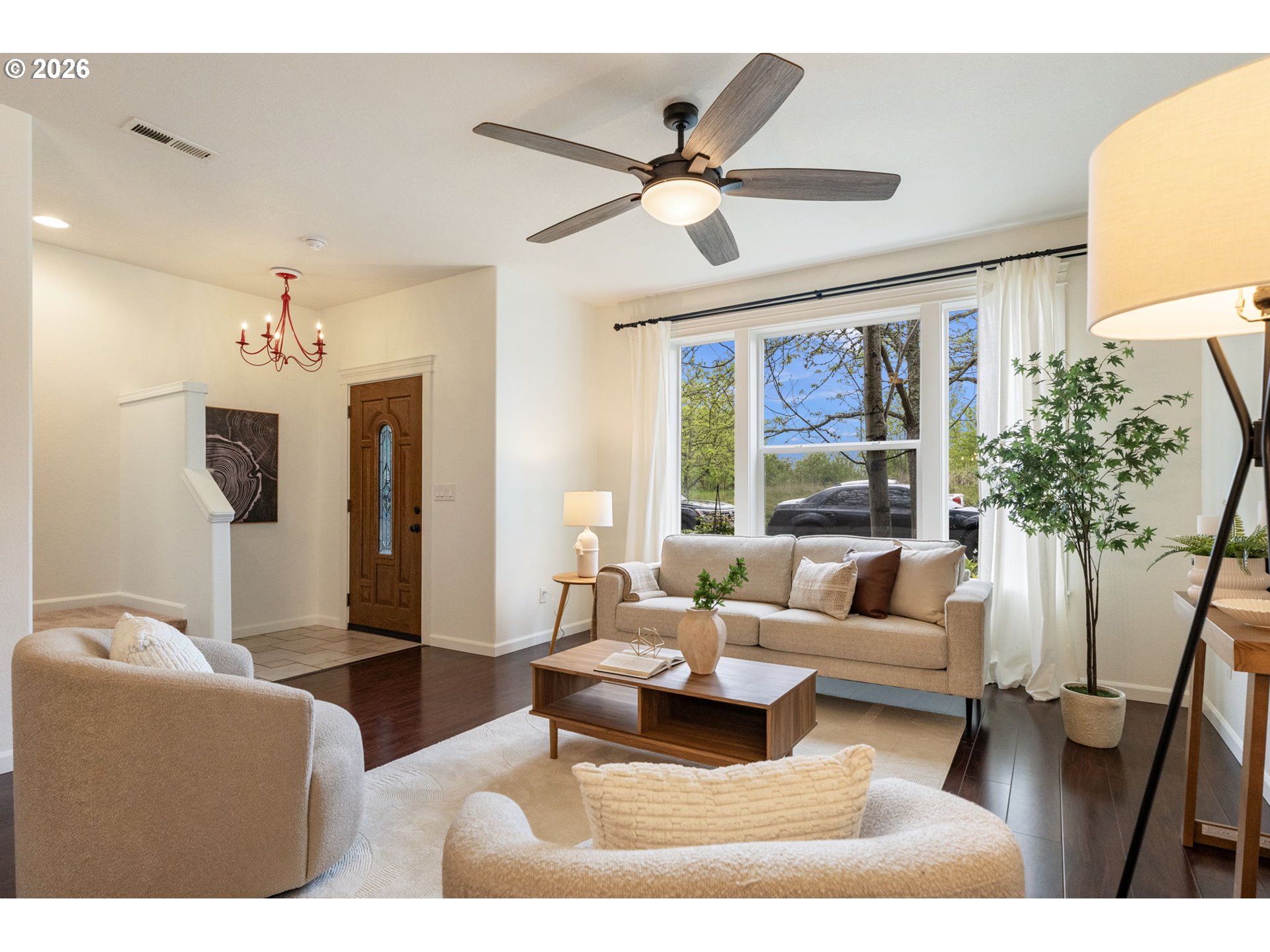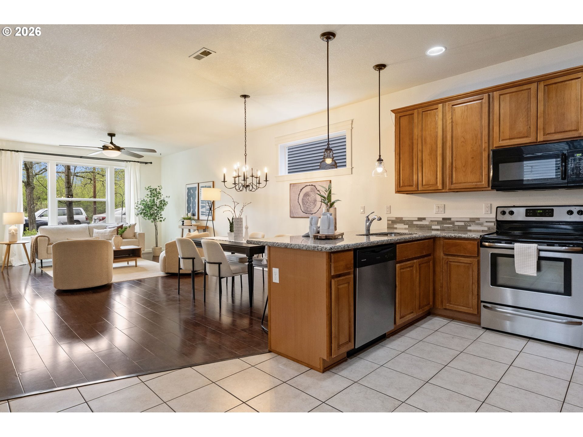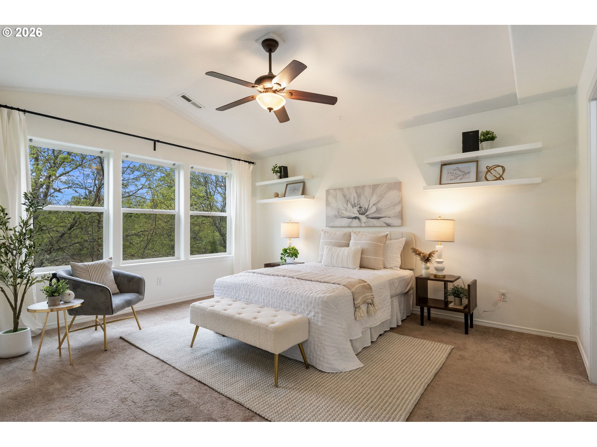 - Fall in love with this beautiful, bright townhome! Offering a comfortable, low-maintenance lifestyle on a quiet cul de sac. Step inside to find high ceilings, large windows, and an open floor plan. The modern kitchen offers ample counter & cabinet space, bar seating with all appliances included. Seamless flow from the kitchen to the dining and living room creates an entertainer’s dream with plenty of space to gather. Head upstairs to relax in the expansive primary suite with great natural light, vaulted ceilings, a walk-in closet, and an en-suite bathroom. Three additional generously sized bedrooms, a full bathroom, and laundry room are also located upstairs. Functional and well placed storage throughout, along with an oversized two car garage. Private backyard with a patio, water feature and turf—perfect for enjoying spring evenings. The home is truly move-in ready. Close to Powell Butte Nature Park and Leach Botanical Gardens.