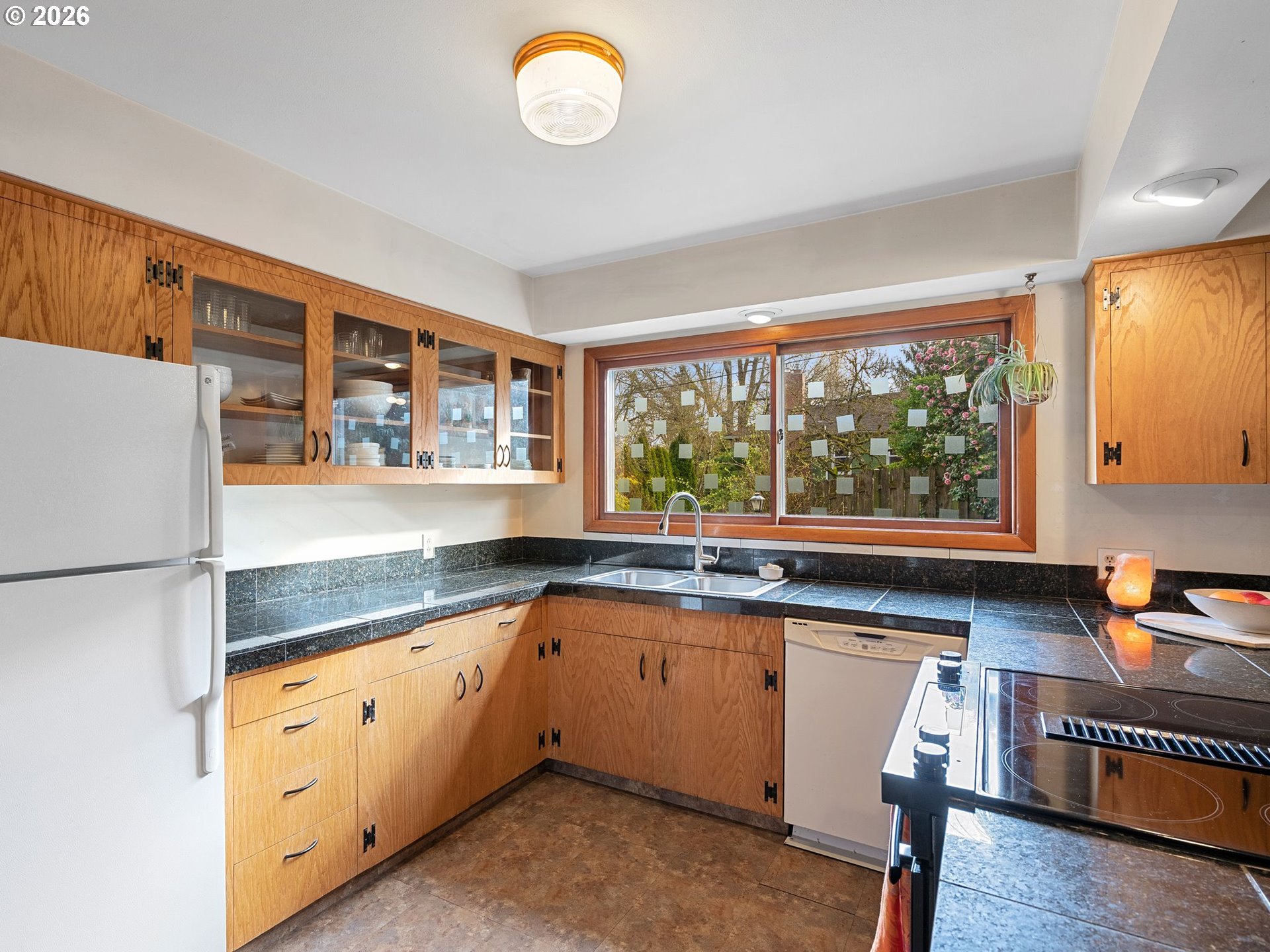 - Charming Cully Gem on a Quiet, Tree-Lined Street.Welcome home to this beautifully maintained Cully residence, where modern updates blend seamlessly with original vintage charm. Situated on an oversized lot, this spacious home features 4 bedrooms and 2 bathrooms, offering plenty of room to live, work, and entertain. Inside, you'll find original hardwood floors in the bedrooms, built-in bookcases, and newer tile flooring in the living, dining, and kitchen areas. Multiple fireplaces in the living and dining rooms create warm, inviting spaces perfect for gathering with friends and family. Downstairs, the expansive partially finished daylight basement includes a fourth bedroom and separate entrance, offering exciting possibilities for guests, extended living, or future customization.Enjoy peaceful mornings in the sun-filled sunroom, overlooking a private backyard retreat alive with birdsong. The outdoor space is truly a gardener’s paradise, featuring raised garden beds, mature landscaping, and a variety of established fruit plants and trees—including 7 blueberry bushes, a red currant, a fig tree, and an Italian plum.Located near neighborhood favorites, you’ll enjoy easy access to Sacajawea Park, Glenhaven Park, and Wellington Park, as well as popular local spots like The People’s Courts (pickleball), The Yard Food Carts, Ki’ikibáa, Guilder Coffee, Upright Brewing Beer Station, and Parkrose Hardware. Convenient access to transit and freeways makes getting around the city a breeze.This lovingly cared-for home offers charm, space, and endless potential in one of Portland’s most vibrant neighborhoods. [Home Energy Score = 4. HES Report at https://rpt.greenbuildingregistry.com/hes/OR10244287]