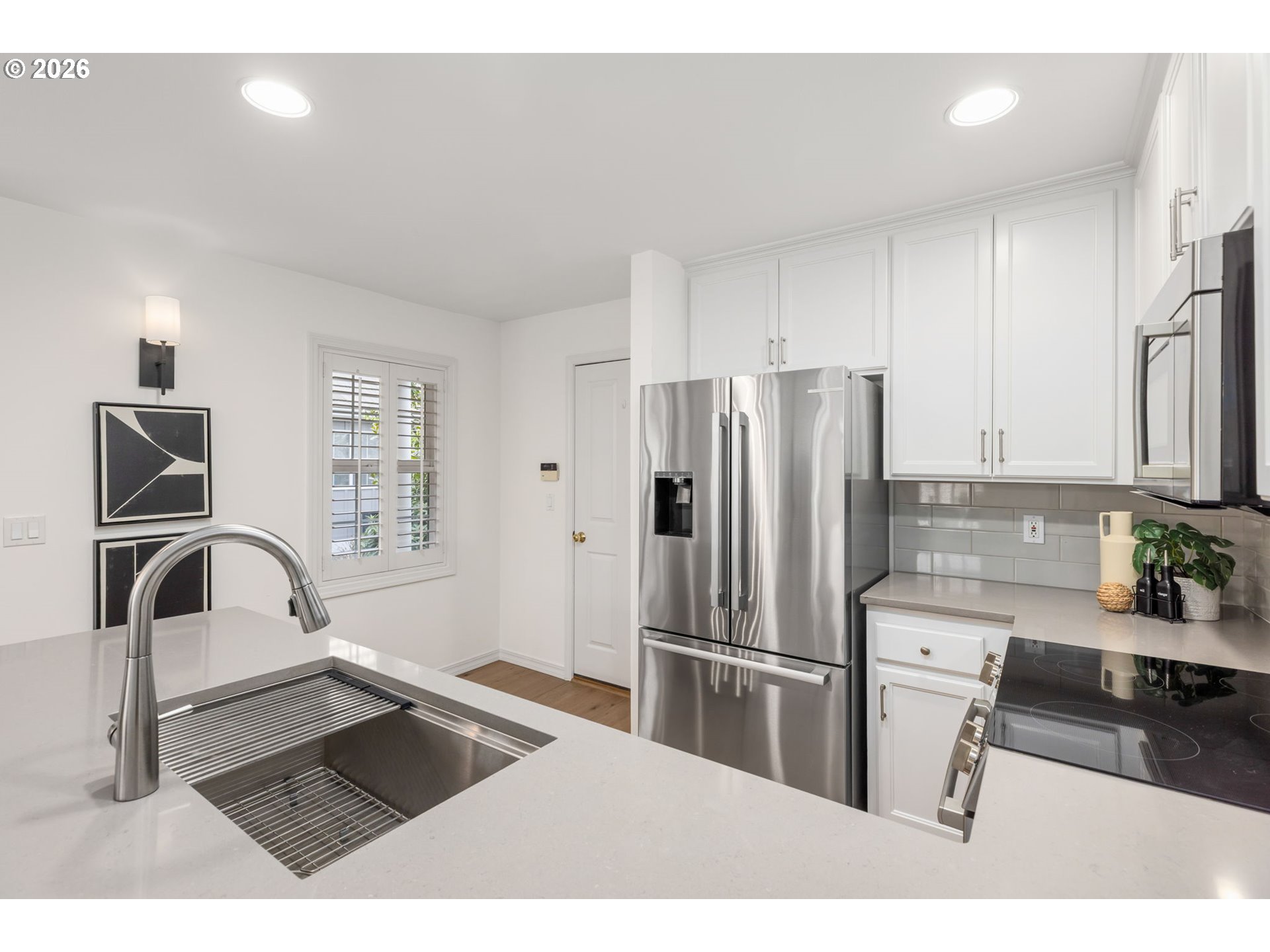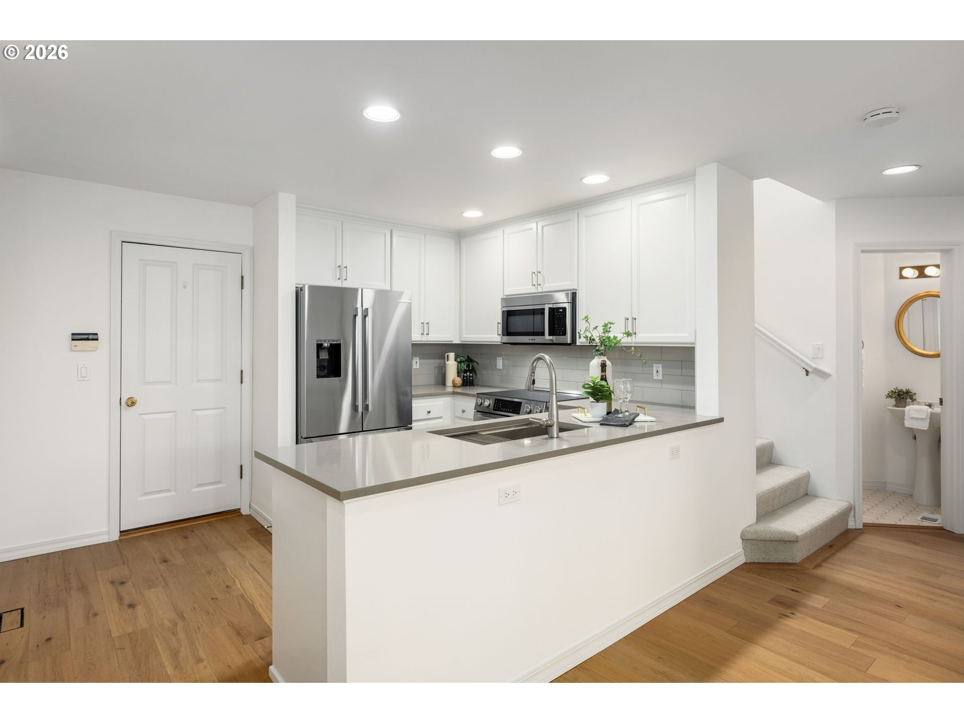 - This best-in-class, light-filled end-unit townhome is move-in ready with south-facing exposure, ideally situated on a private greenbelt with sweeping territorial views. The main-floor primary suite with walk-in closet is renovated with hardwood flooring and tile shower, including a built-in bench seat. Conveniently located in Claremont, this 55+ Golf Community, offers amenities including pickleball, tennis, pools, and clubhouse access, providing a rare lifestyle opportunity. The oversized great room has soaring vaulted ceilings, floor-to-ceiling wall of windows, hardwood floors, gas fireplace, and direct access to an enlarged deck, creating wide-open indoor-outdoor living space perfect for entertaining and bird watching. The current steward of the home invested approximately $100K improving the property, including hardwood floors, enlarged composite deck, full tile shower in the primary suite, HVAC, window replacement, and quartz countertops, tile backsplash, water fixtures and appliances in the kitchen. Main-floor laundry room has built-in cabinets. Flexible loft/bonus room and additional storage upstairs. This particular home is located near the east end of Claremont with exceptionally convenient, walk-friendly access to Bethany Village, including restaurants, grocery shopping, health care, fitness club, Walgreens and Starbucks.