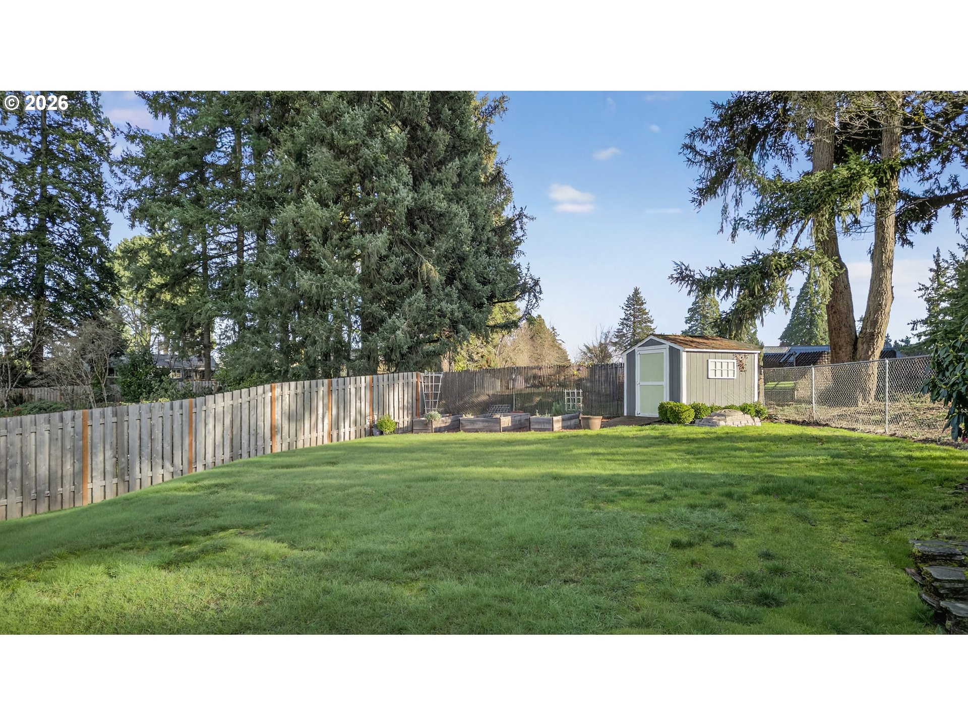 - Fenced, Garden, Patio, Porch, Raised Beds, Tool Shed, Yard