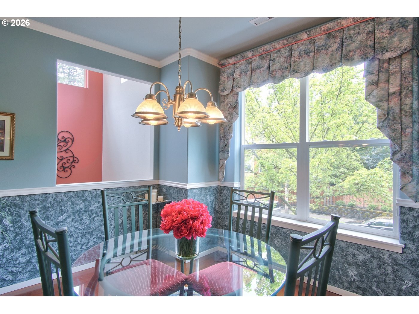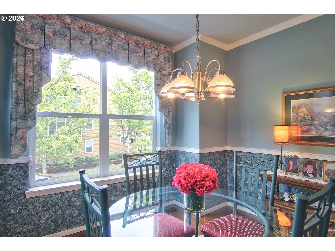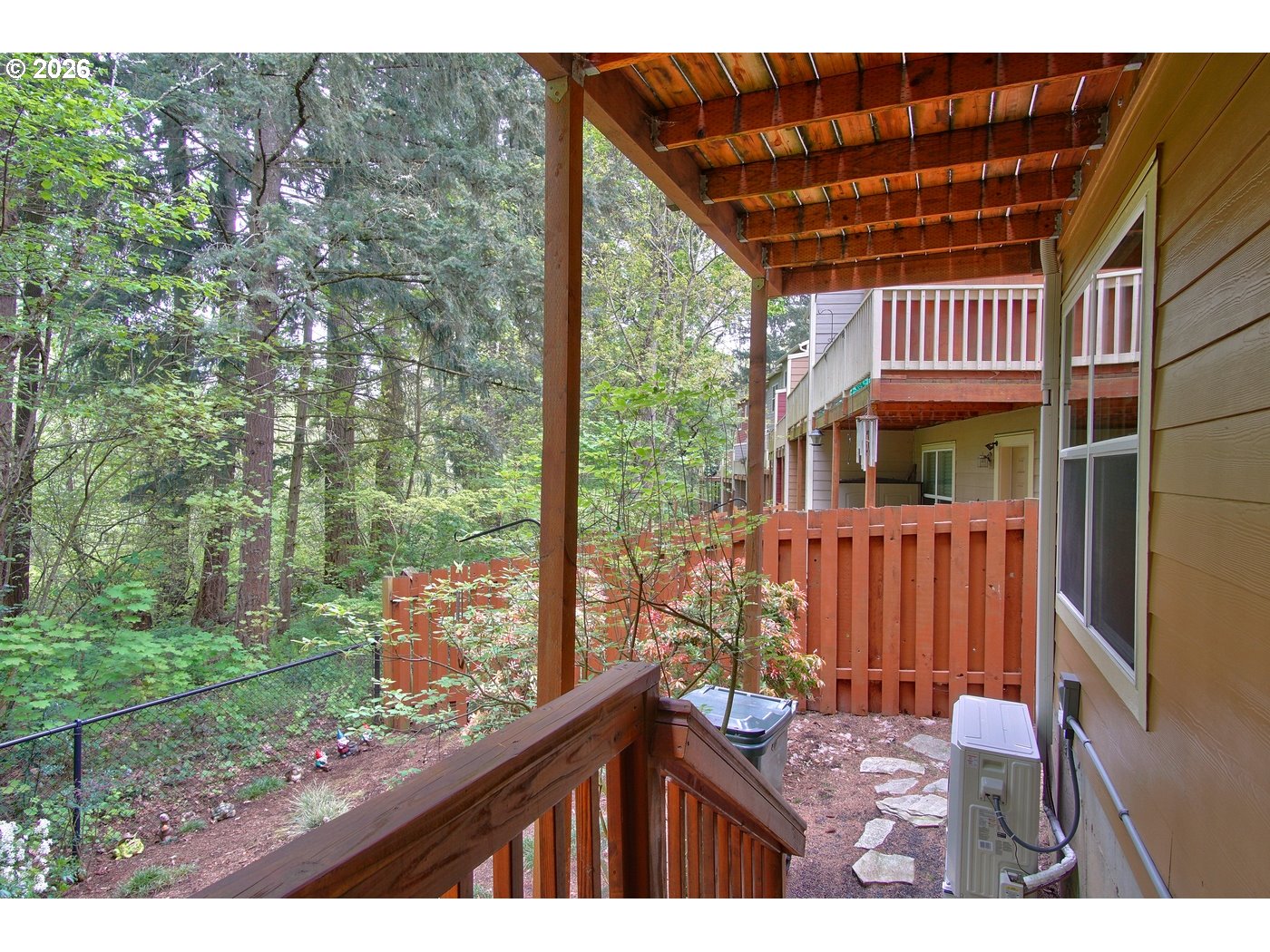 - Original owner showcases a near perfect condition end unit townhome offering extra windows for more natural light. Tile entry, 2 bed, possibly 3, and 3 full baths. Gleaming hardwood floors in the kitchen and dining. 2 view decks overlooking a wooded greenbelt for privacy and nature viewing. Backyard & deck maintenance is owner responsibility. HOA takes care of front landscaping. Enjoy new roof/gutters in 2025 & new HVAC/heat pump w/programmable theromstat & water heater in 2024, offering a home energy score of 6! Beautiful crown molding in the living, kitchen and dining areas, plus dining room has wainscoting. Gas fireplace, granite counters, eat bar w/pendant lighting, custom drapes t/o & silhouette blinds in the living room. Vaulted primary bedroom w/large walk-in closet. Lower level office could be converted to a bedroom which has a full bath. Generous storage in the garage. Great value & a reasonable HOA. [Home Energy Score = 6. HES Report at https://rpt.greenbuildingregistry.com/hes/OR10201293]