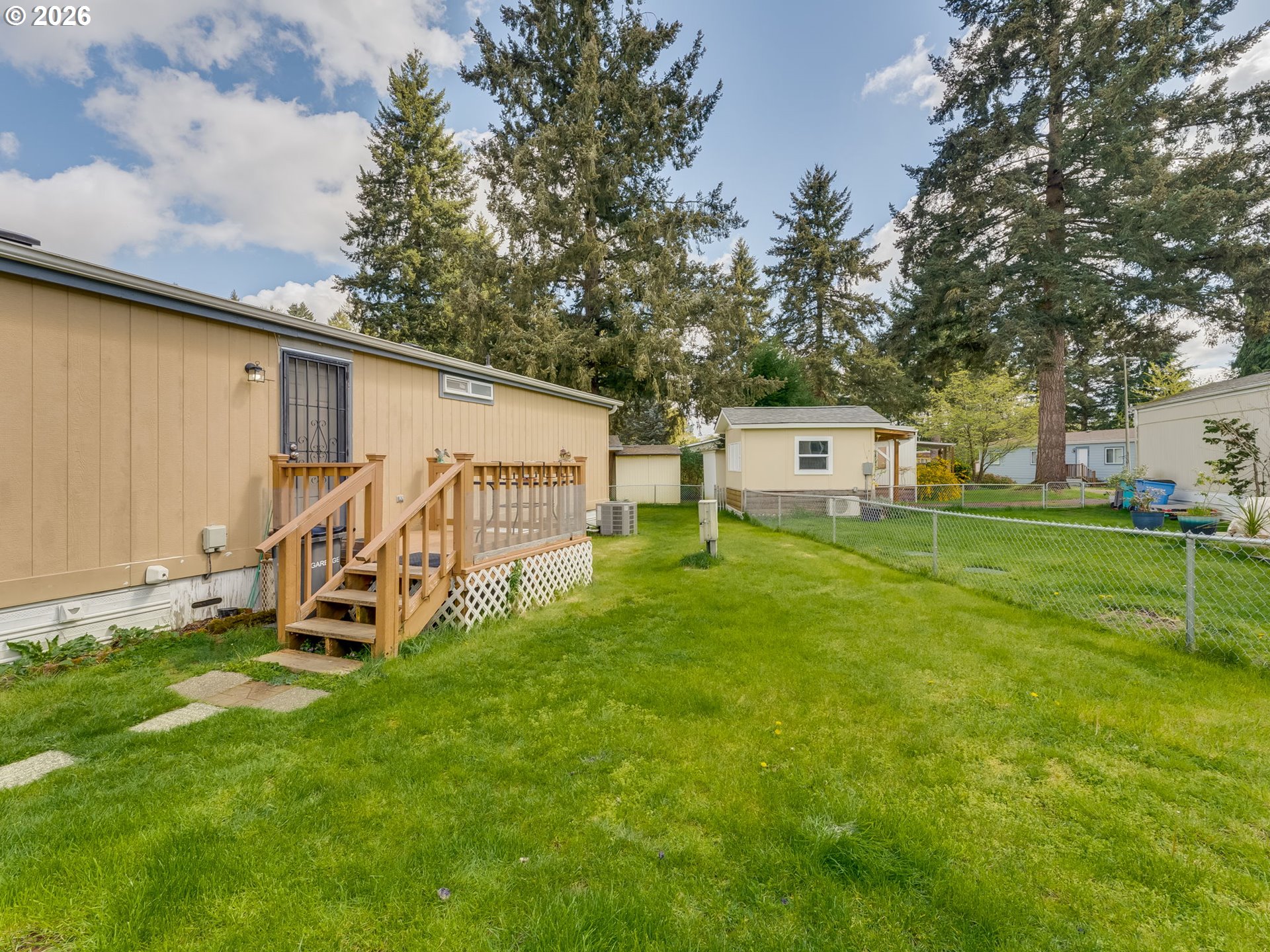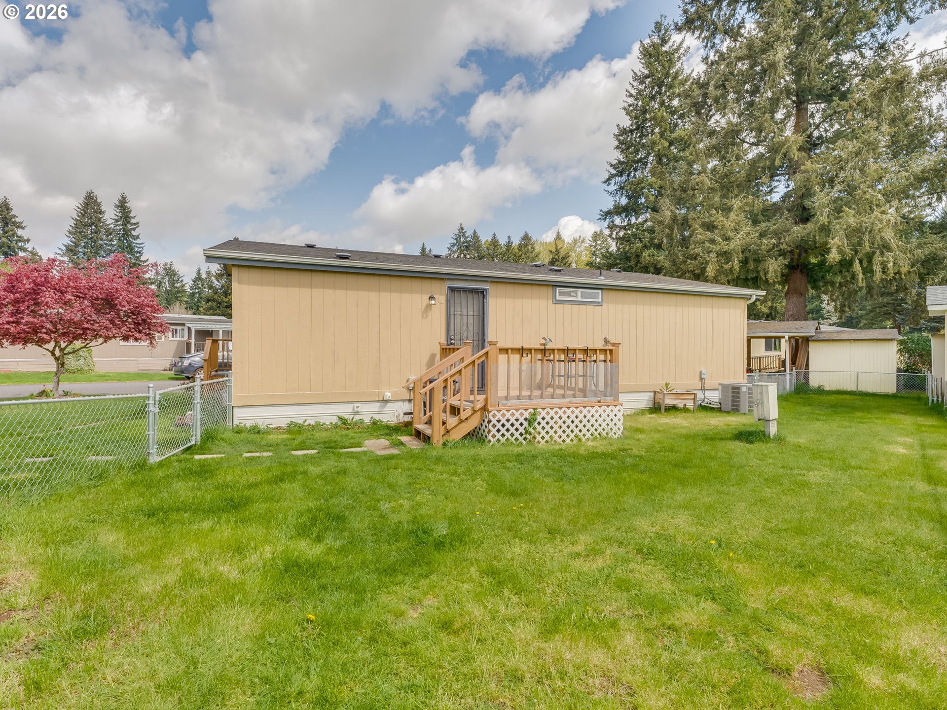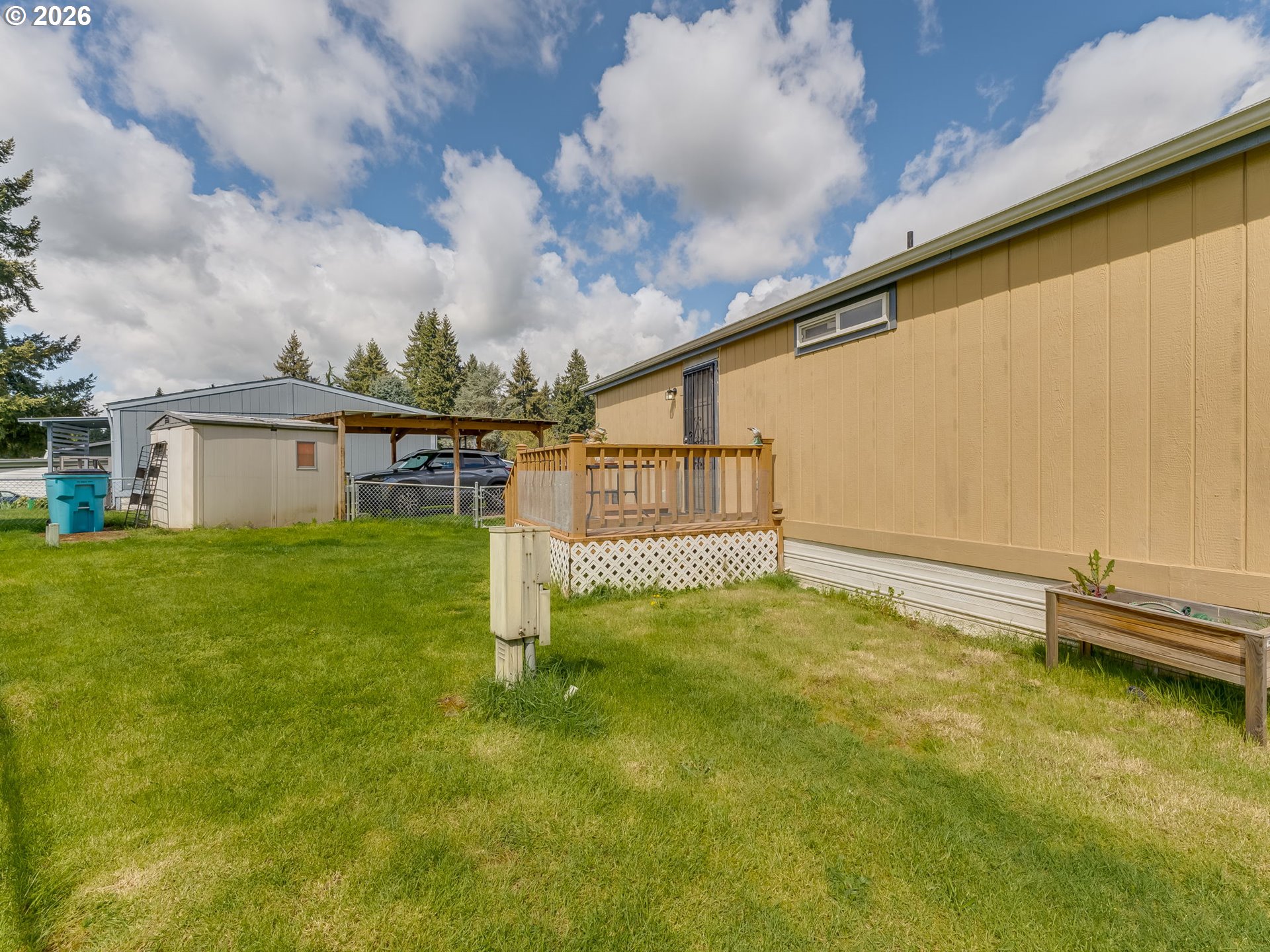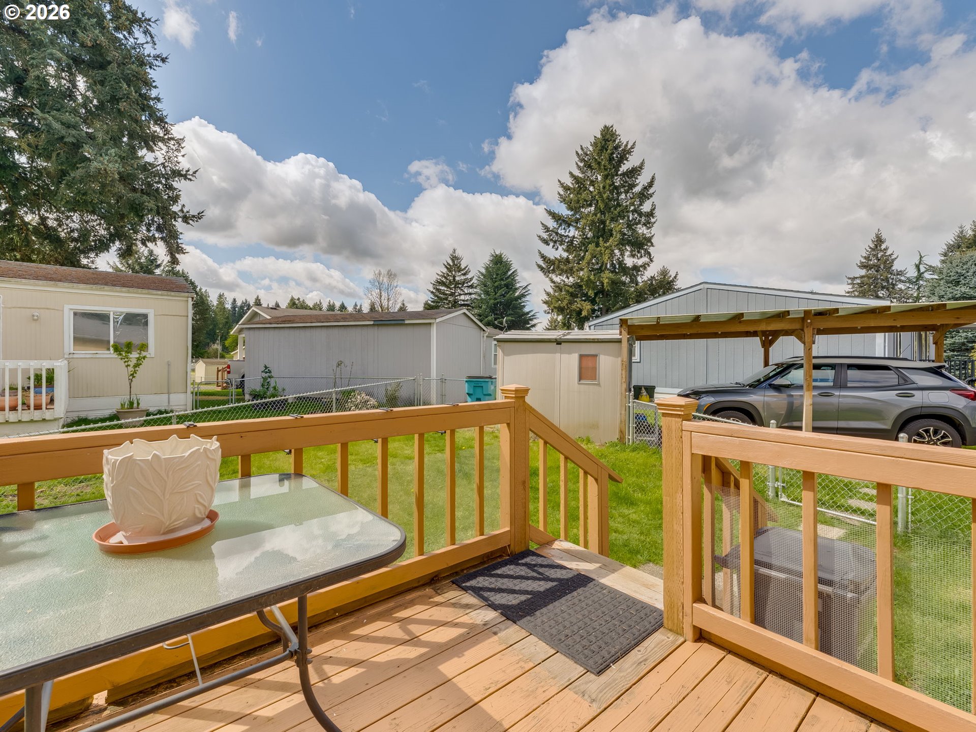 - Welcome to your new home in a great location, perfectly situated close to groceries, shopping, and medical facilities for your convenience. Vaulted ceilings and beautiful laminate flooring create a spacious and inviting atmosphere. Enjoy an open concept kitchen and dining room, ideal for entertaining. Step outside to a sweet family park nestled among the trees, featuring natural landscaping that provides a serene escape right in your community. Sip your coffee on the back deck, listening to the birds. Newer furnace and heat pump. Includes a covered carport and a handy tool shed for all your storage needs. Residents also benefit from access to a community recreation room and park, perfect for socializing and outdoor activities. This home offers a wonderful blend of comfort, convenience, and community, a perfect place to create lasting memories.
