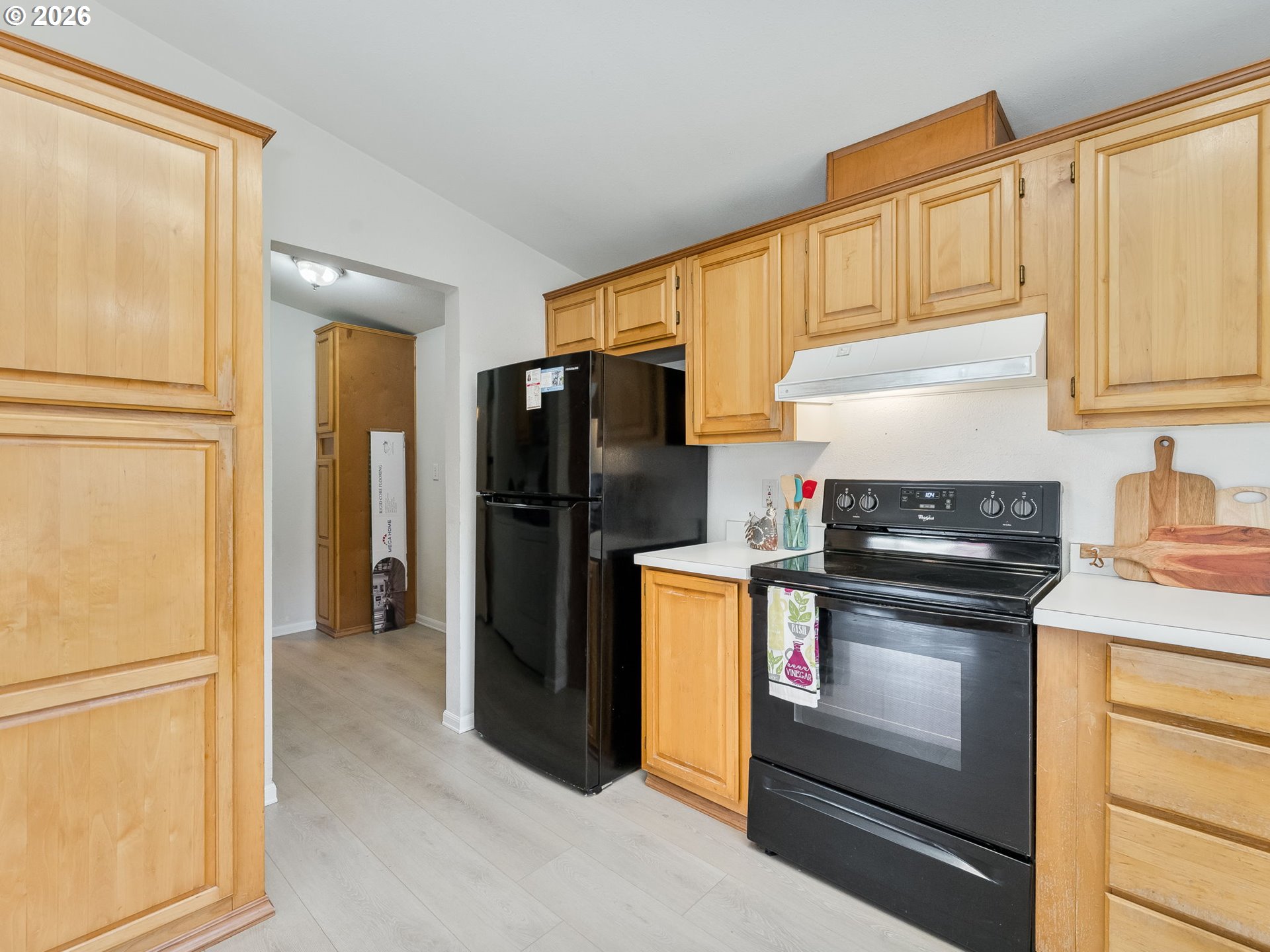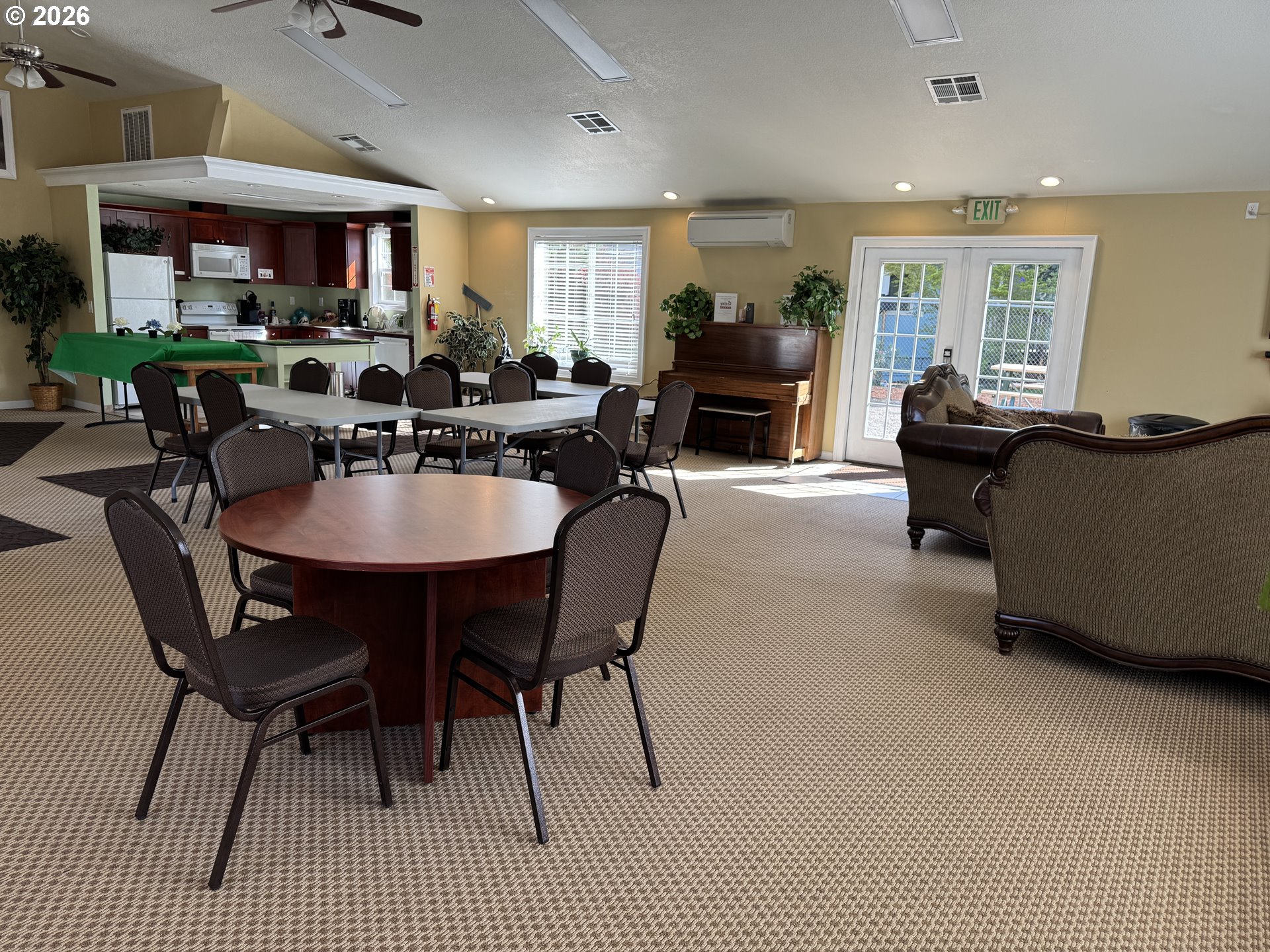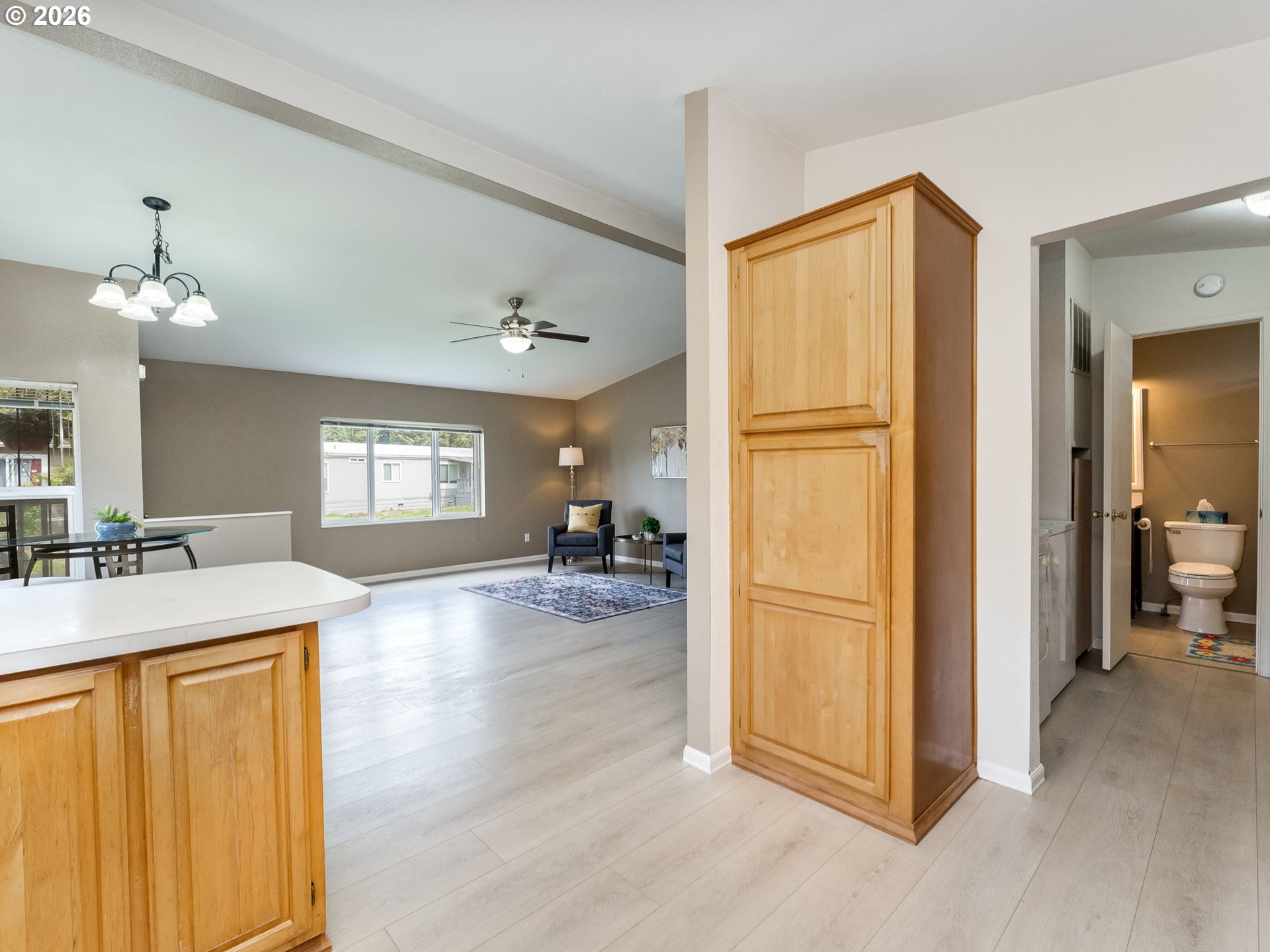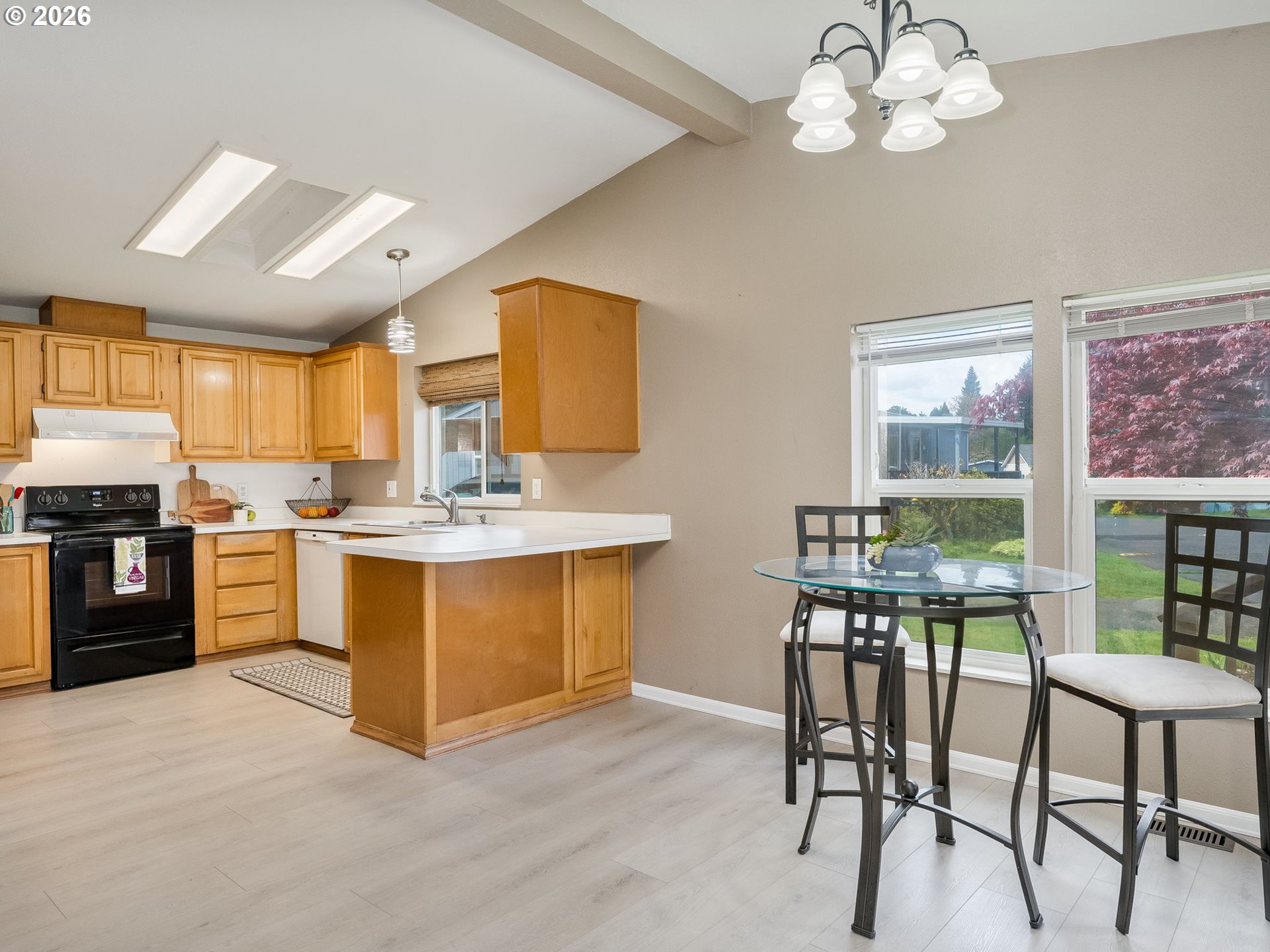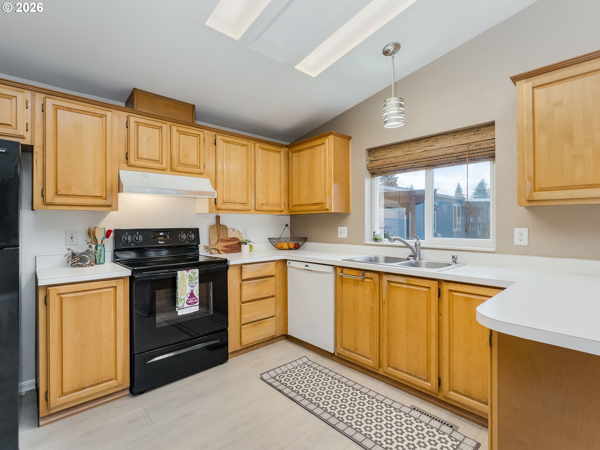 - Welcome to your new home in a great location, perfectly situated close to groceries, shopping, and medical facilities for your convenience. Vaulted ceilings and beautiful laminate flooring create a spacious and inviting atmosphere. Enjoy an open concept kitchen and dining room, ideal for entertaining. Step outside to a sweet family park nestled among the trees, featuring natural landscaping that provides a serene escape right in your community. Sip your coffee on the back deck, listening to the birds. Newer furnace and heat pump. Includes a covered carport and a handy tool shed for all your storage needs. Residents also benefit from access to a community recreation room and park, perfect for socializing and outdoor activities. This home offers a wonderful blend of comfort, convenience, and community, a perfect place to create lasting memories.