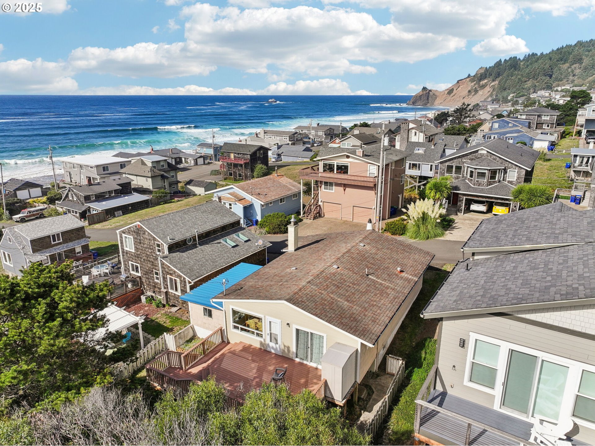 - Just steps from the beach in the coveted Roads End neighborhood, this charming 3 bedroom, 2.5 bath coastal home offers the perfect Oregon Coast escape. Bright, open living spaces are highlighted by ocean view windows, custom concrete countertops, bamboo flooring and natural wood and stone accents. Watch kite surfers in the summer or waves crashing over Rock Island in the winter, relax by the stone gas fireplace, or unwind on the large composite deck with the sights and sounds of the ocean.The main level features stylish updates throughout, including refreshed bathrooms and low maintenance finishes. Downstairs offers a versatile game room, laundry area, and ample storage. This space is great for guests or vacation gear. With easy access to Lincoln City’s shopping, dining, and local attractions, the location is as convenient as it is beautiful. (Third bedroom in basement is non-conforming).Sellers are offering the home fully furnished (excluding tools and kite surfing equipment in basement), making this a turnkey beach retreat ready for your coastal memories